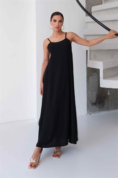 Aerobin Kumaş Ayarlanabilir Askılı Uzun Siyah Elbise