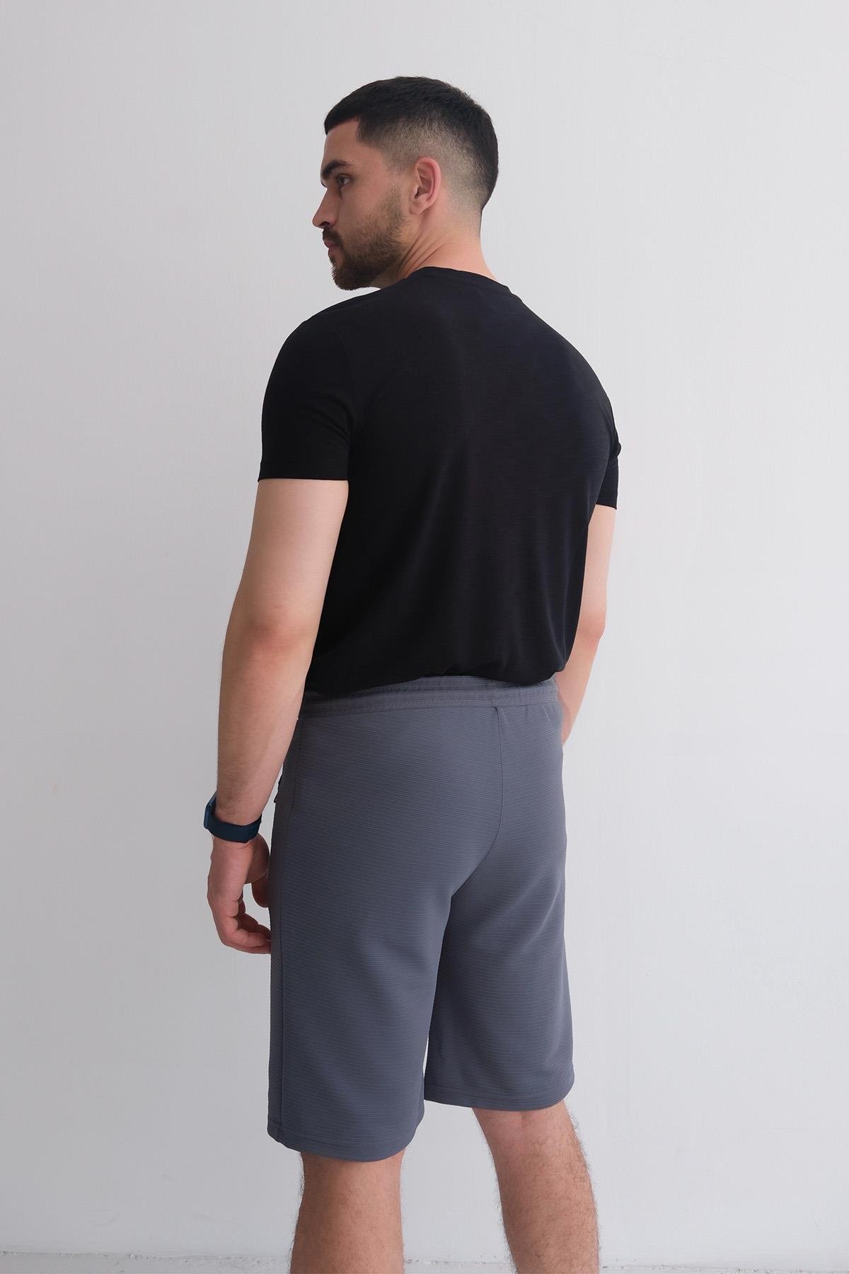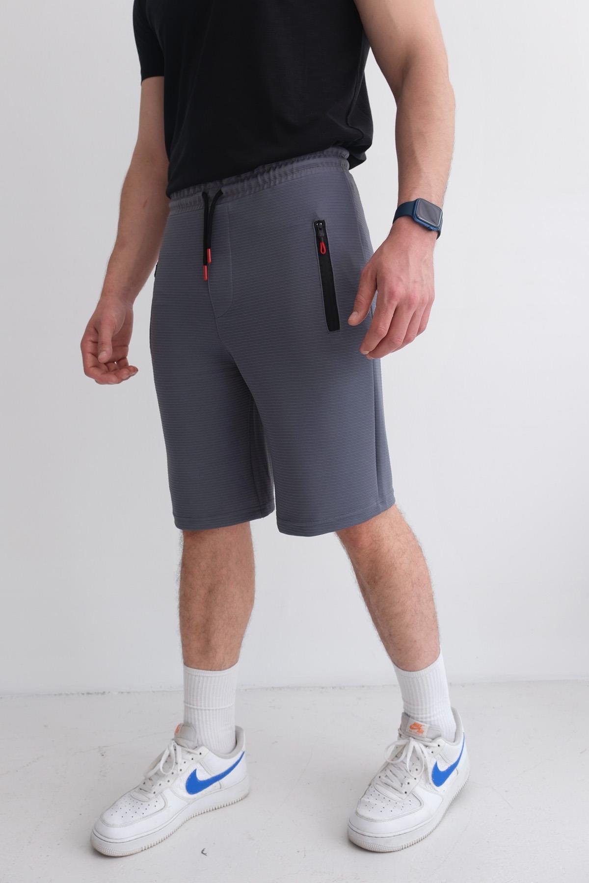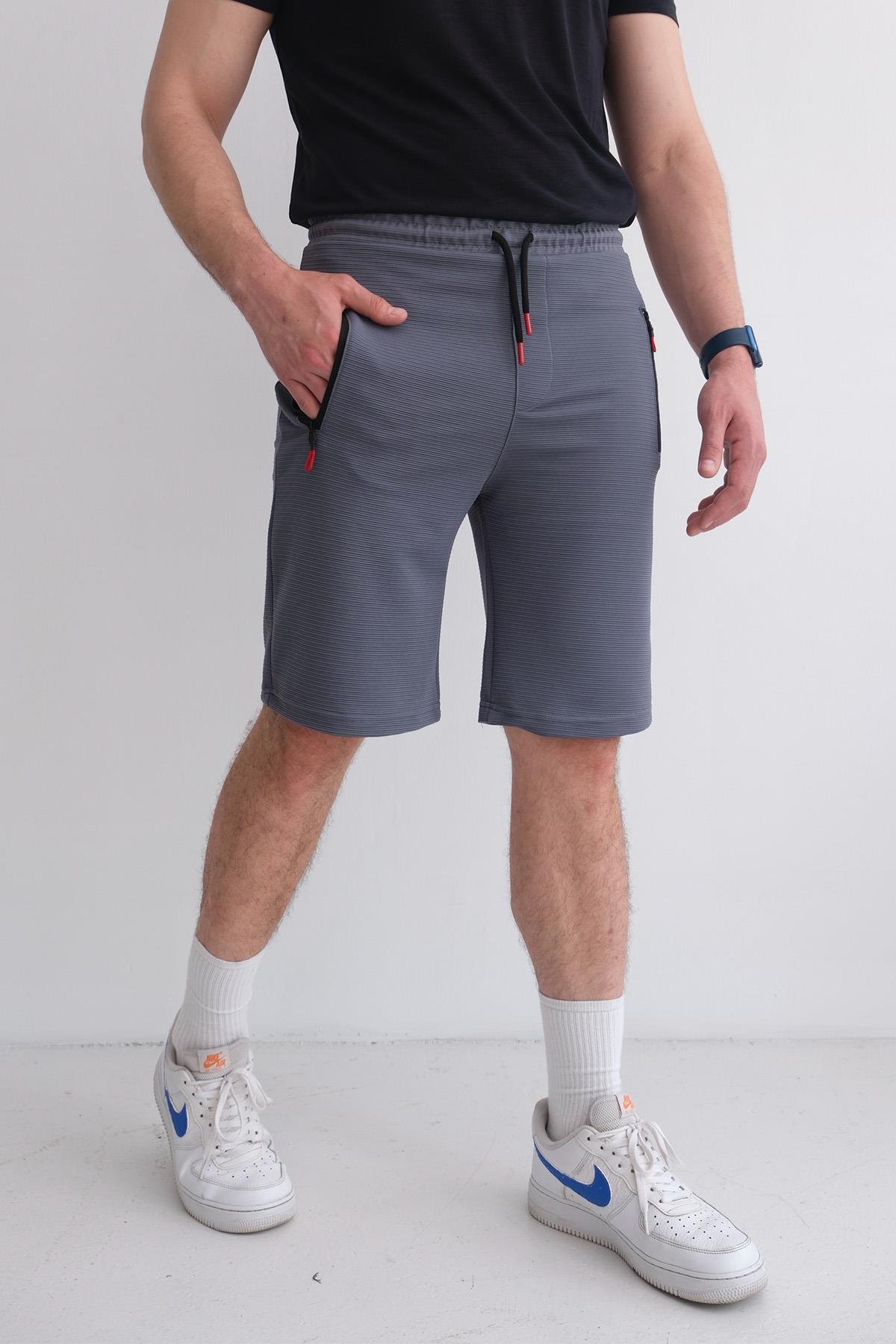 Men’s Relax Fit Ottoman Shorts with Elastic Waist and Zip Pockets – Charcoal (Y-25-7749)