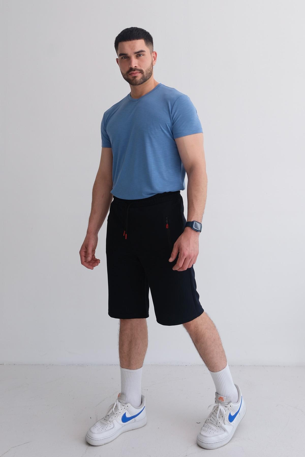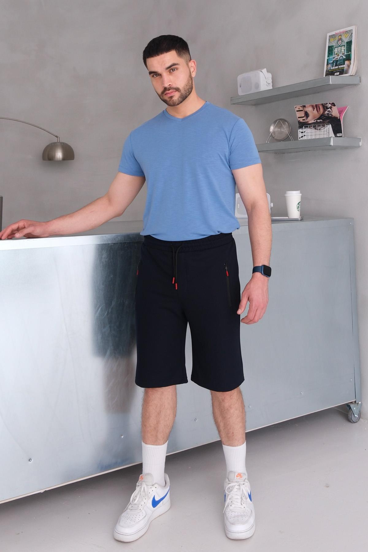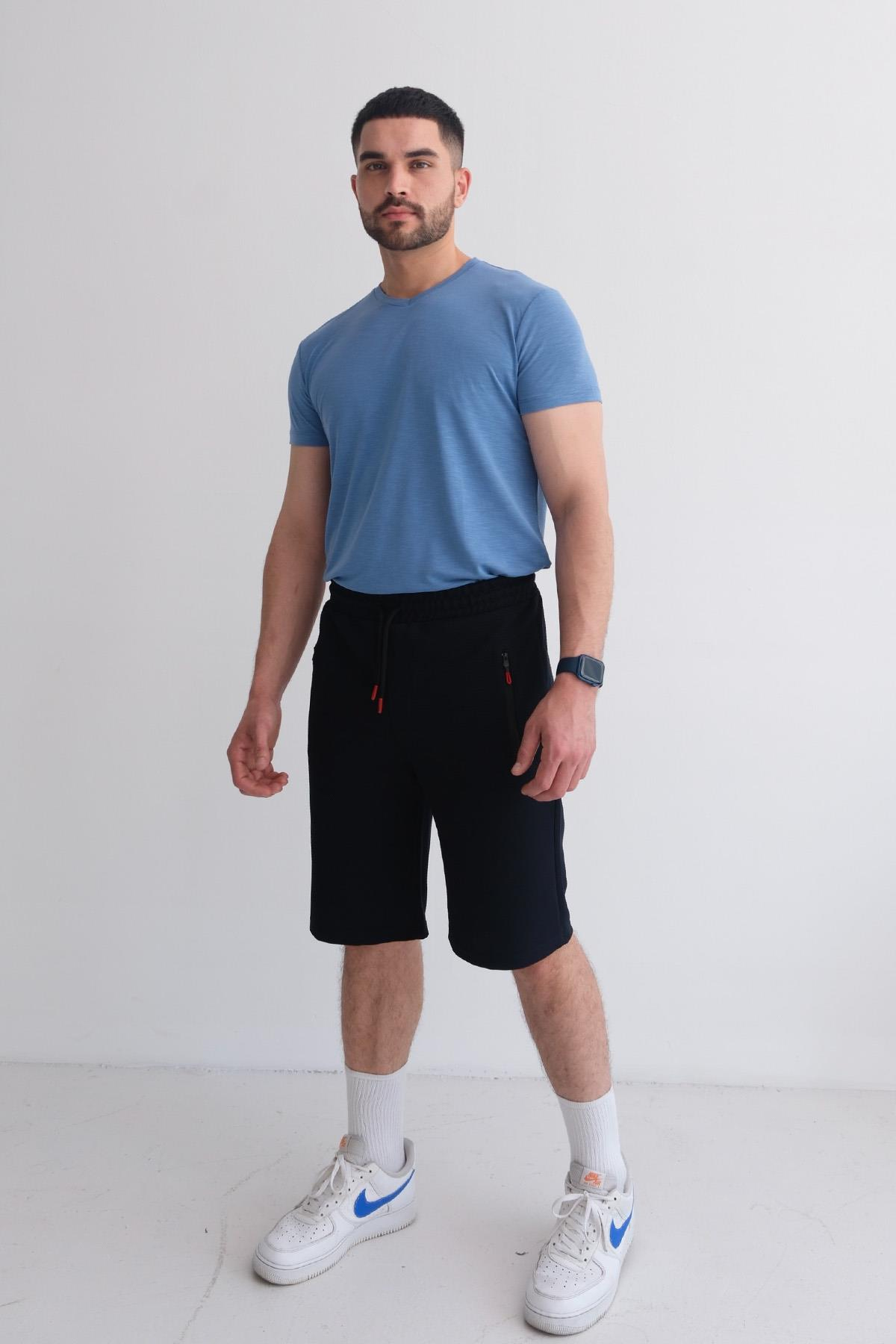 Men’s Relax Fit Ottoman Shorts with Elastic Waist and Zip Pockets – Navy (Y-25-7749)