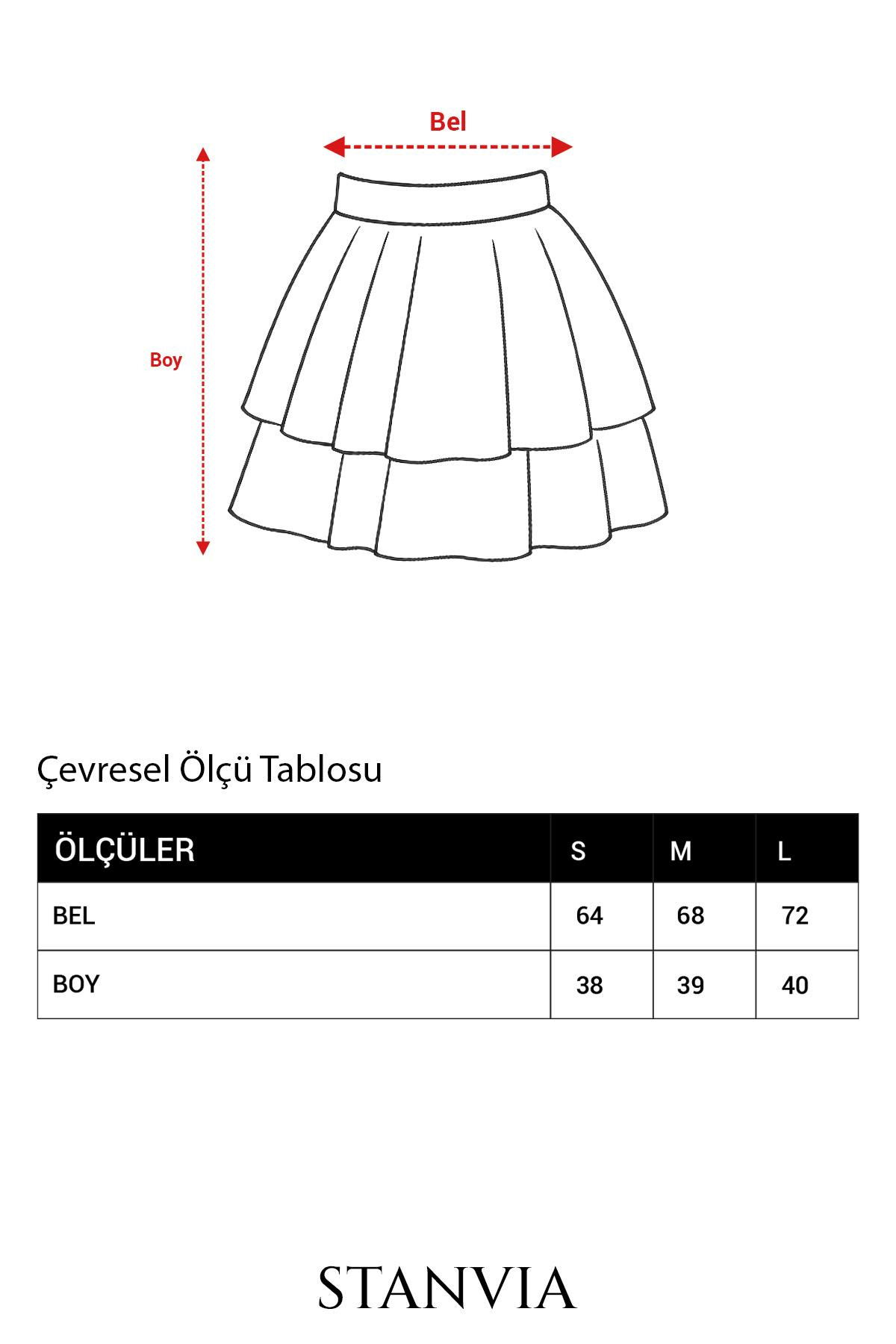 Şıklığı ve feminen tarzı bir arada sunan boyundan bağlamalı crop kat kat fırfırlı volanlı etek bluz takım, modern kombinlerin vazgeçilmez parçalarından biridir. Zarif degaje yaka detayıyla öne çıkan crop bluz, feminen bir dokunuş sağlarken, hareketli tasarımıyla dikkat çeken kat kat fırfırlı etek, özgür bir stil oluşturur.