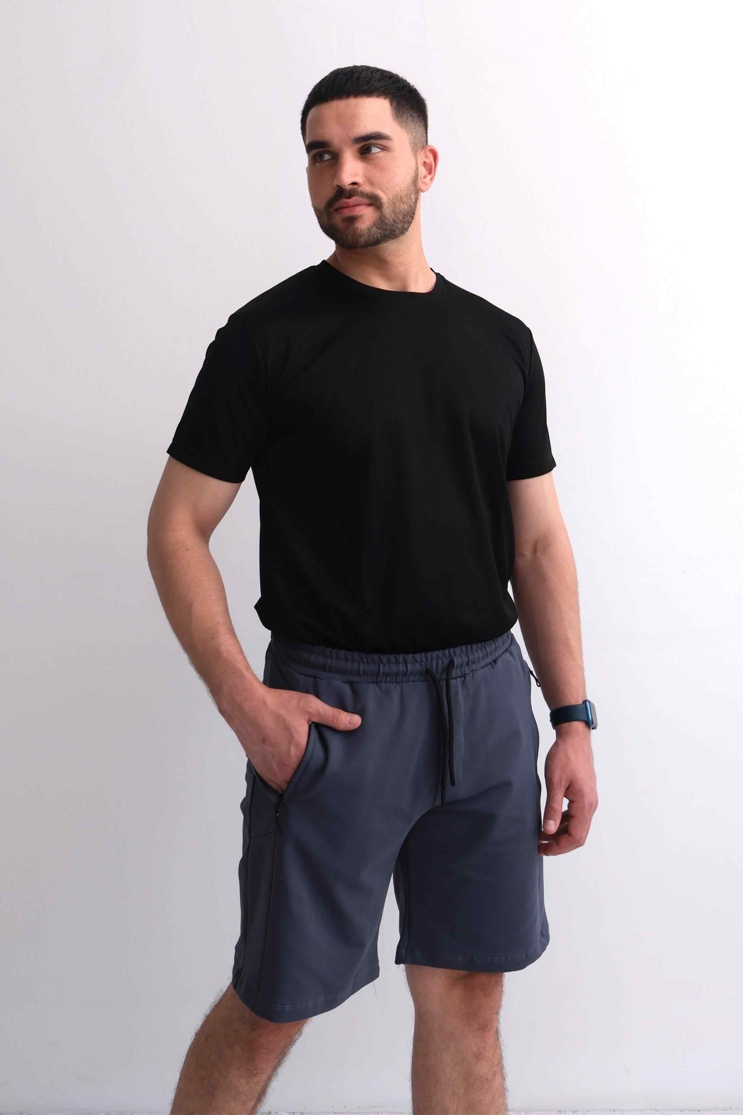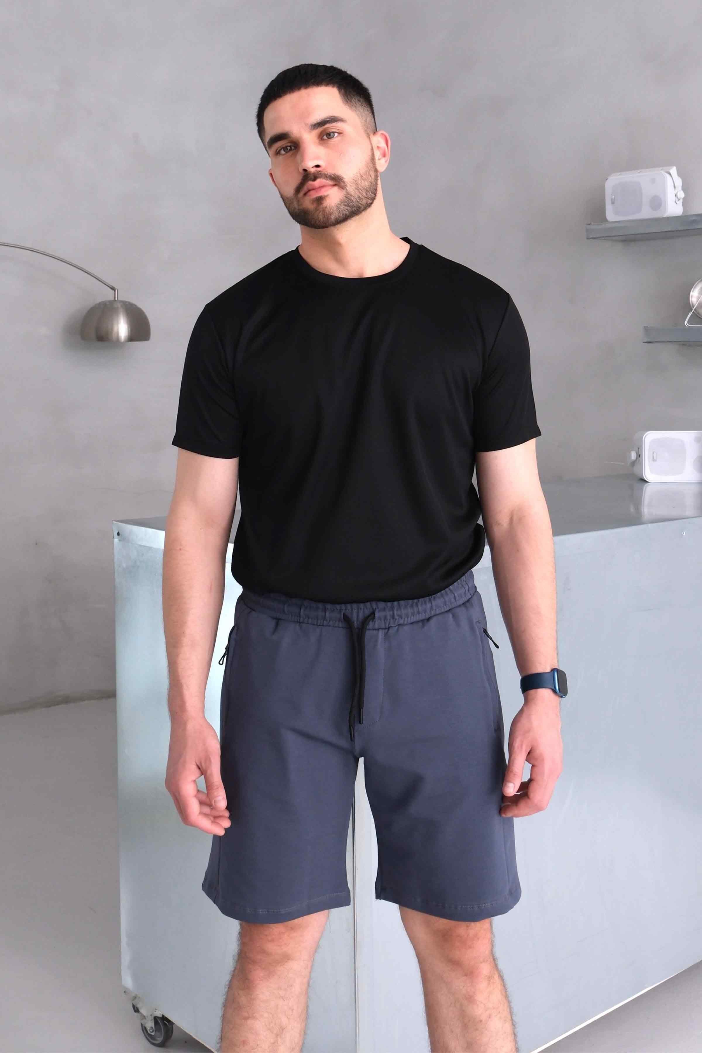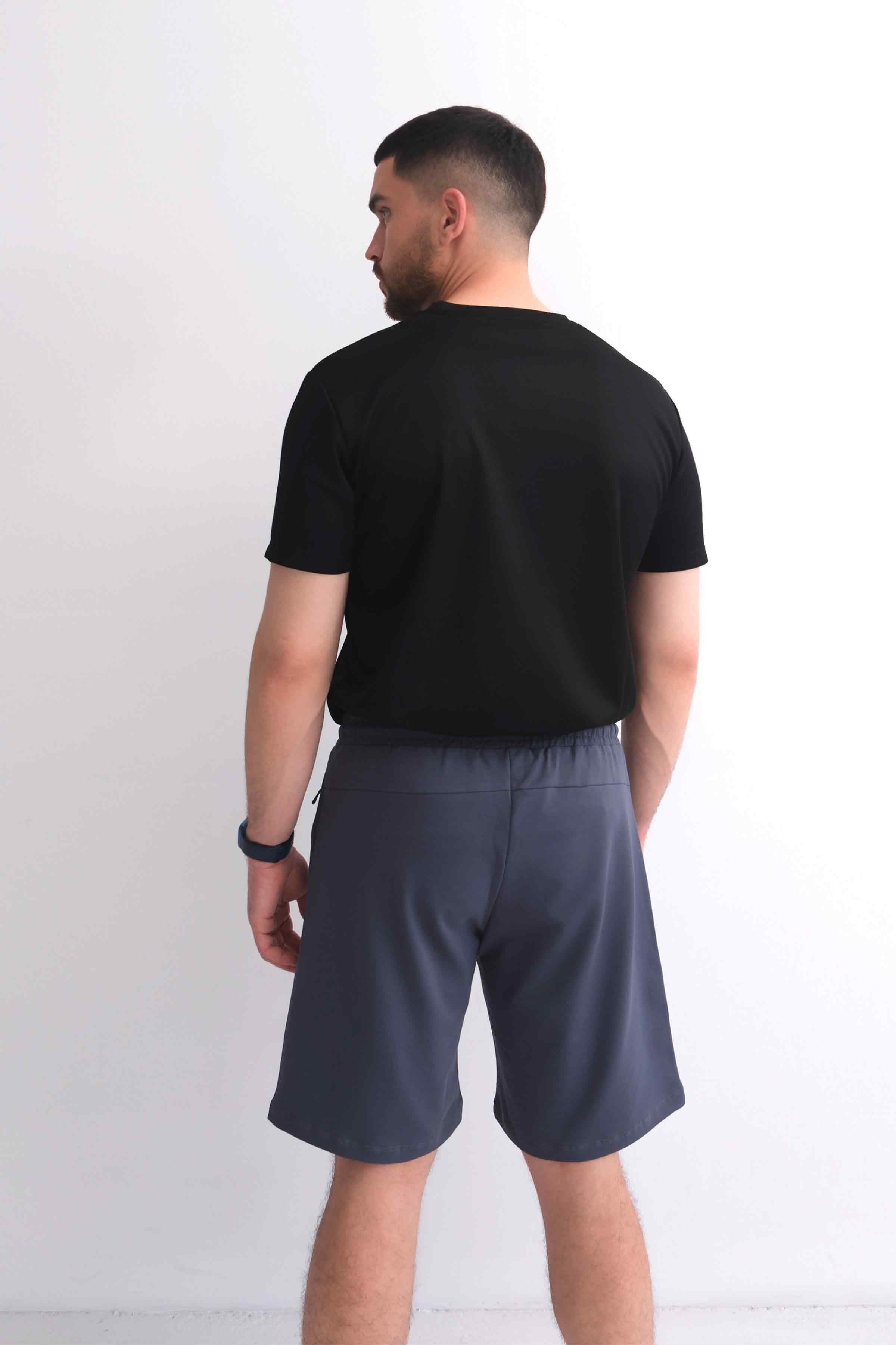 Men’s Elastic Waist Paneled Shorts with Zip Pockets - Navy Men’s Elastic Waist Paneled Shorts with Zip Pockets - Black Men’s Elastic Waist Paneled Shorts with Zip Pockets - Grey