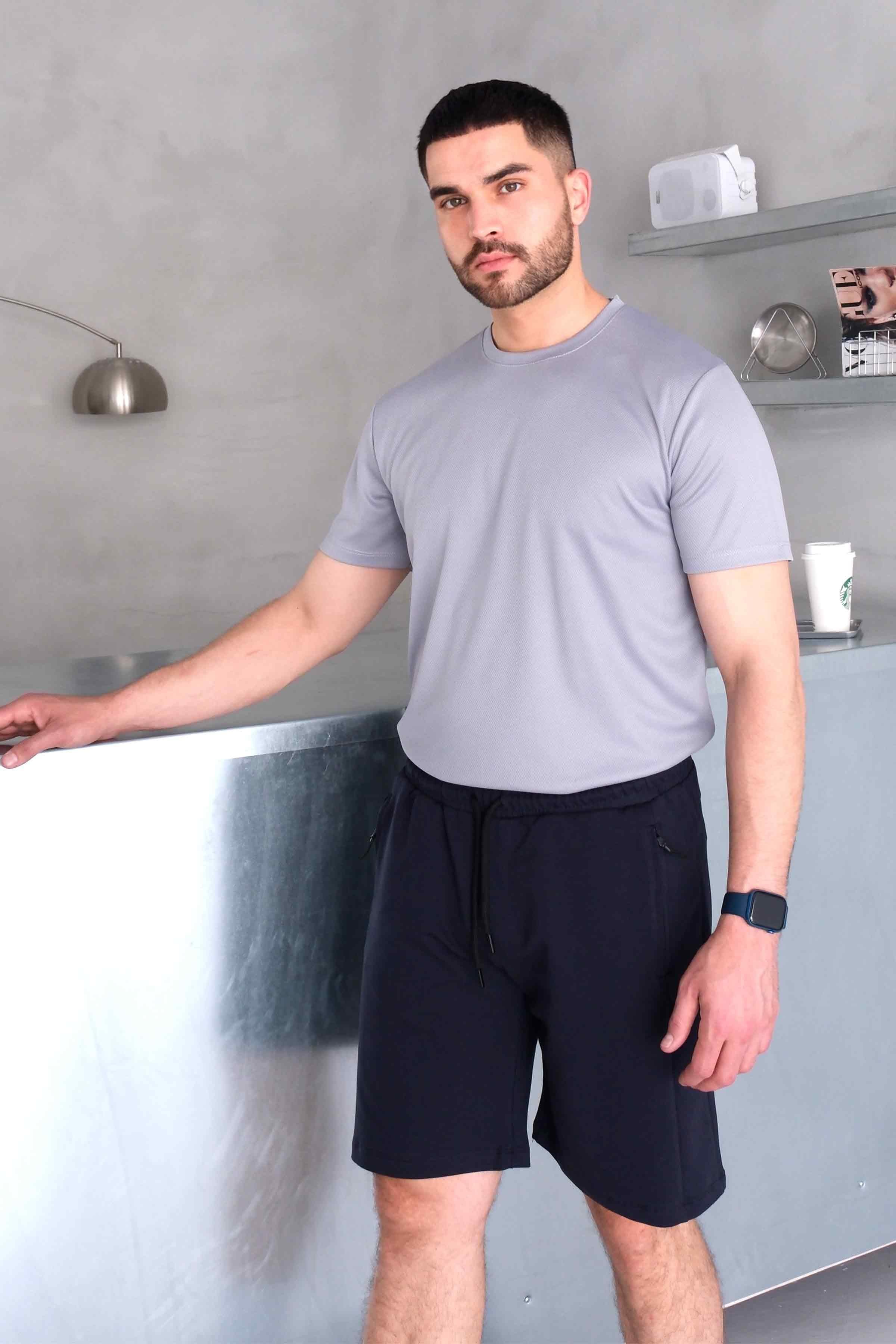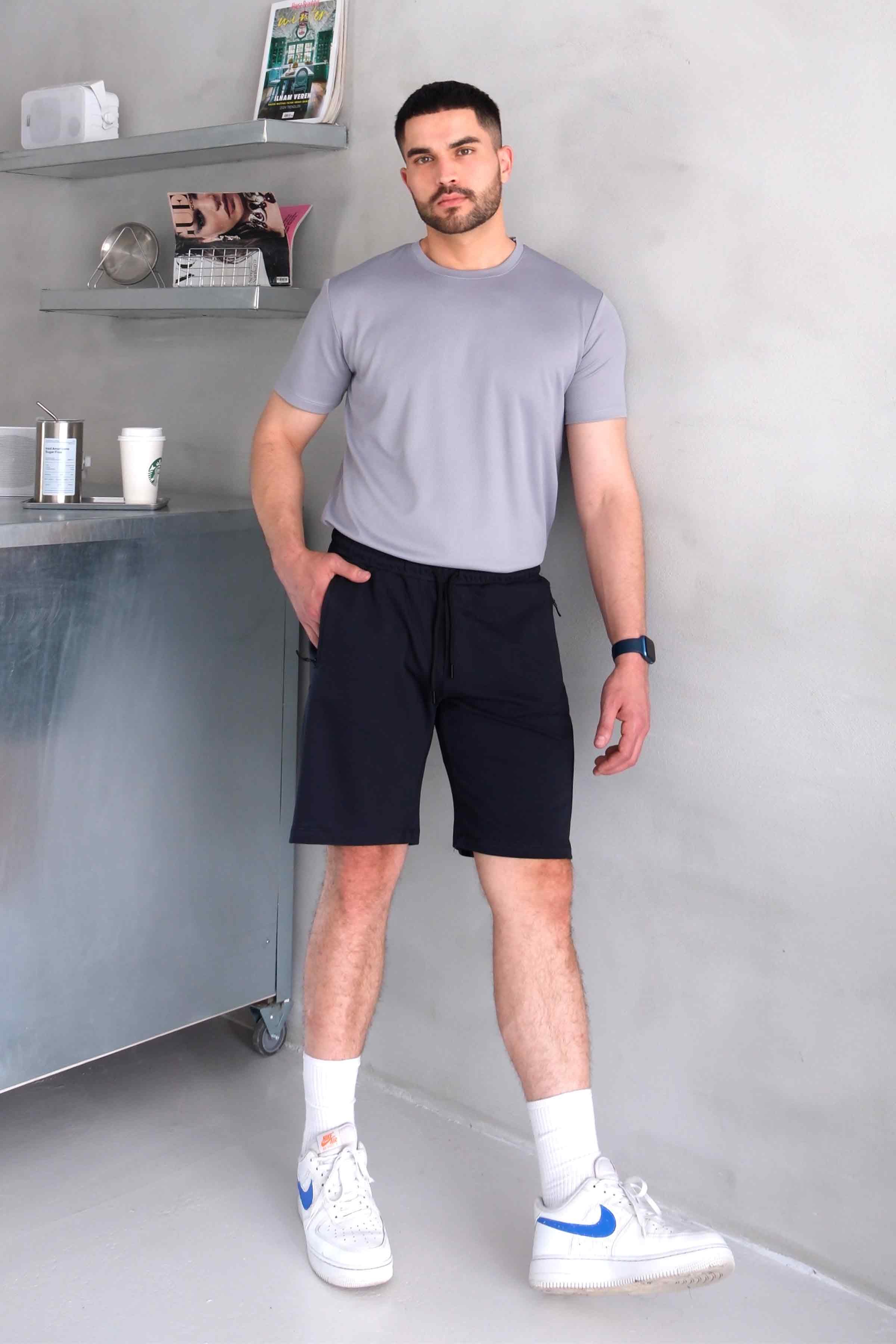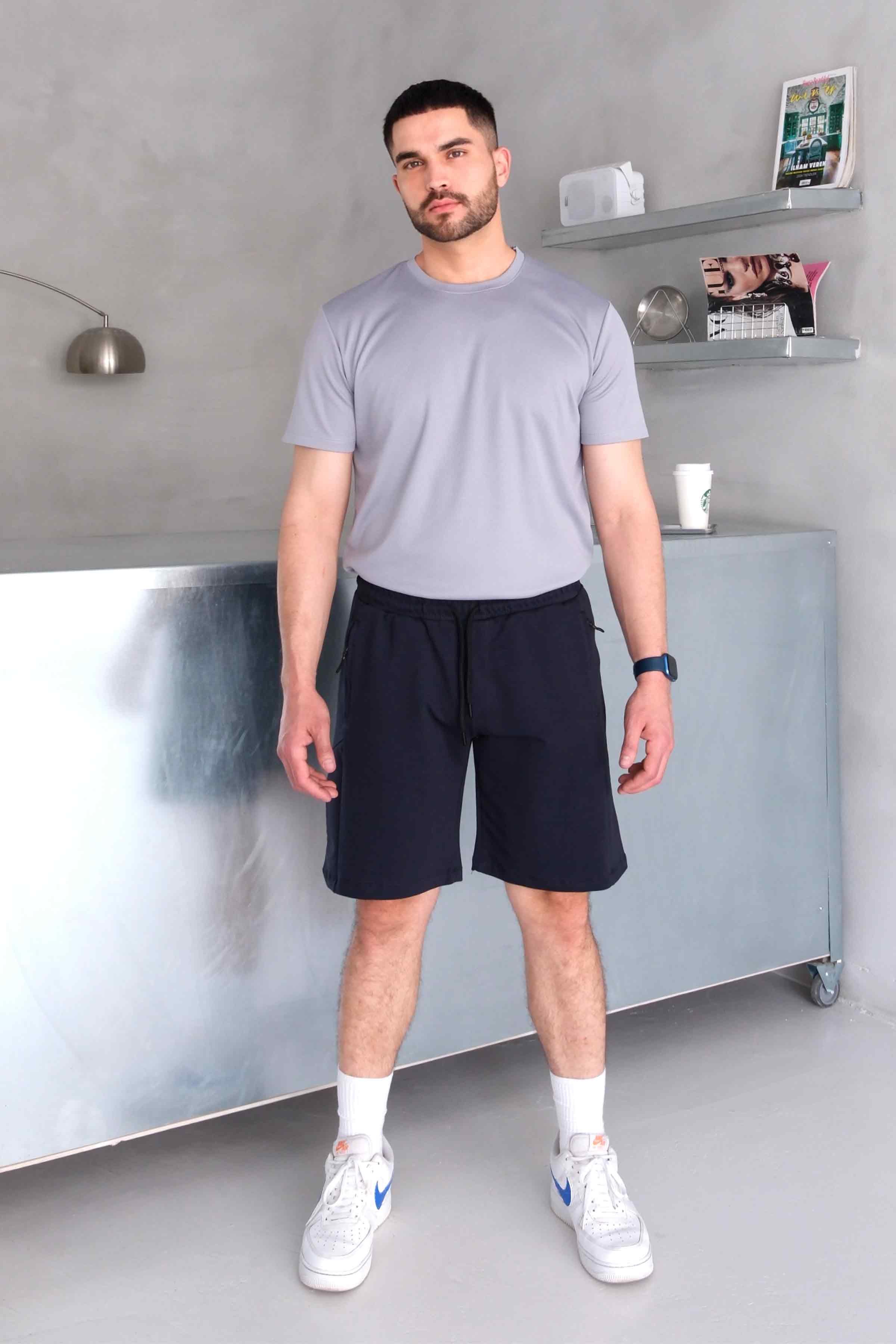 Men’s Elastic Waist Paneled Shorts with Zip Pockets - Navy (Y-25-7740)