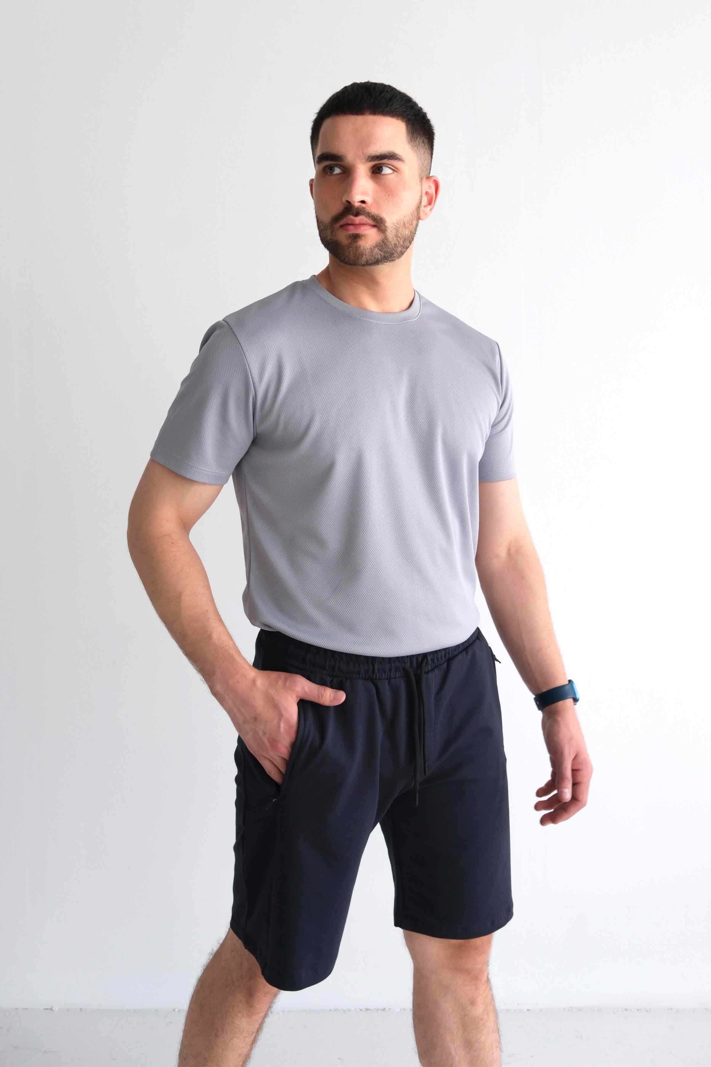 Men’s Elastic Waist Paneled Shorts with Zip Pockets - Black Men’s Elastic Waist Paneled Shorts with Zip Pockets - Grey Men’s Elastic Waist Paneled Shorts with Zip Pockets - Charcoal