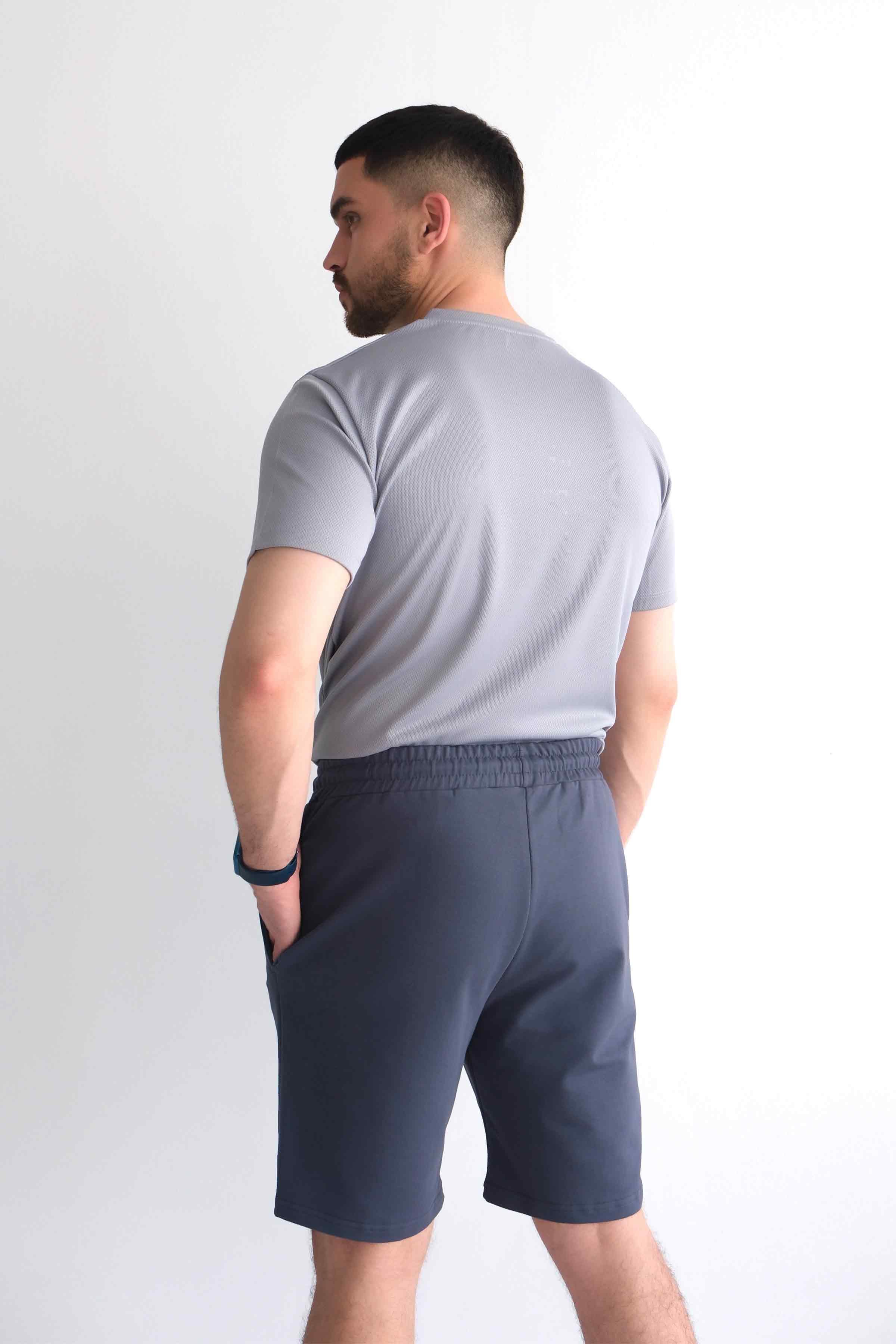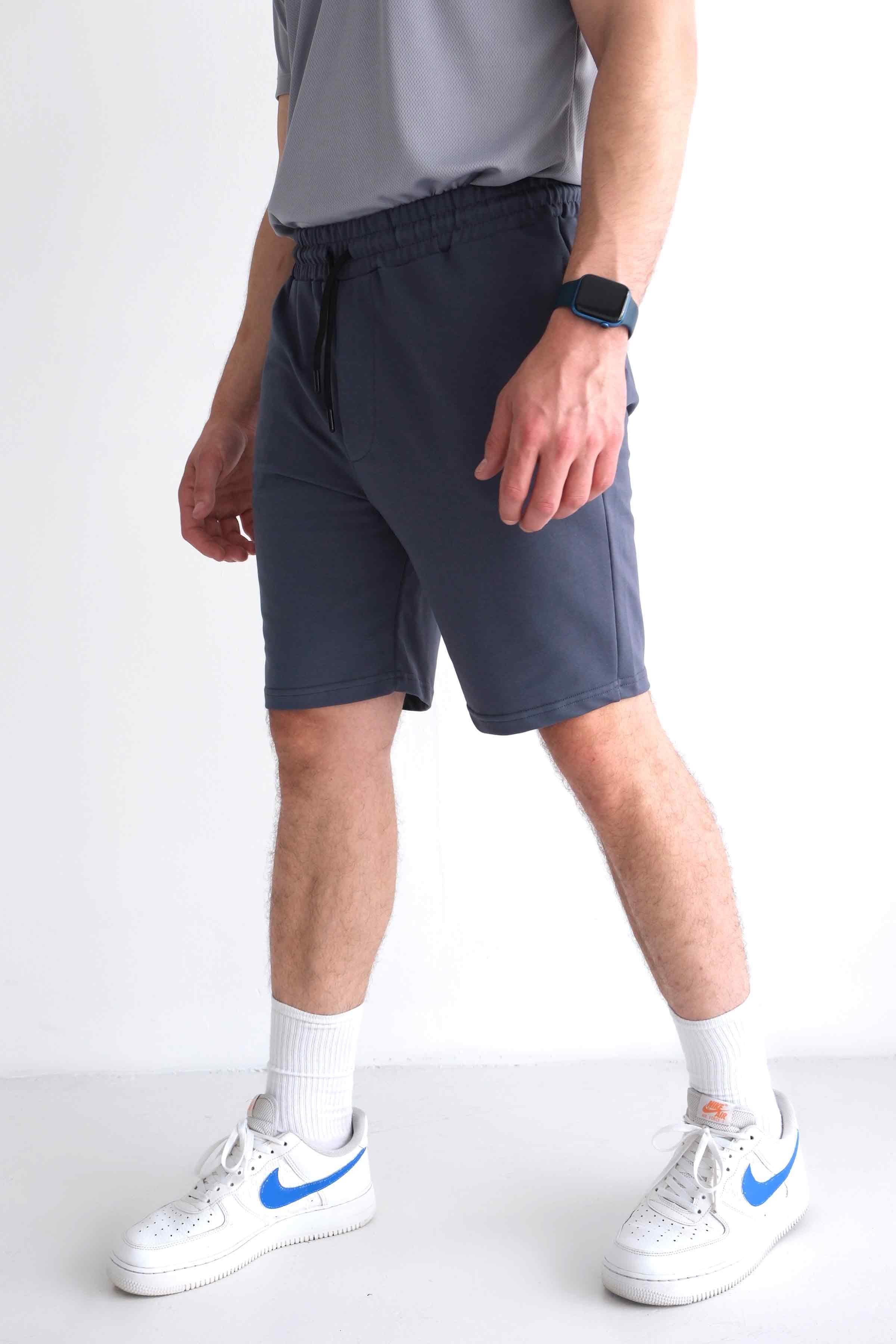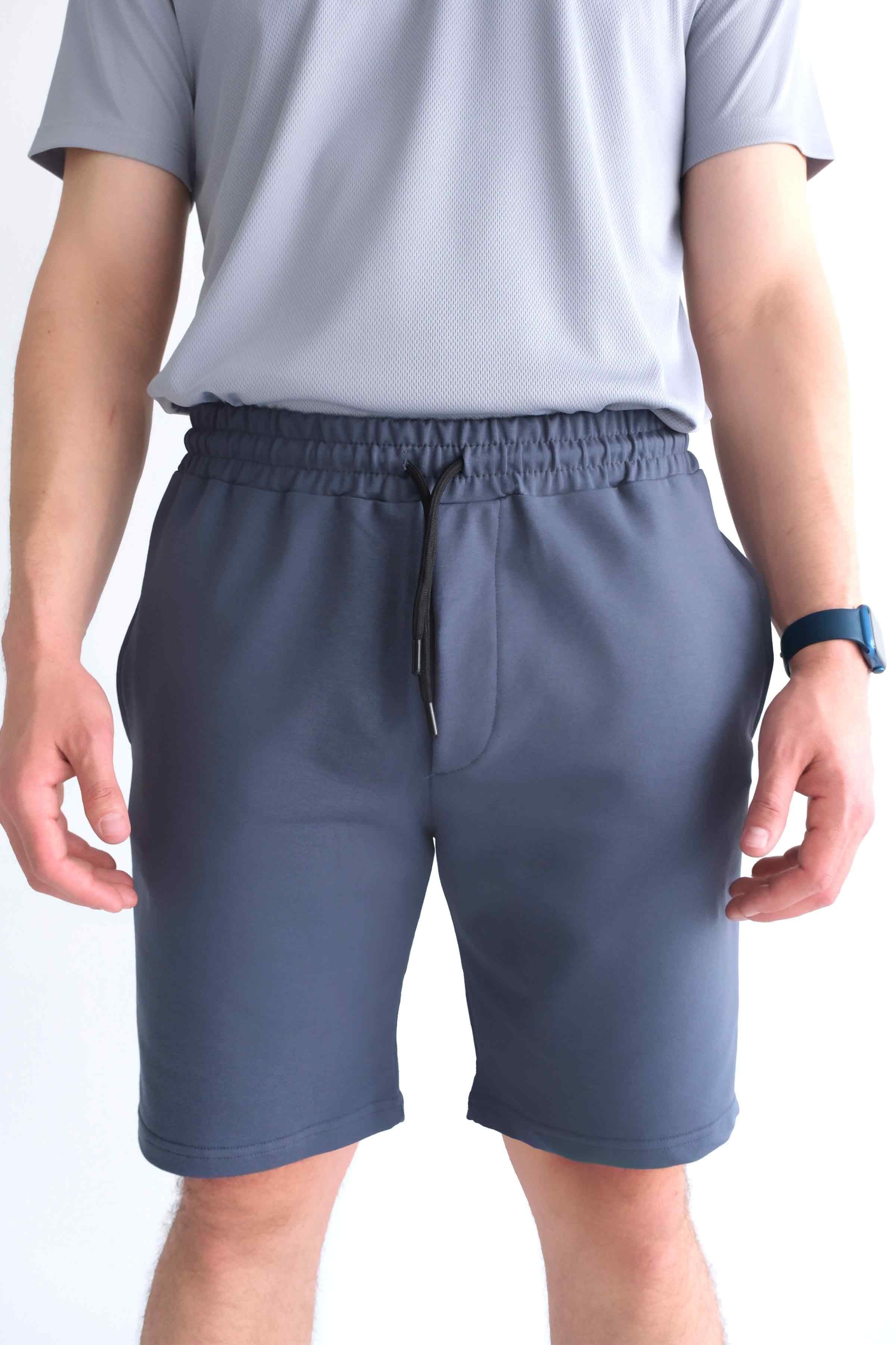 Men’s Elastic Waist Cotton Shorts with Patch Pockets - Charcoal (Y-25-7741)
