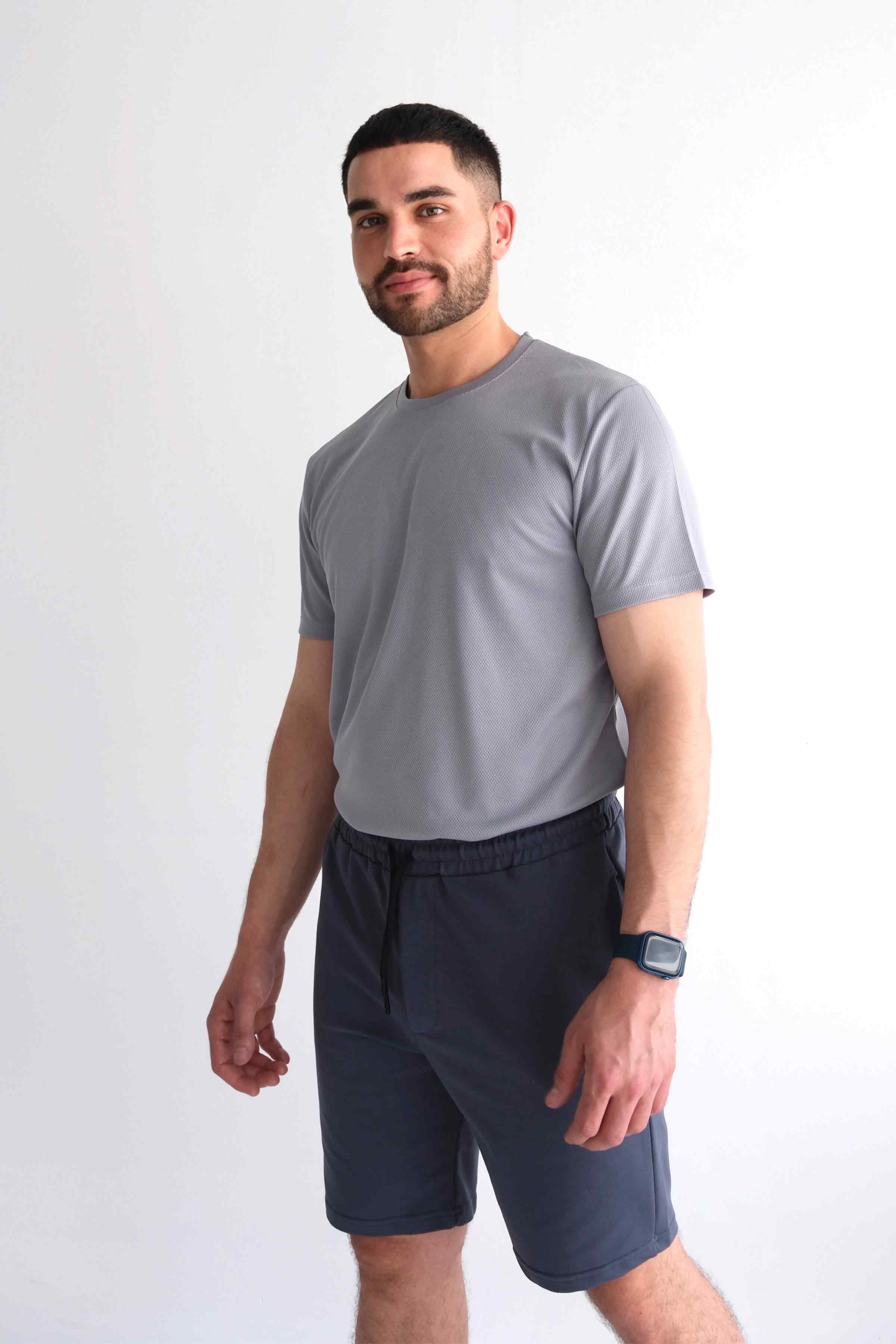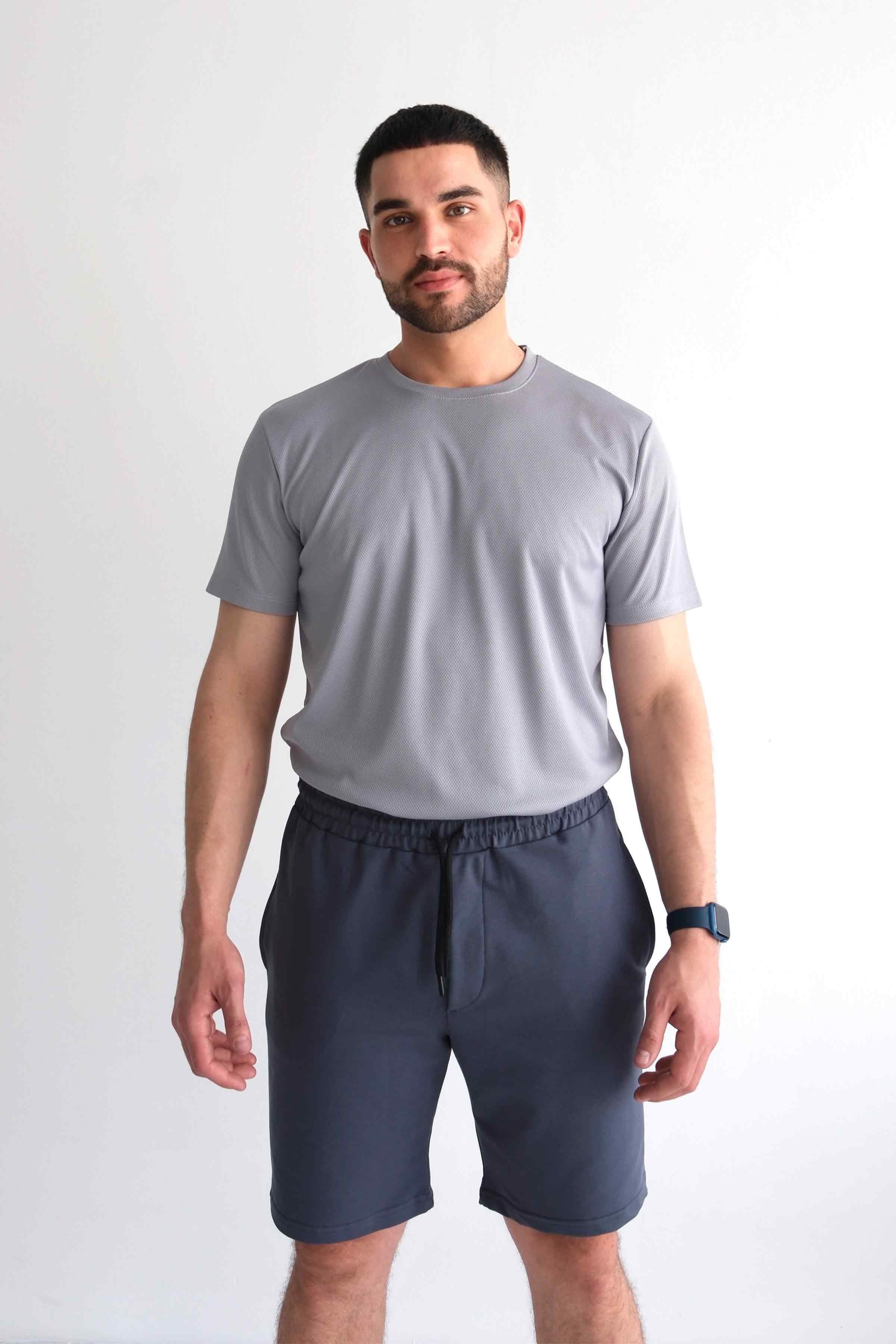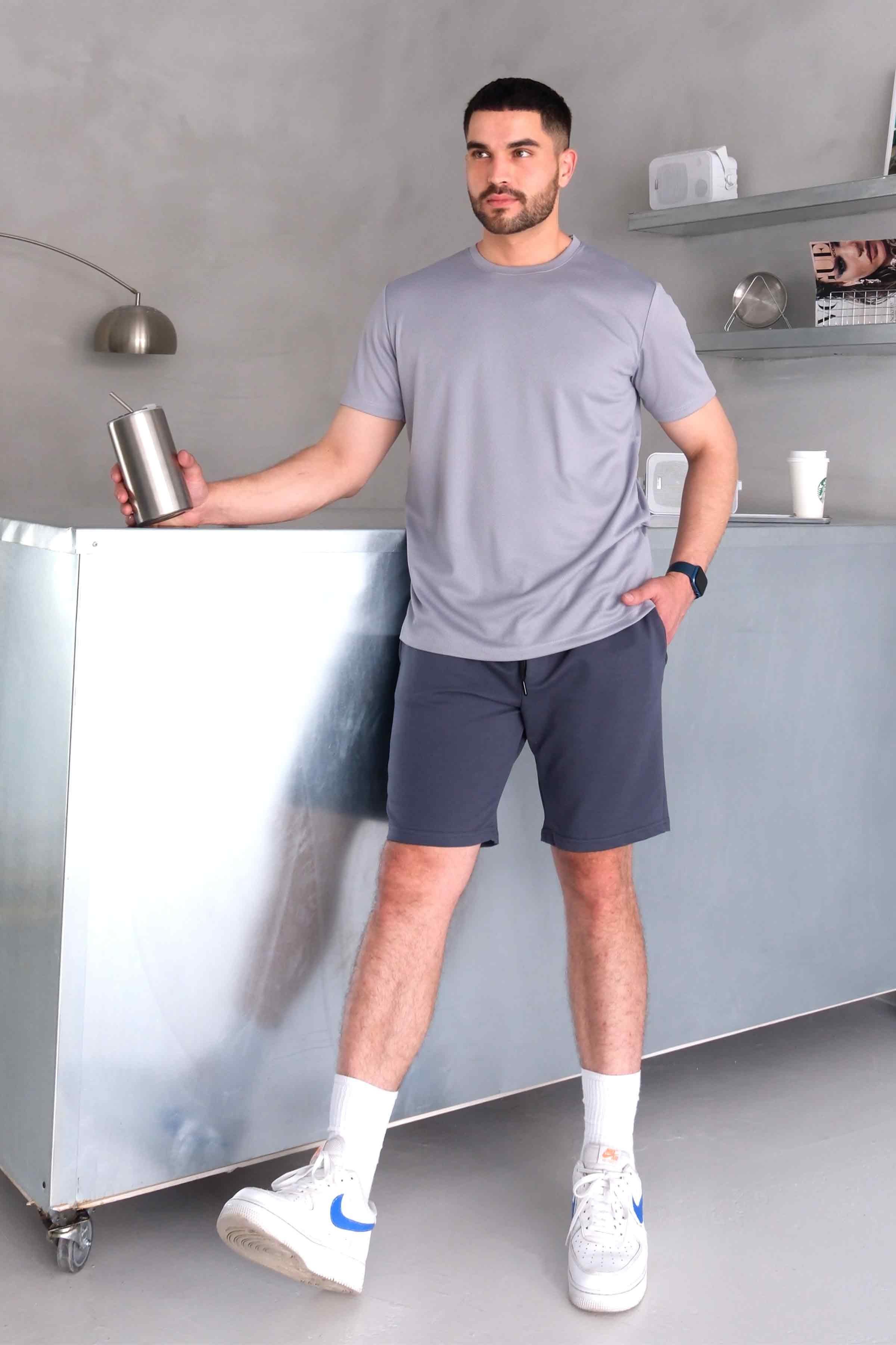 Men’s Elastic Waist Cotton Shorts with Patch Pockets - Charcoal (Y-25-7741)