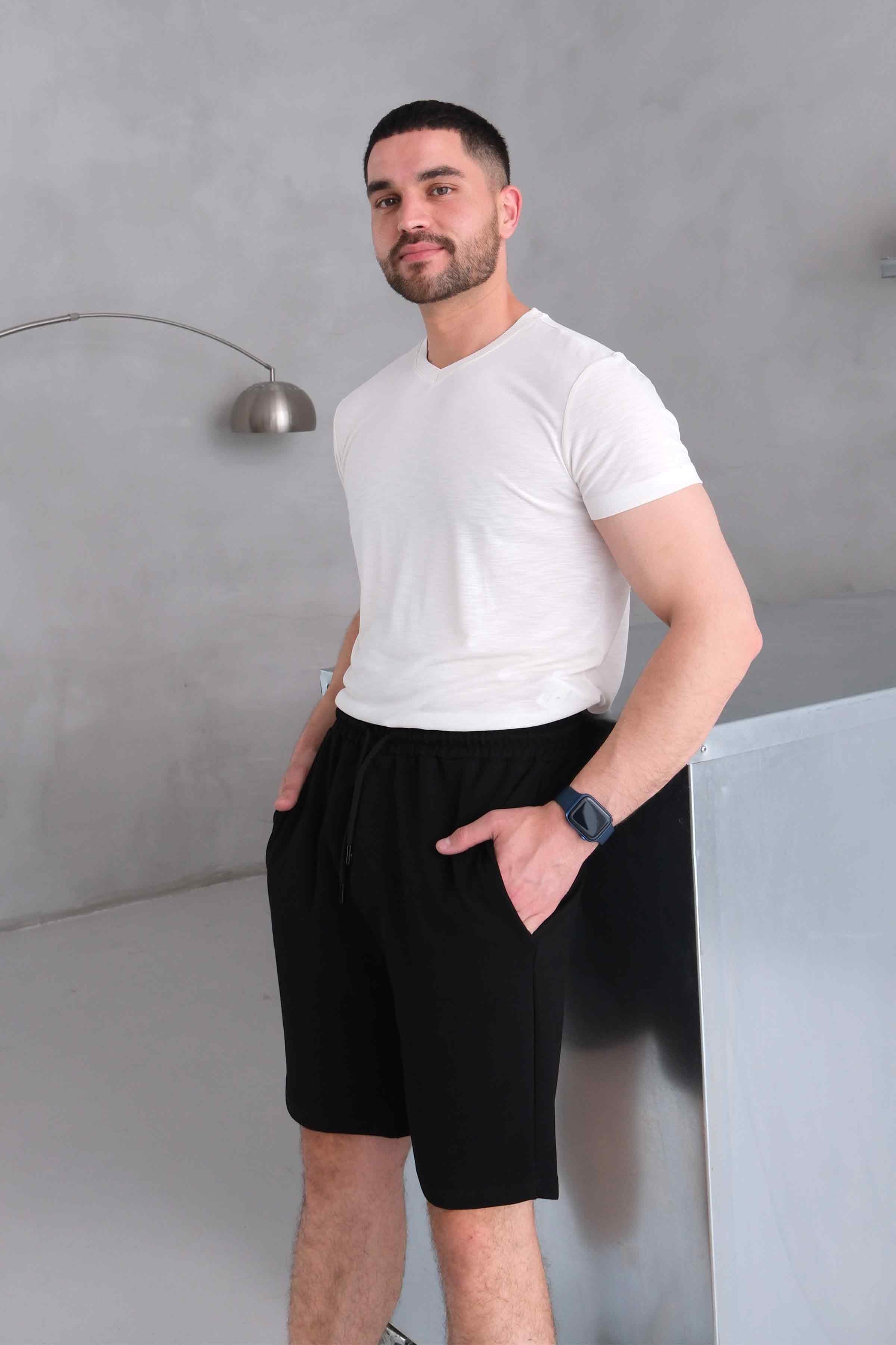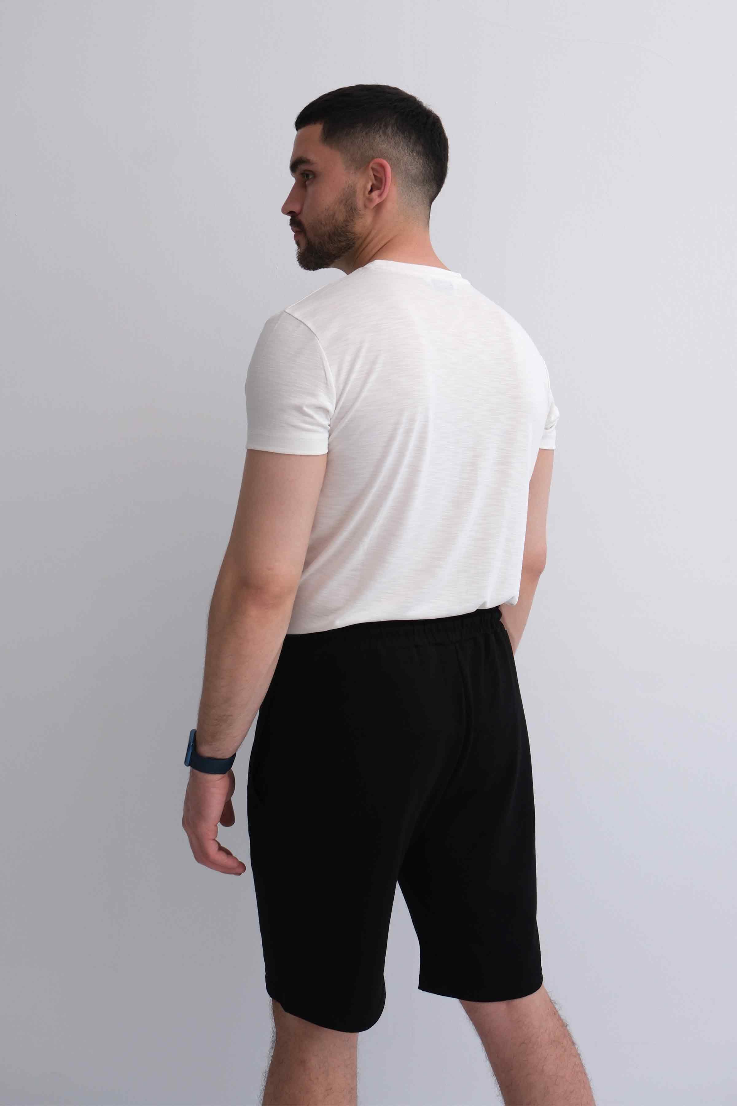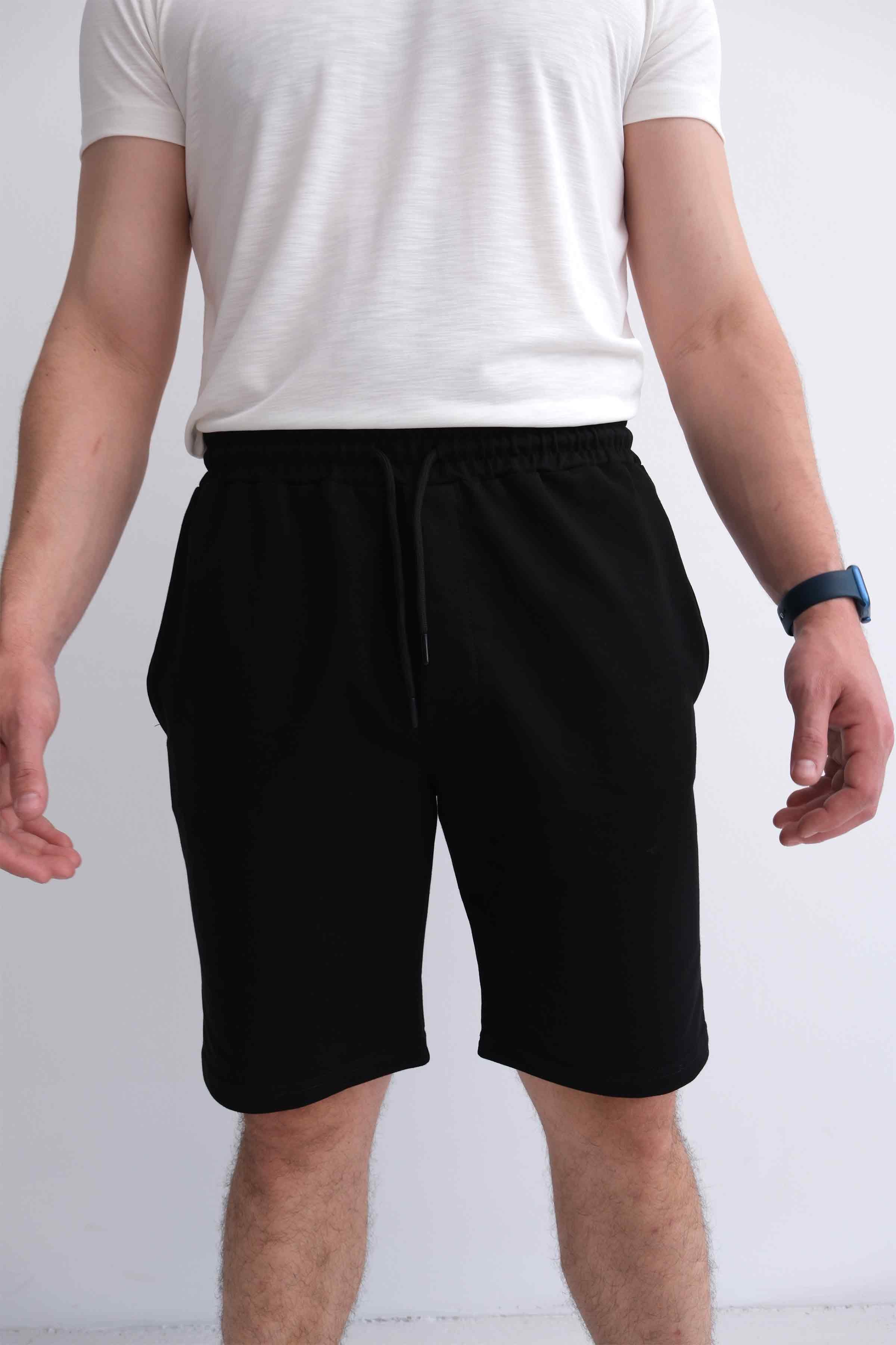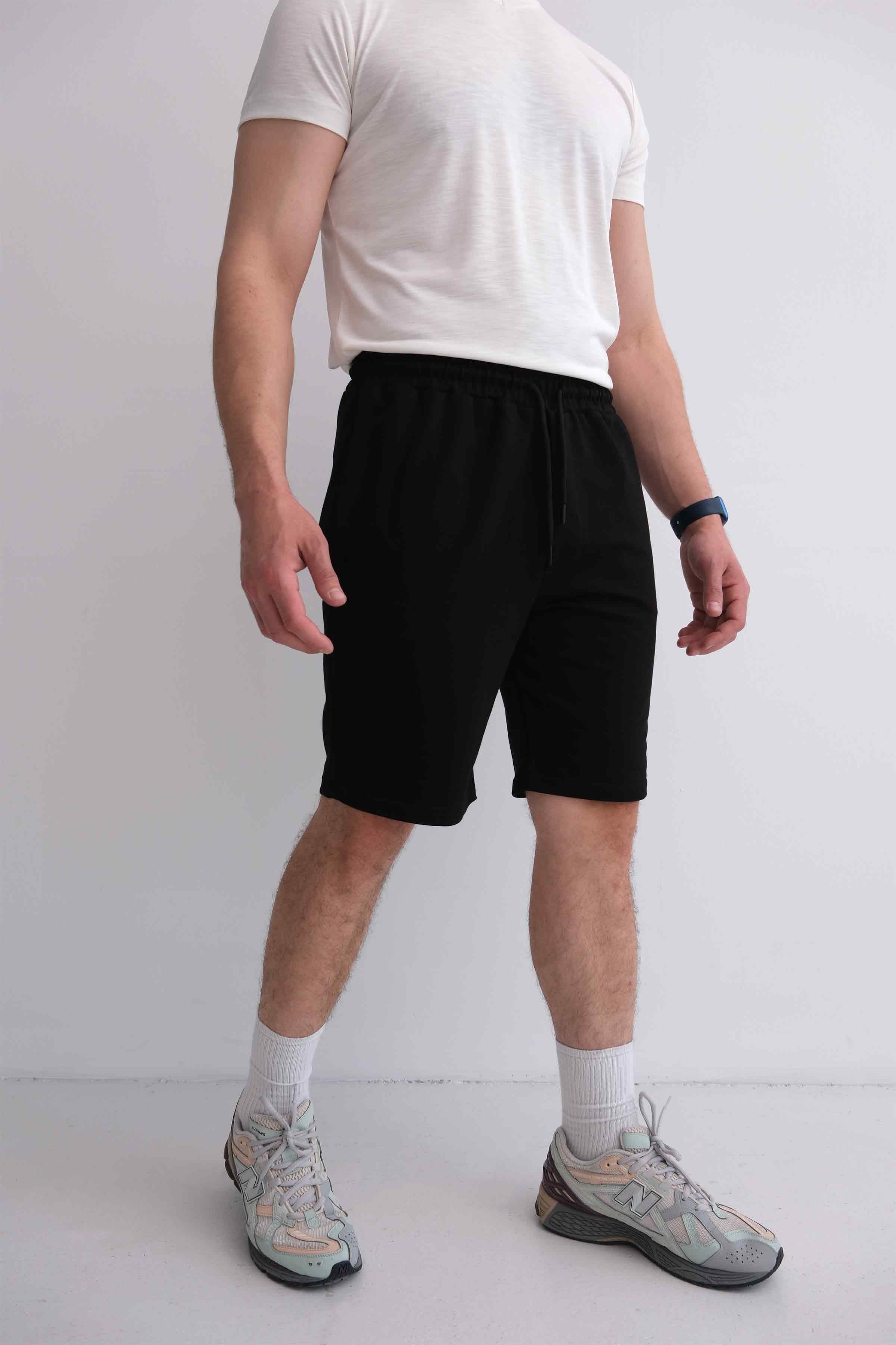 Men’s Elastic Waist Cotton Shorts with Patch Pockets - Black (Y-25-7741)