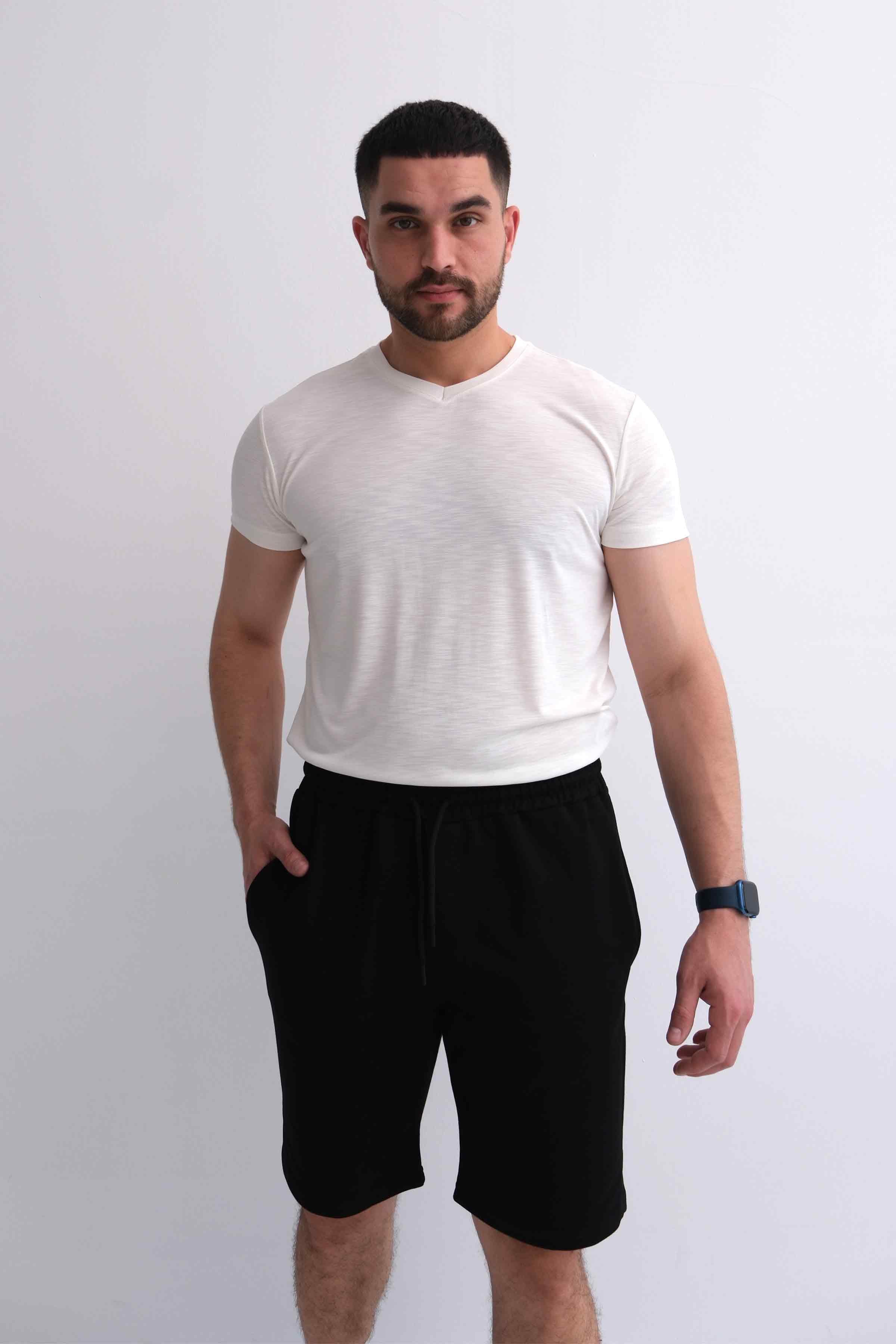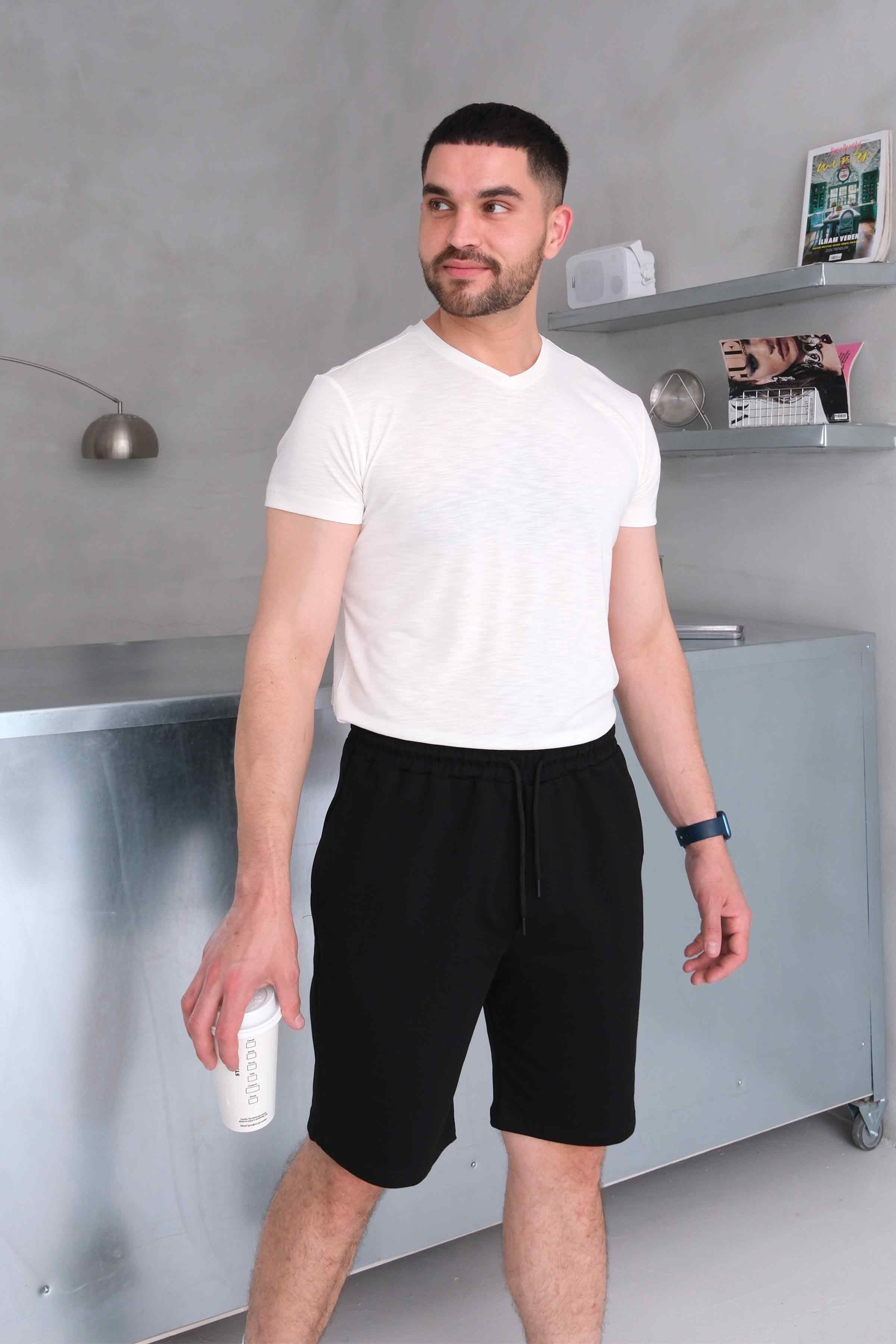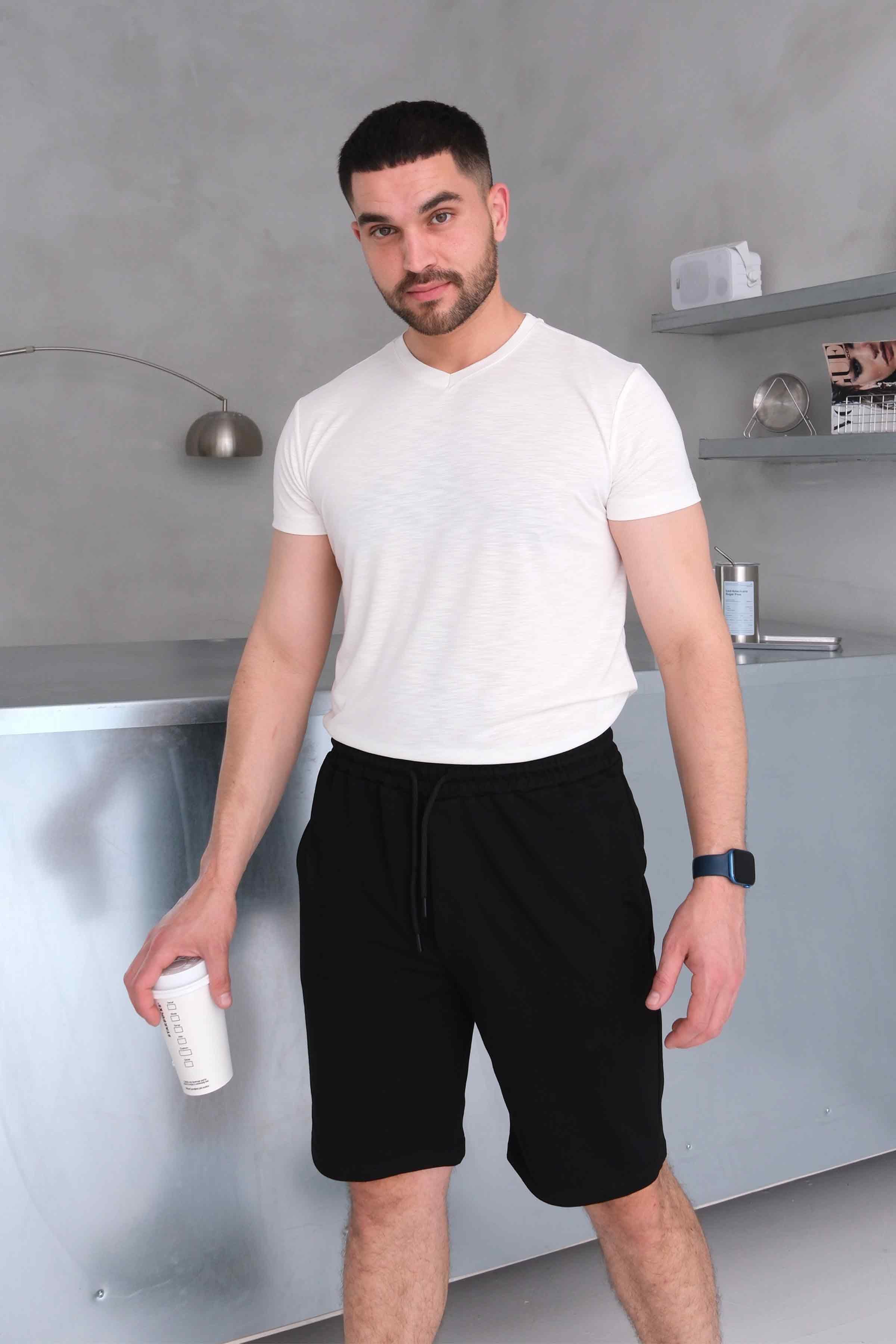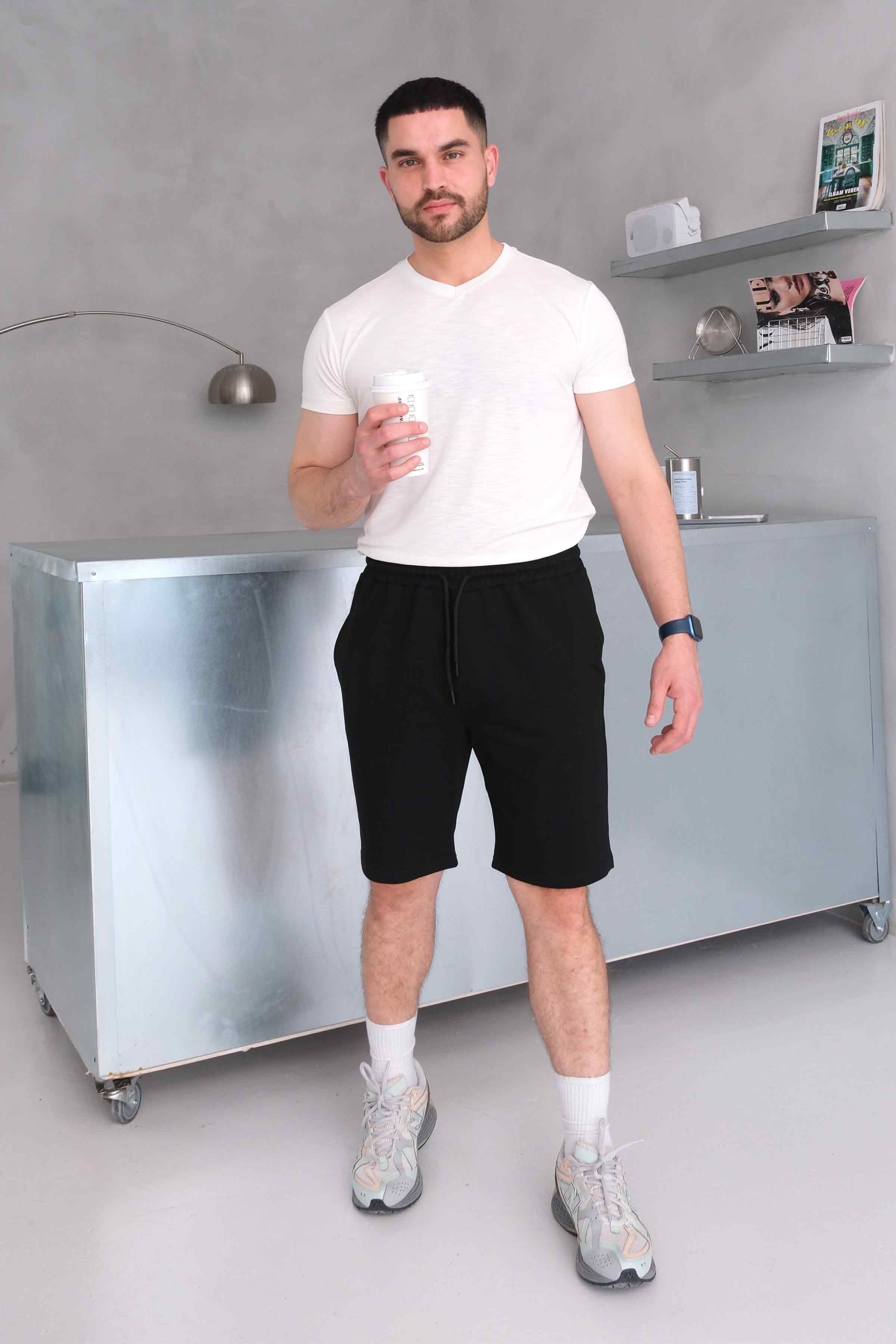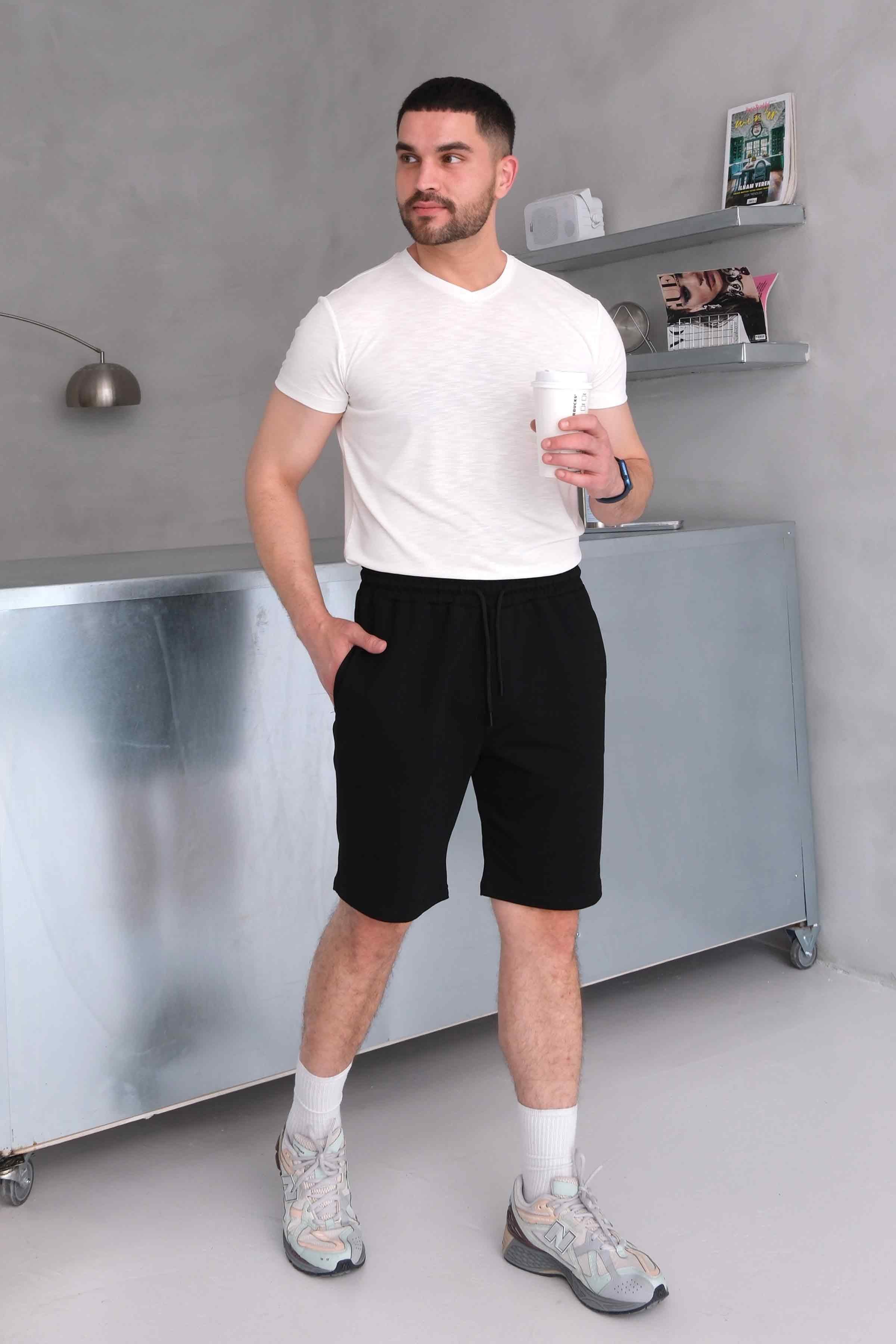Men’s Elastic Waist Cotton Shorts with Patch Pockets - Black (Y-25-7741)
