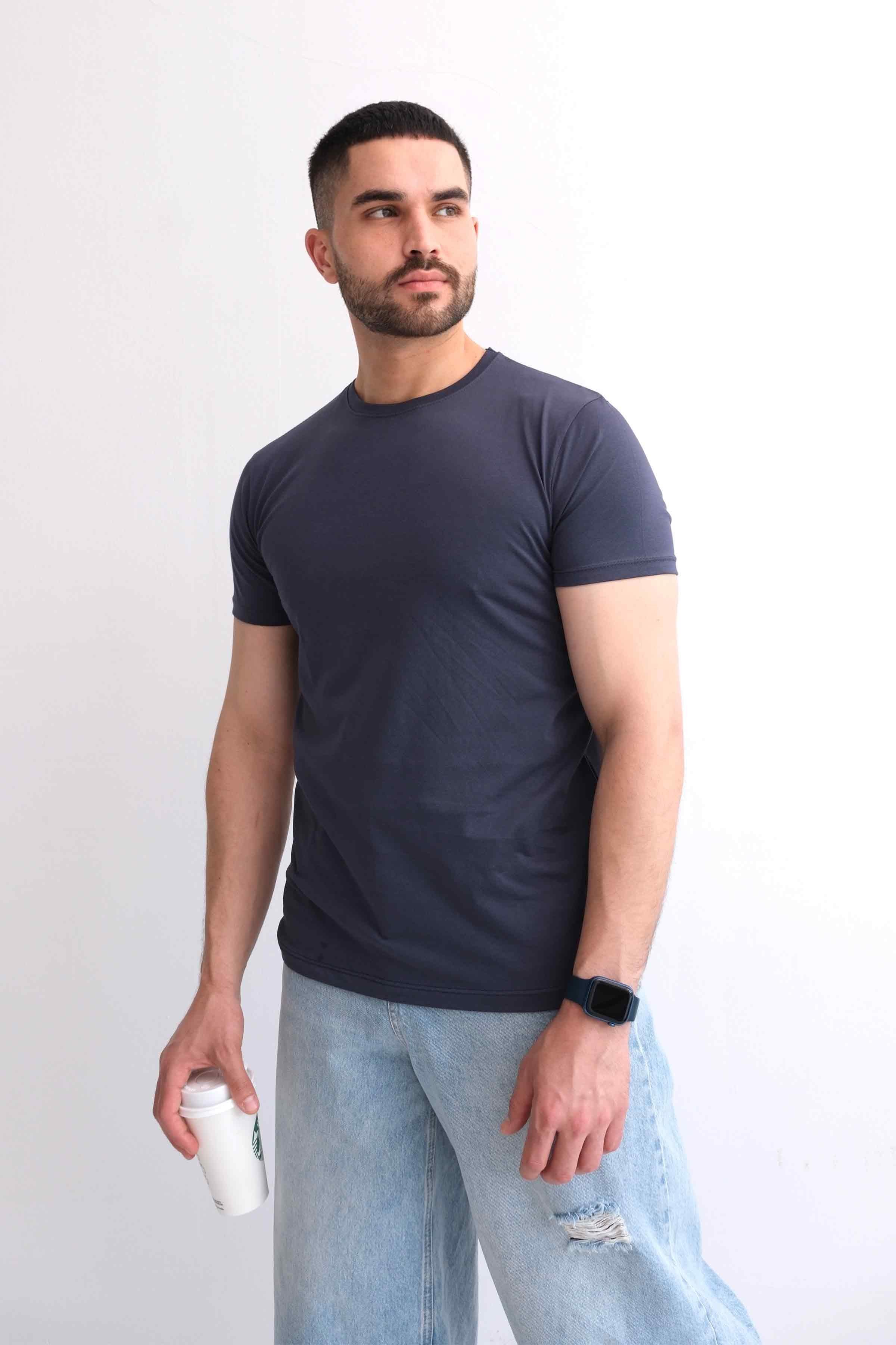 Men’s Crew-Neck Plain 100% Cotton Basic T-Shirt – Charcoal
