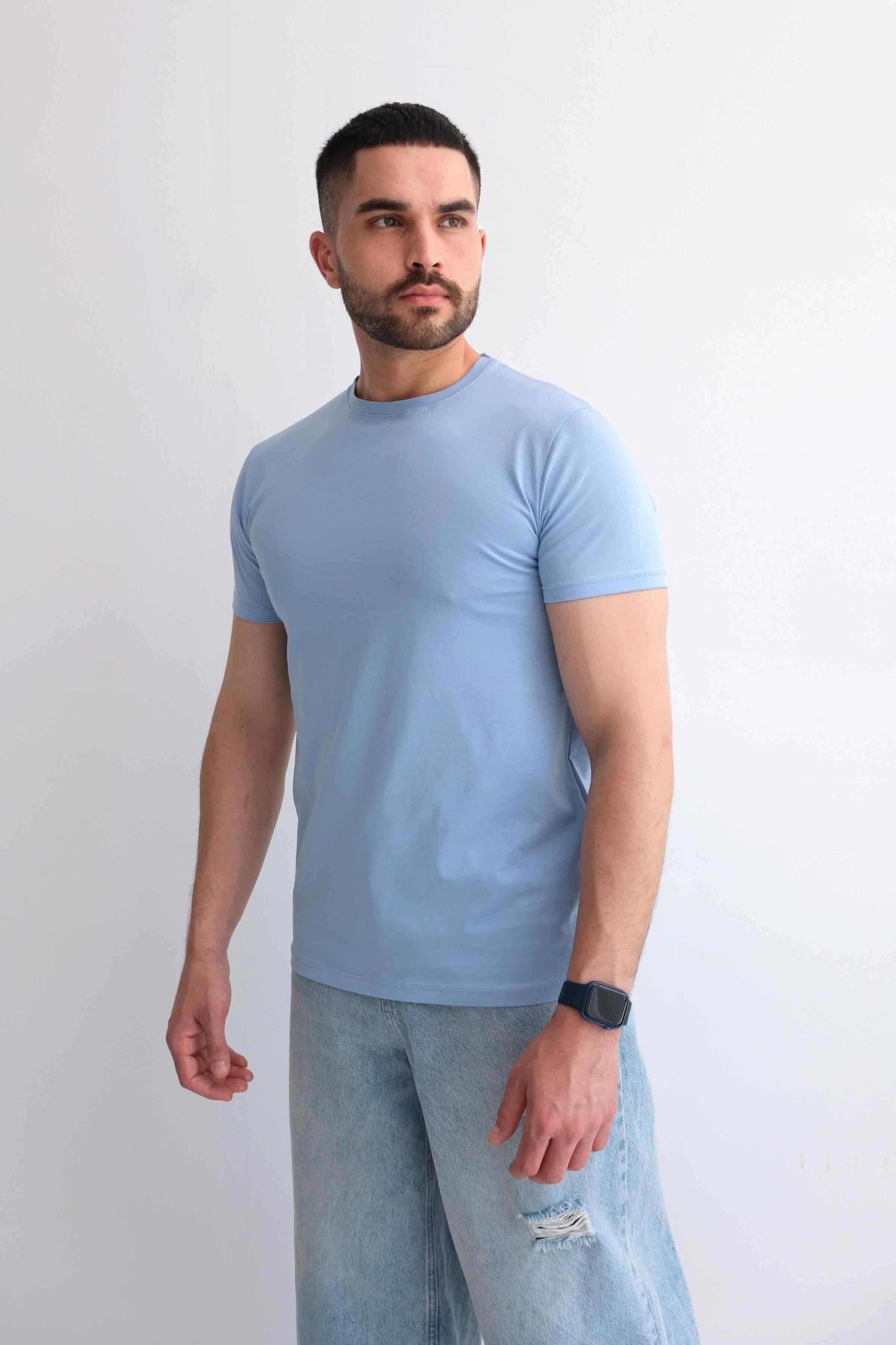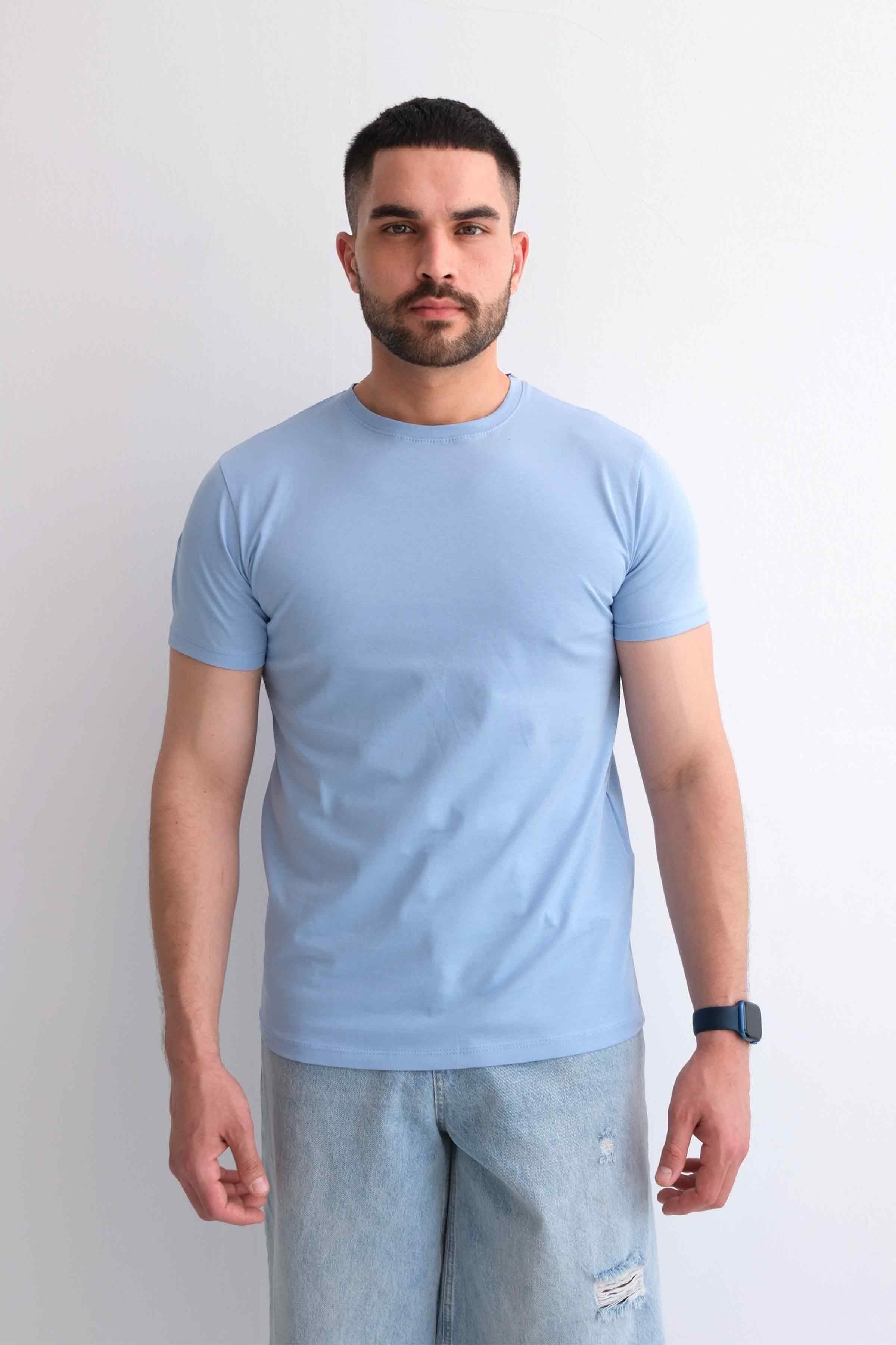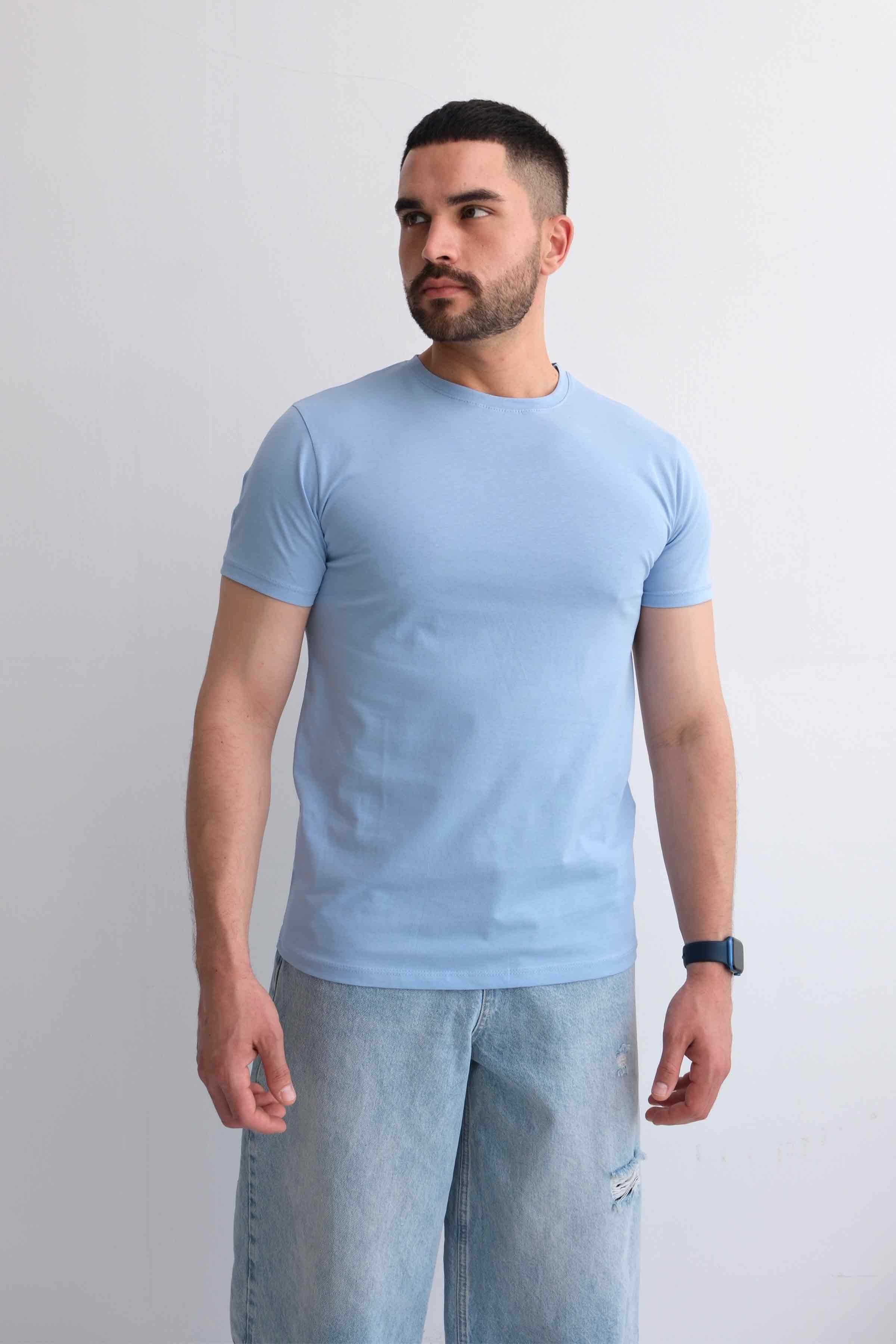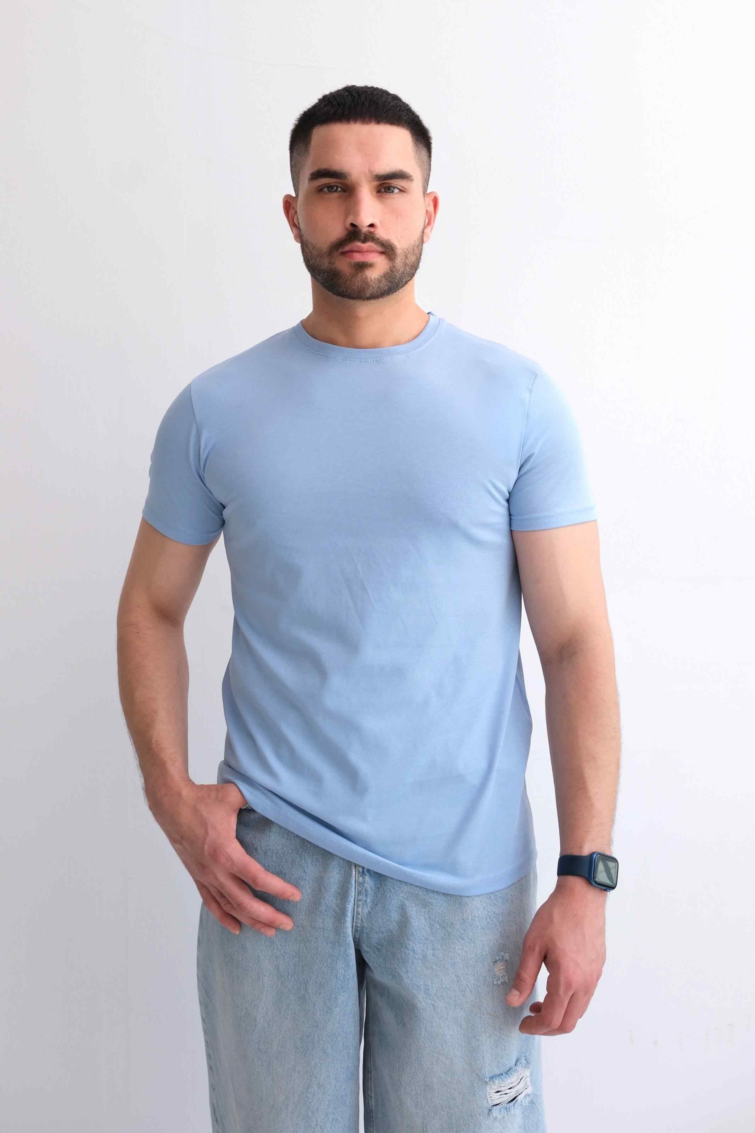 Men’s Crew-Neck Plain 100% Cotton Basic T-Shirt – Blue (Y-25-7764)