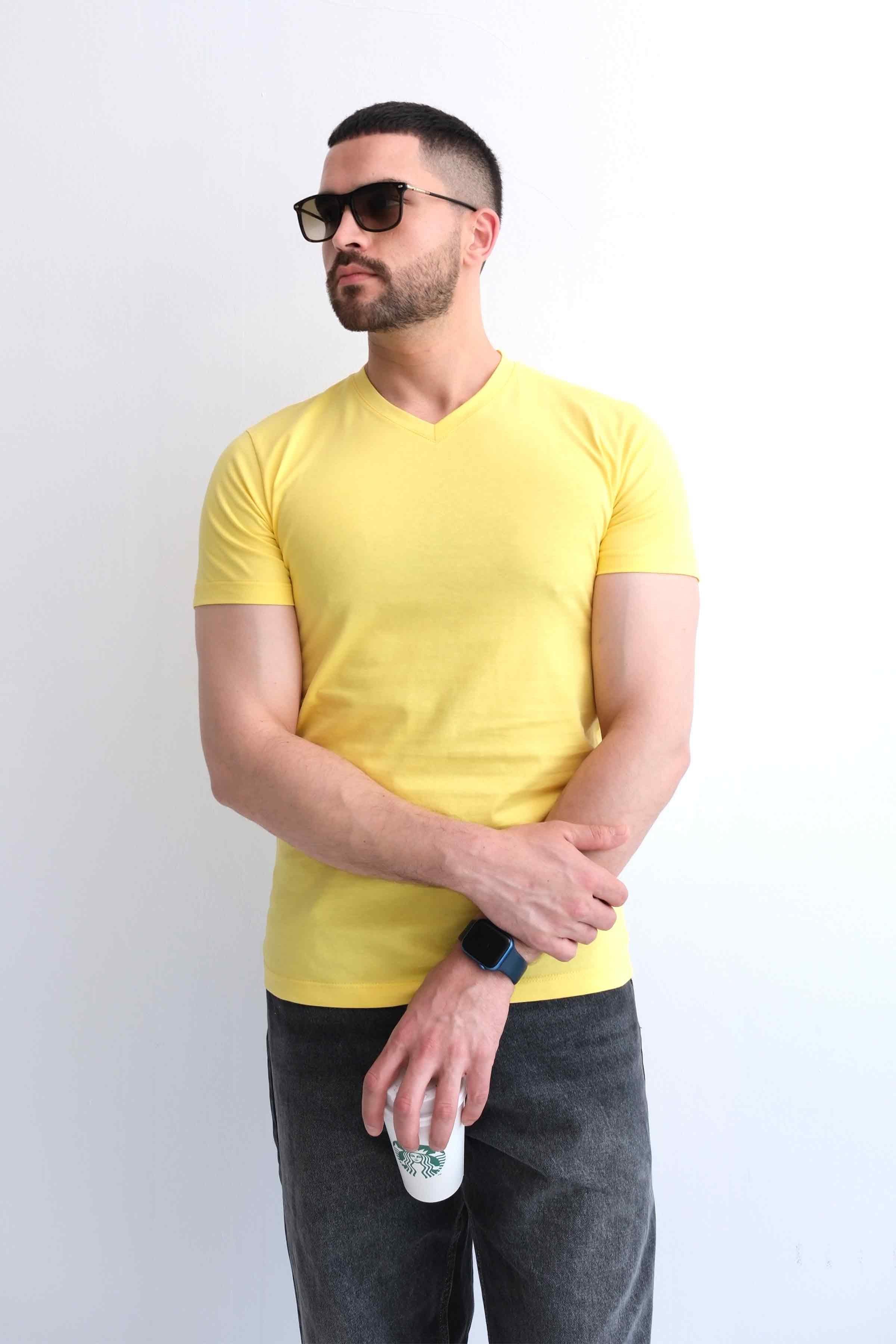 Men’s Crew-Neck Plain 100% Cotton Basic T-Shirt – Yellow