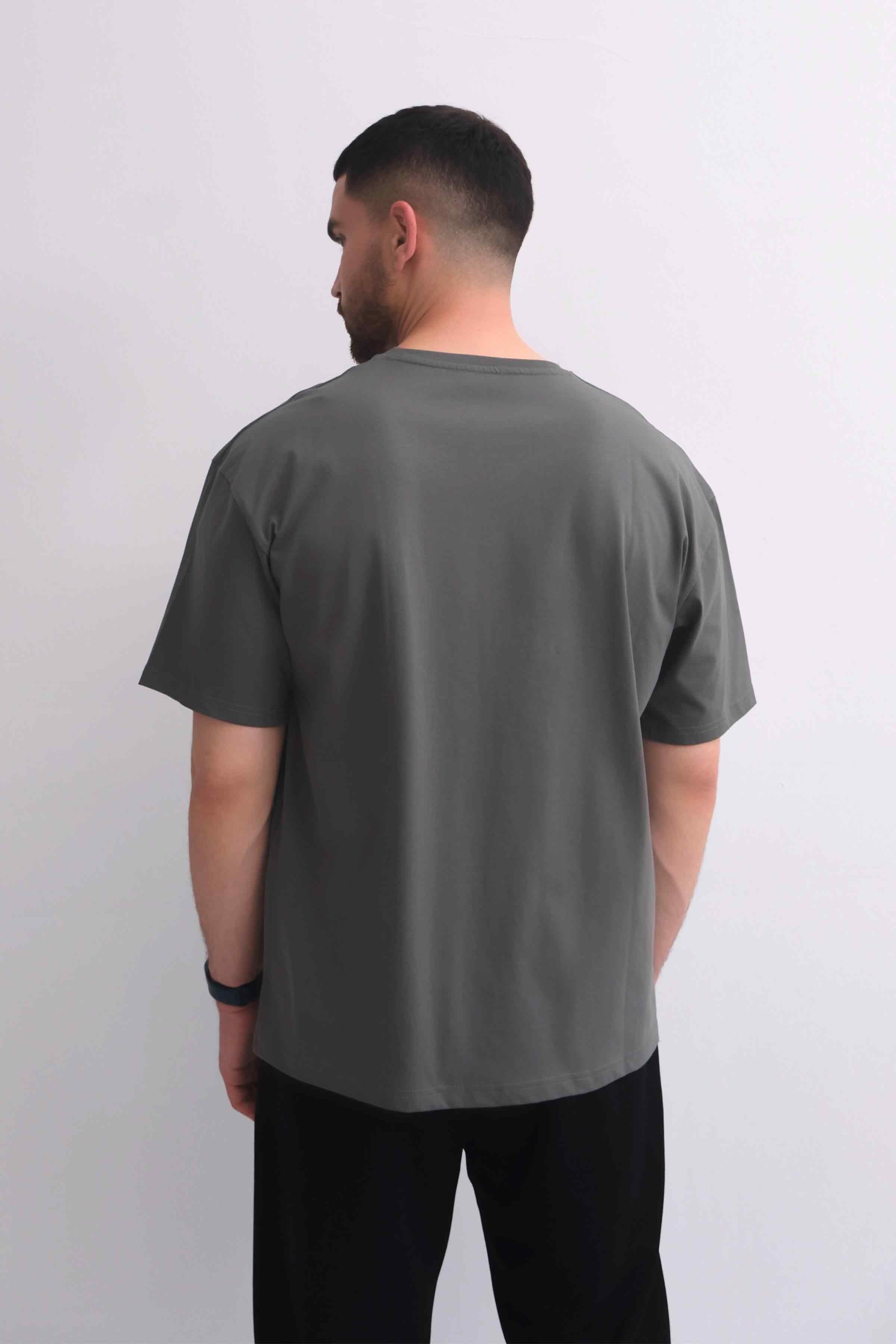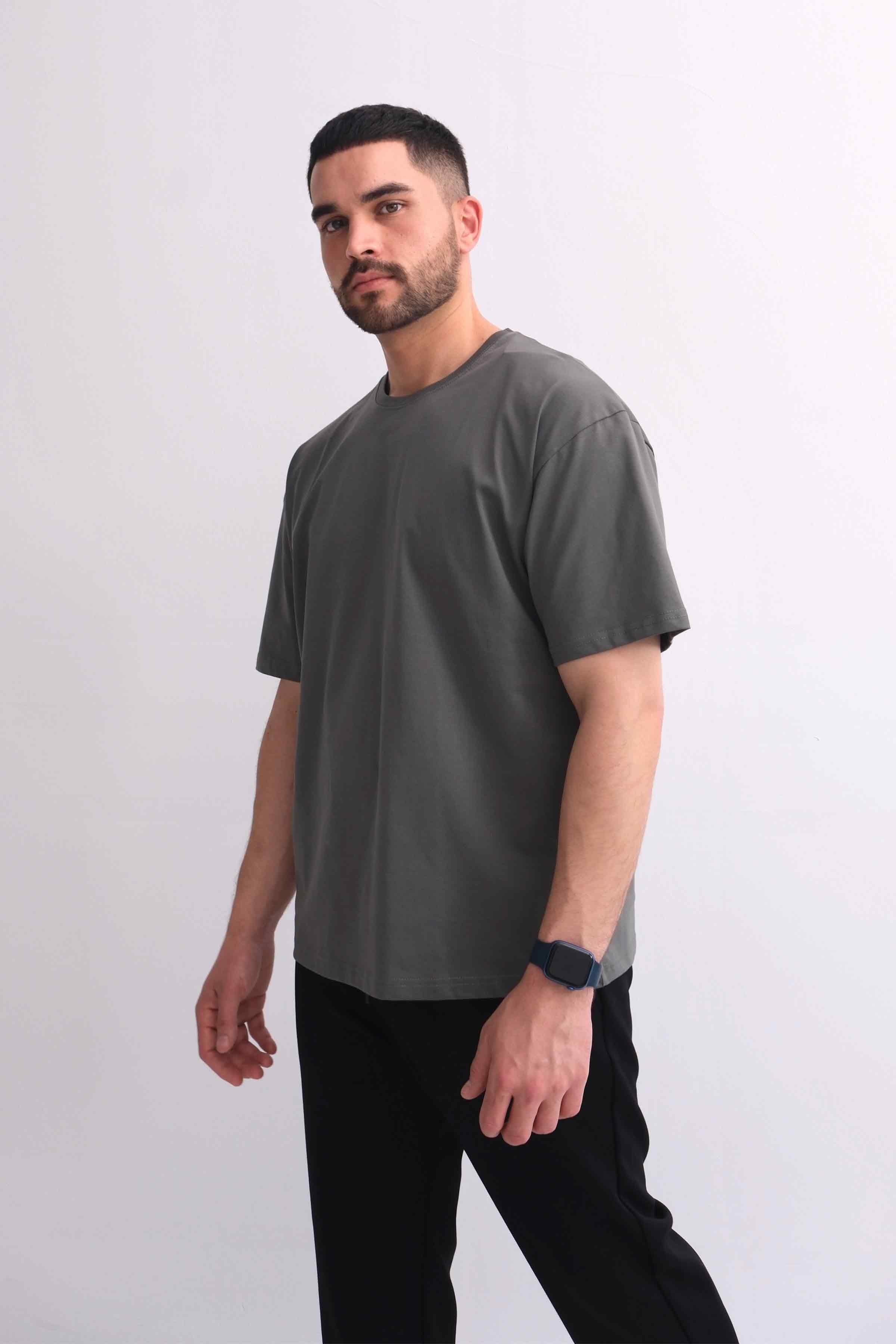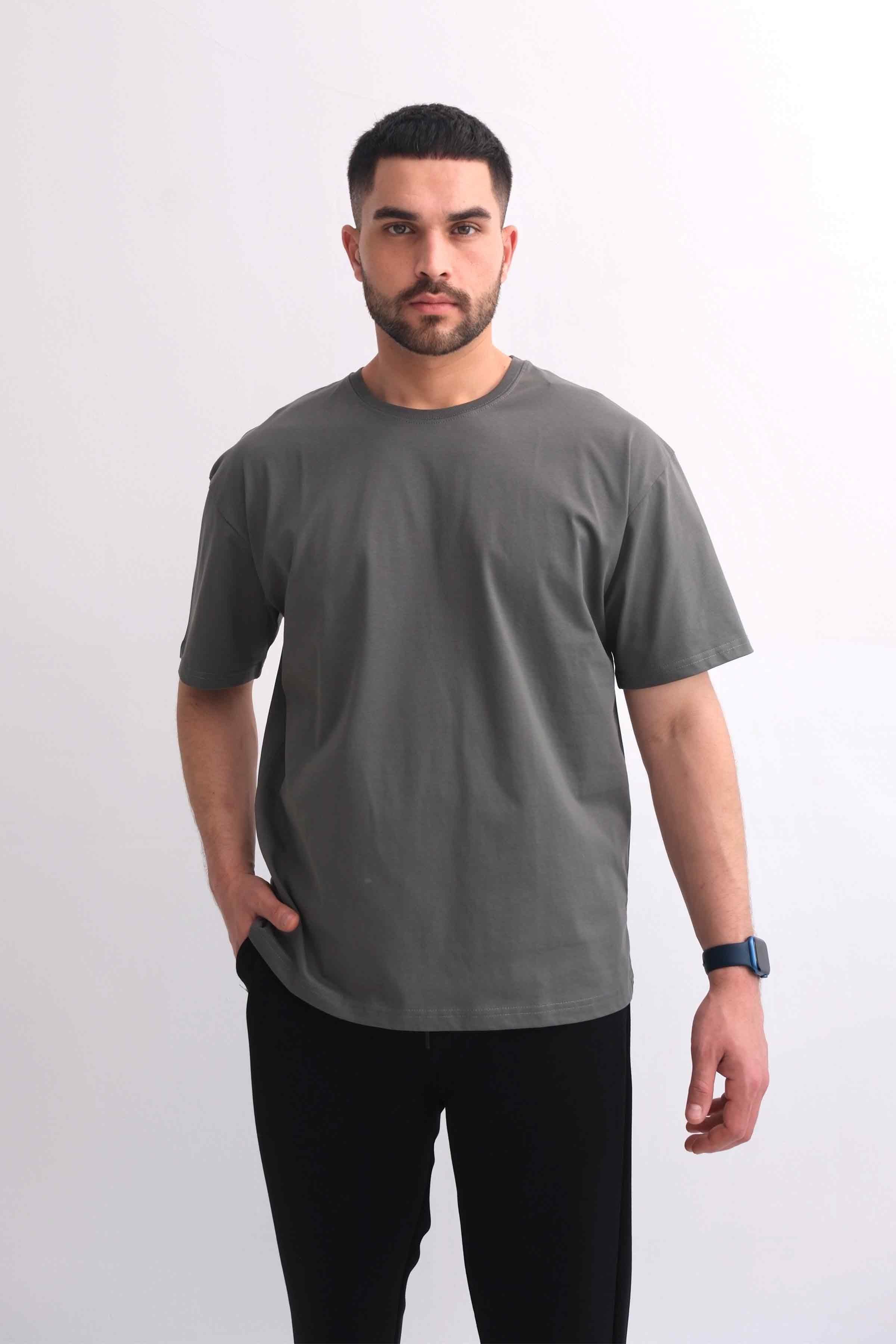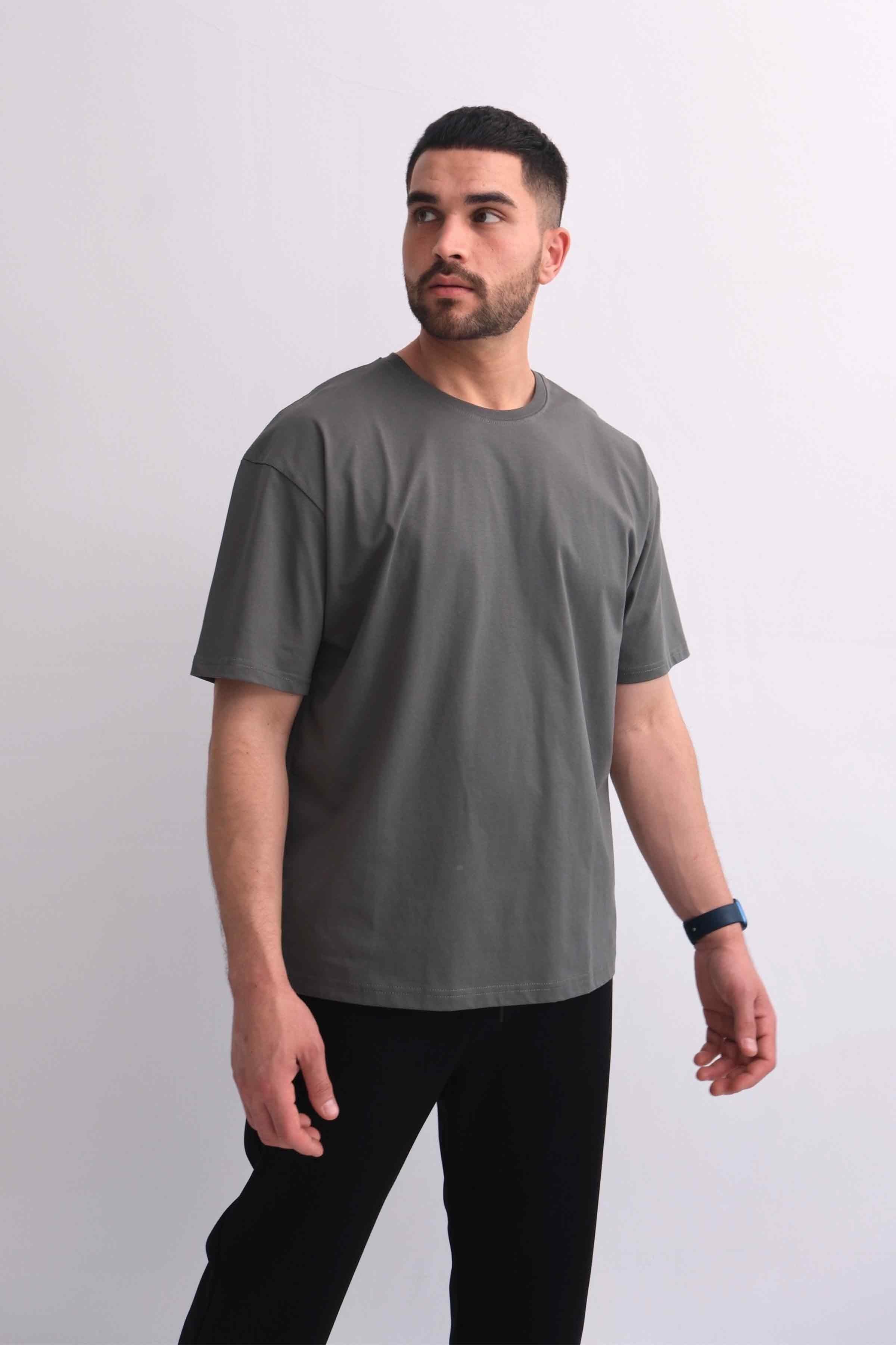 Men’s Oversized 100% Cotton Crew-Neck Basic T-Shirt - Charcoal (Y-25-7750)