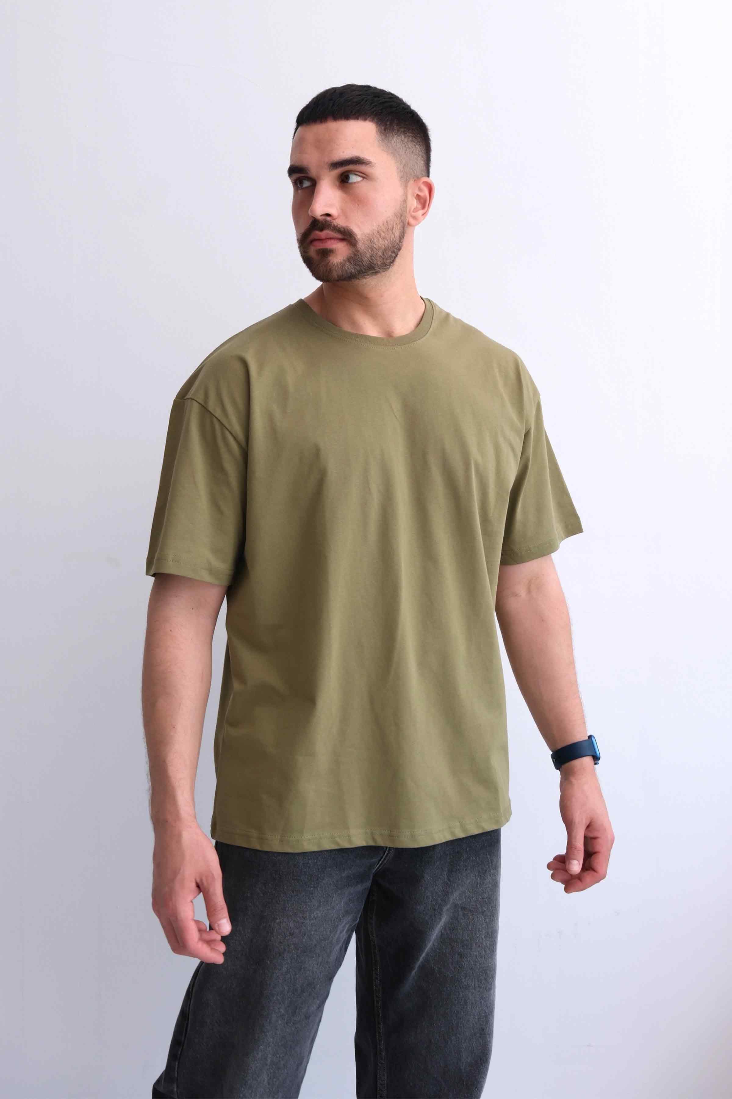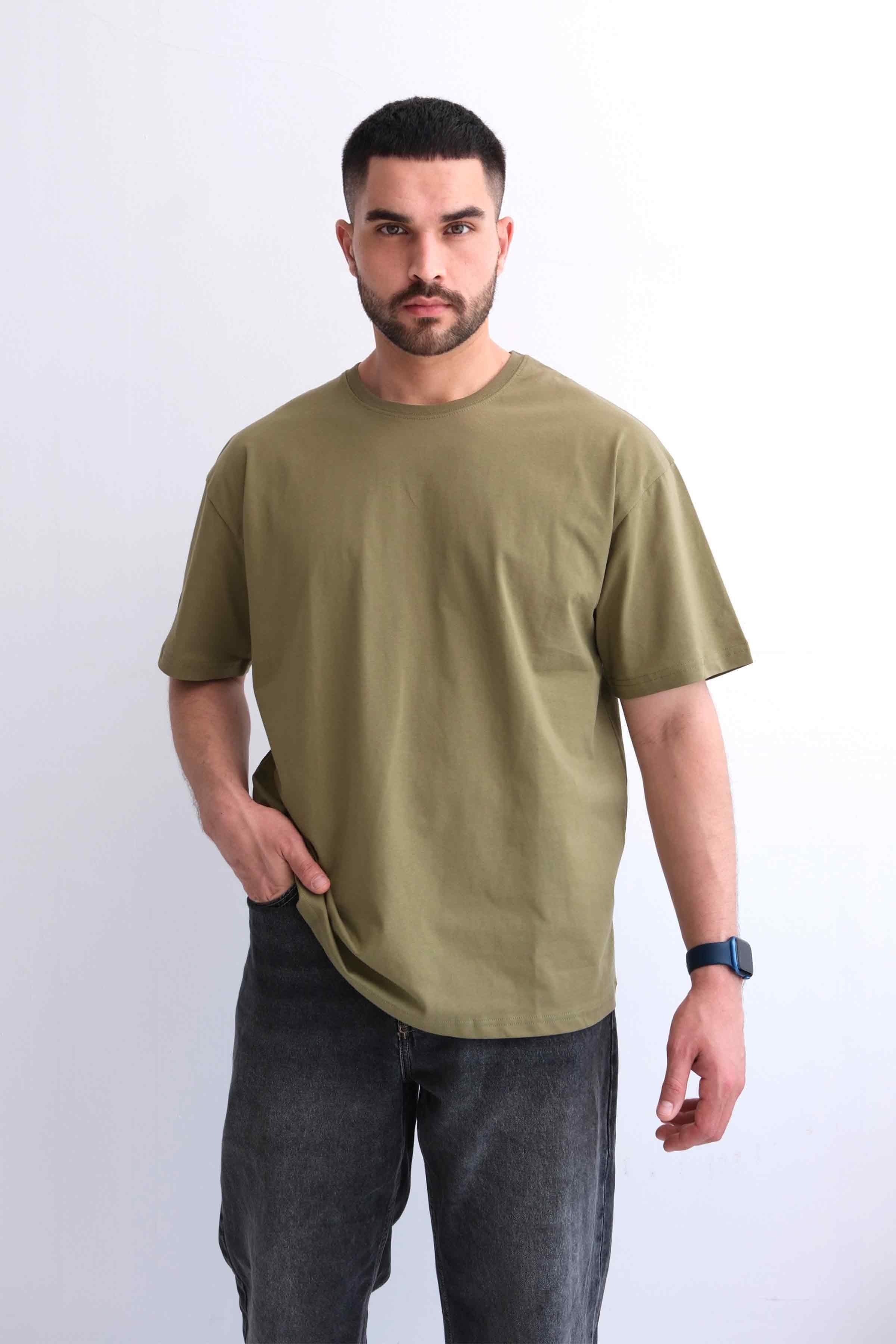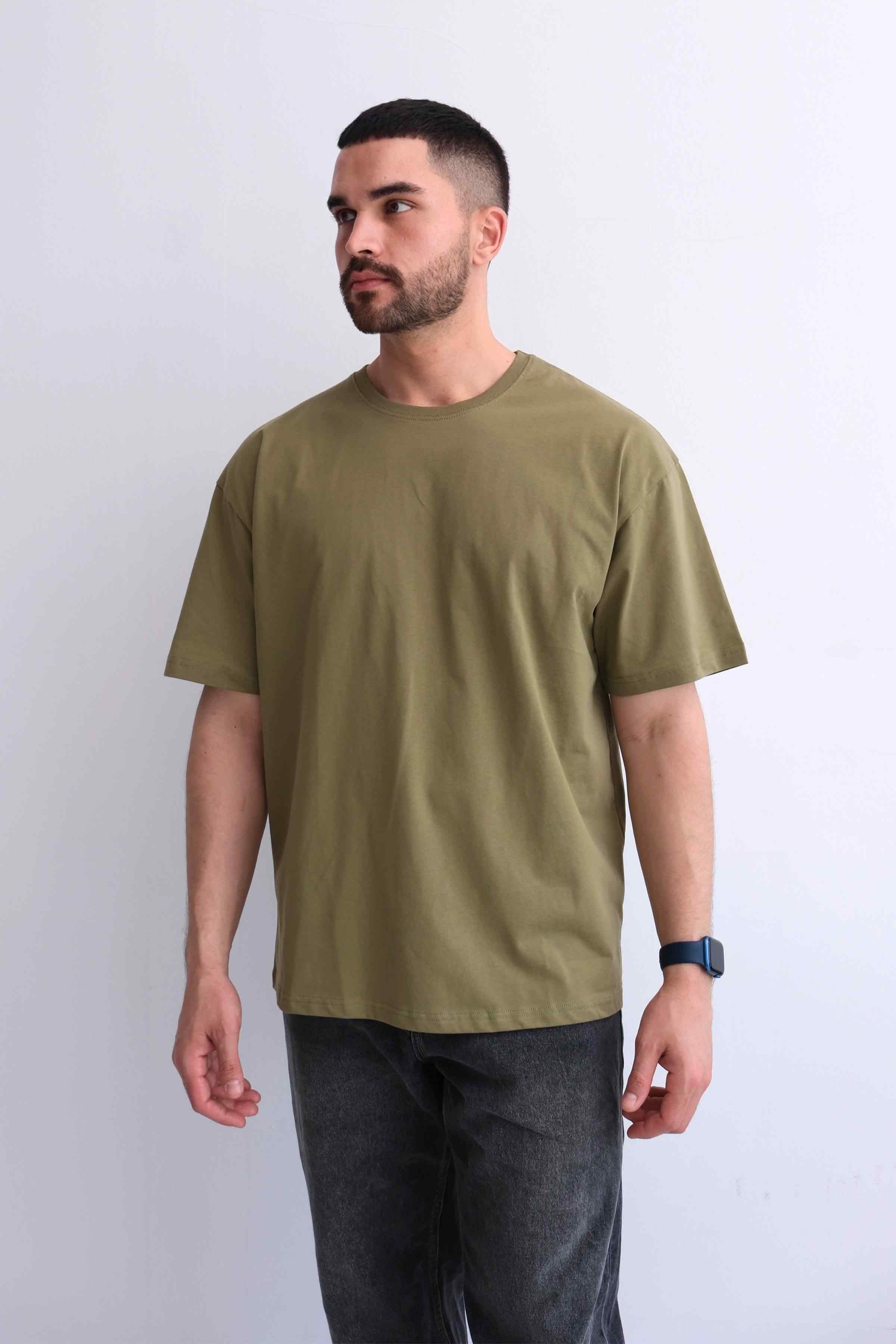 Men’s Oversized 100% Cotton Crew-Neck Basic T-Shirt - Khaki (Y-25-7750)