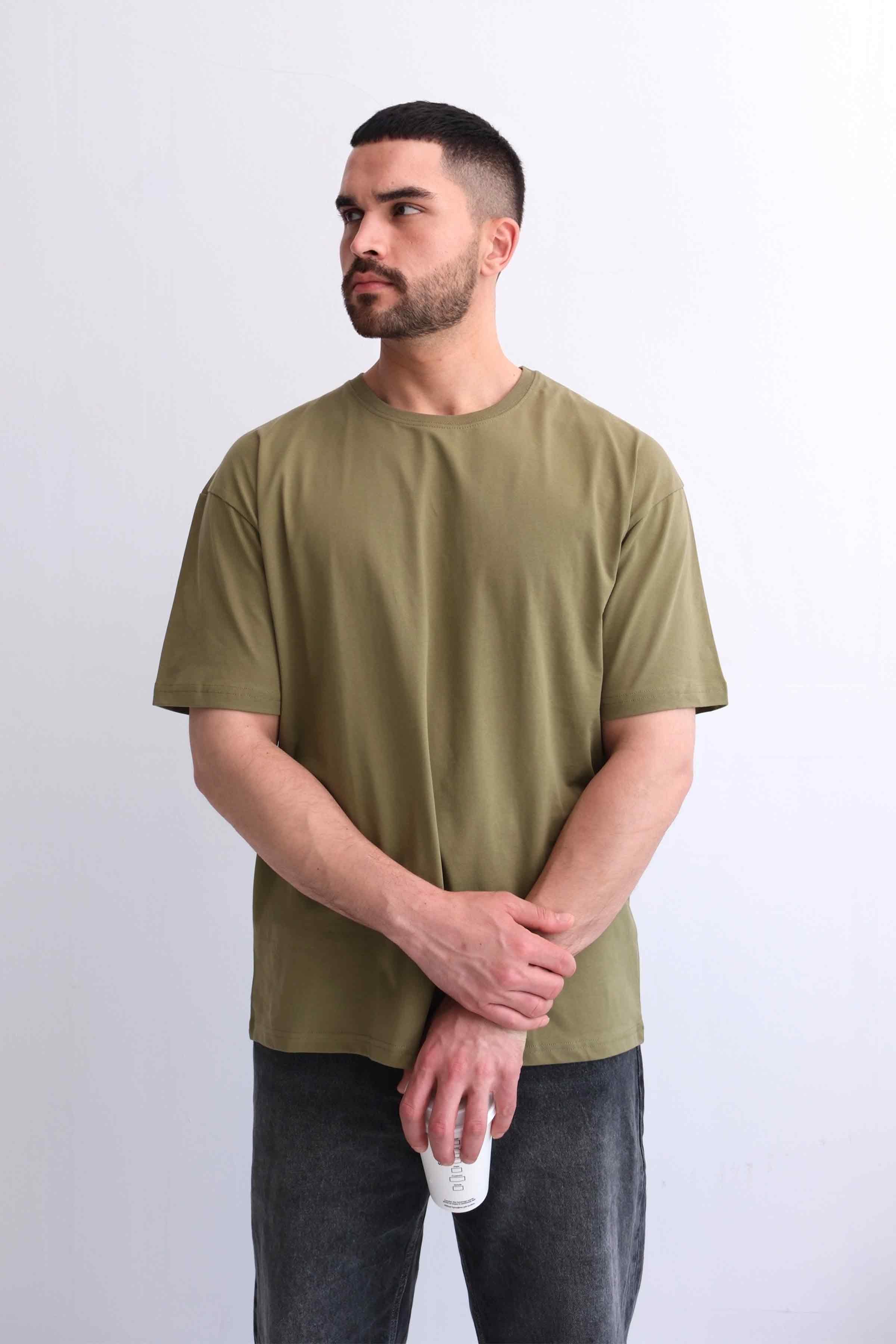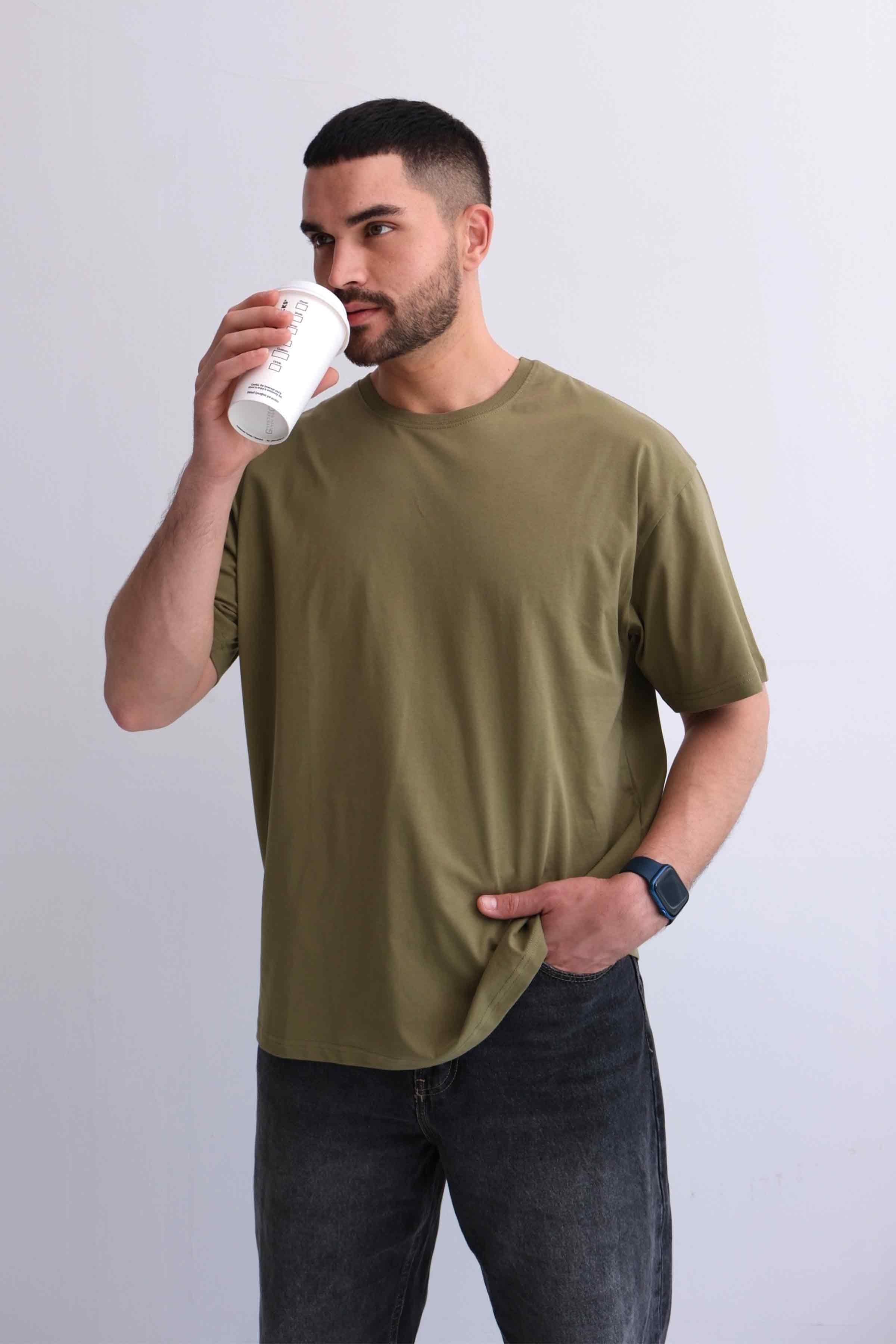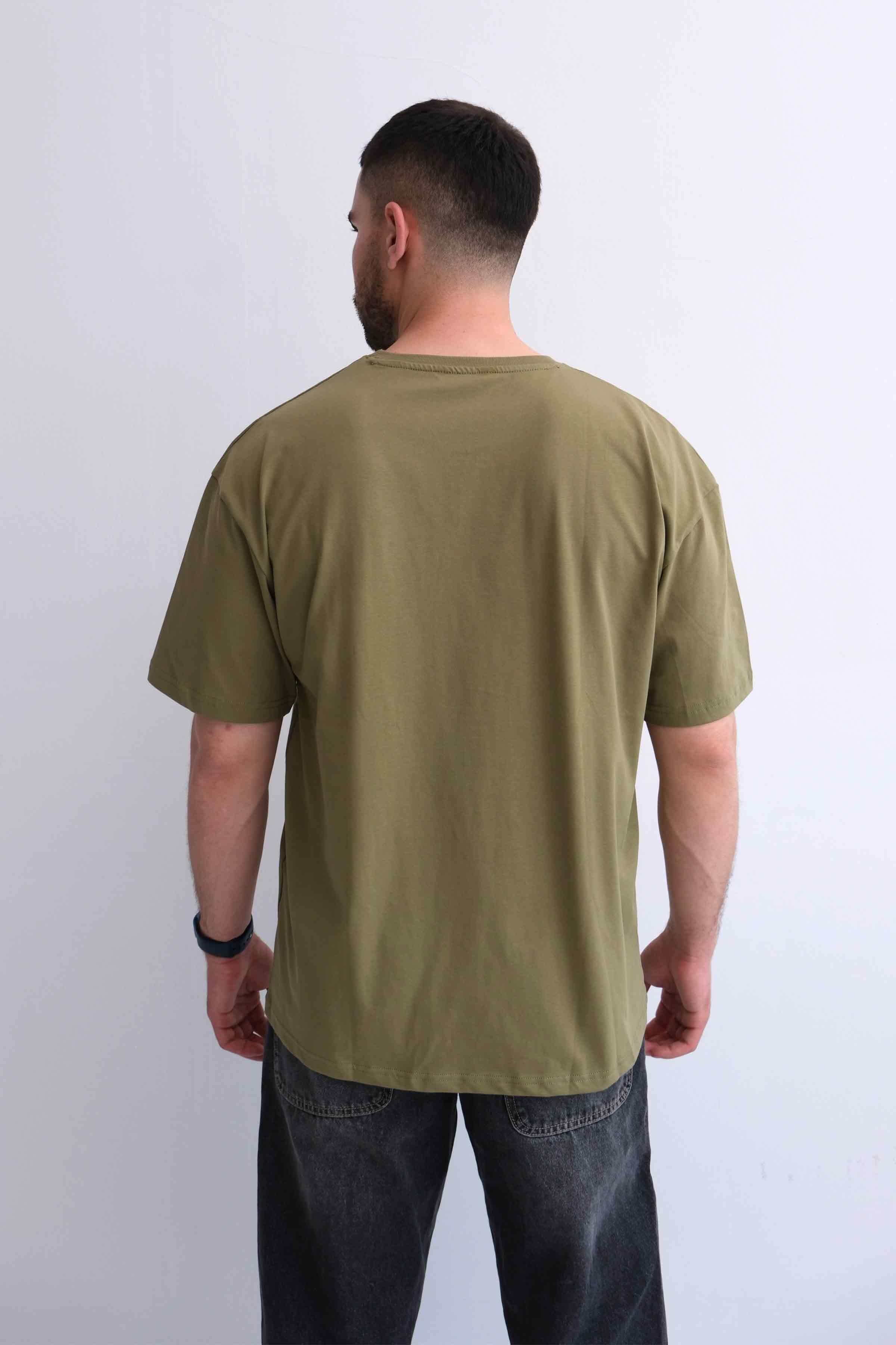 Men’s Oversized 100% Cotton Crew-Neck Basic T-Shirt - Khaki (Y-25-7750)