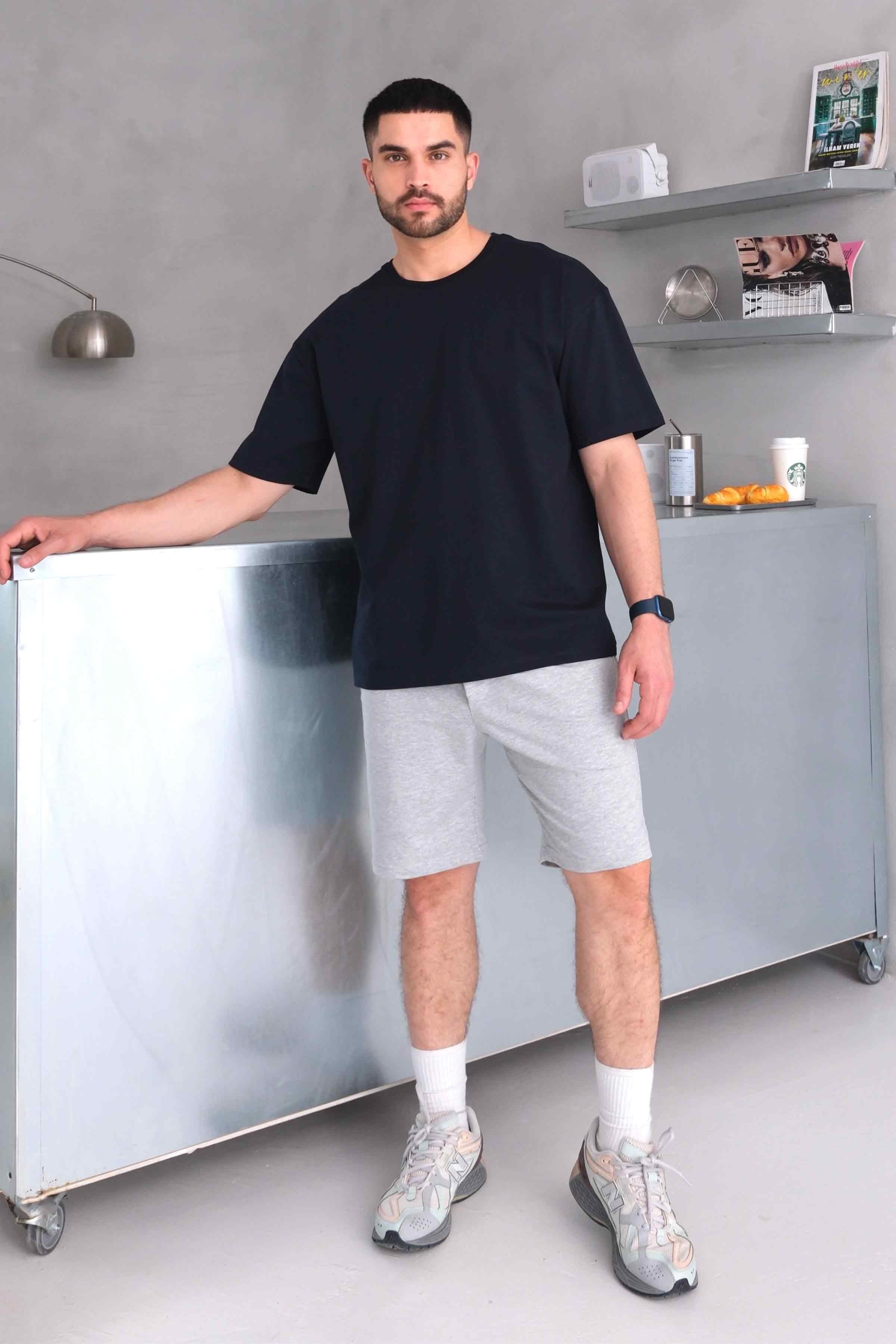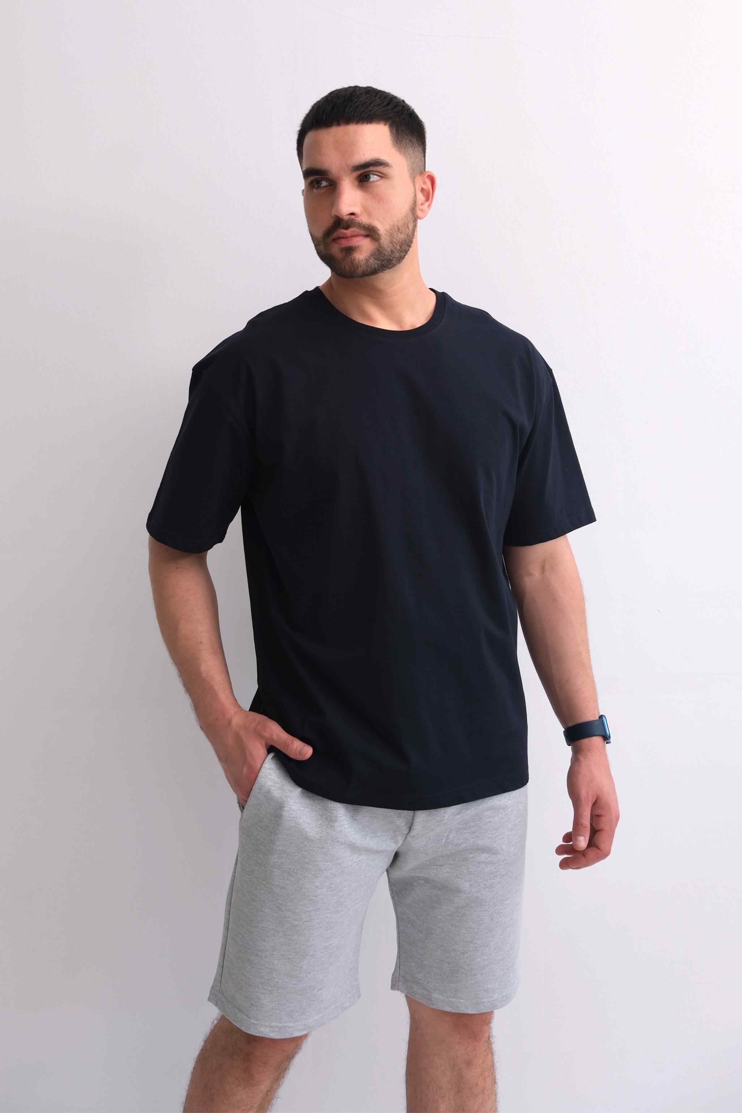 Men’s Oversized 100% Cotton Crew-Neck Basic T-Shirt - Navy (Y-25-7750)