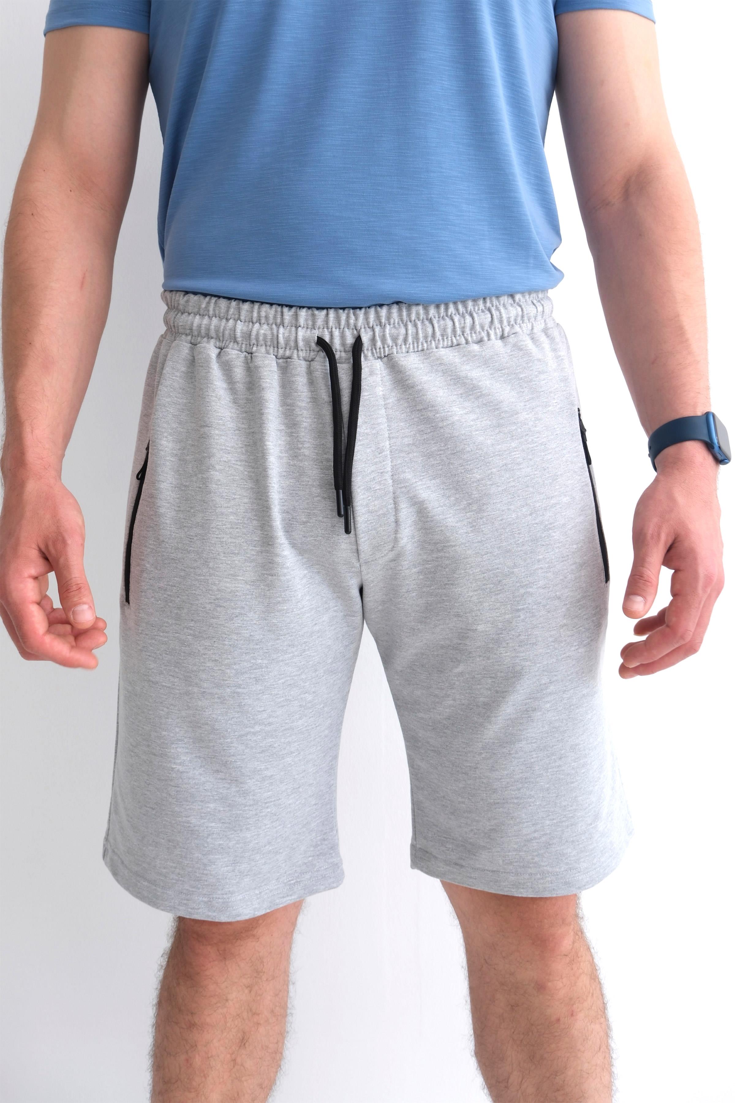 Men’s Relax Fit Cotton Shorts, Elastic Waist, Zip Pockets - Heather Grey