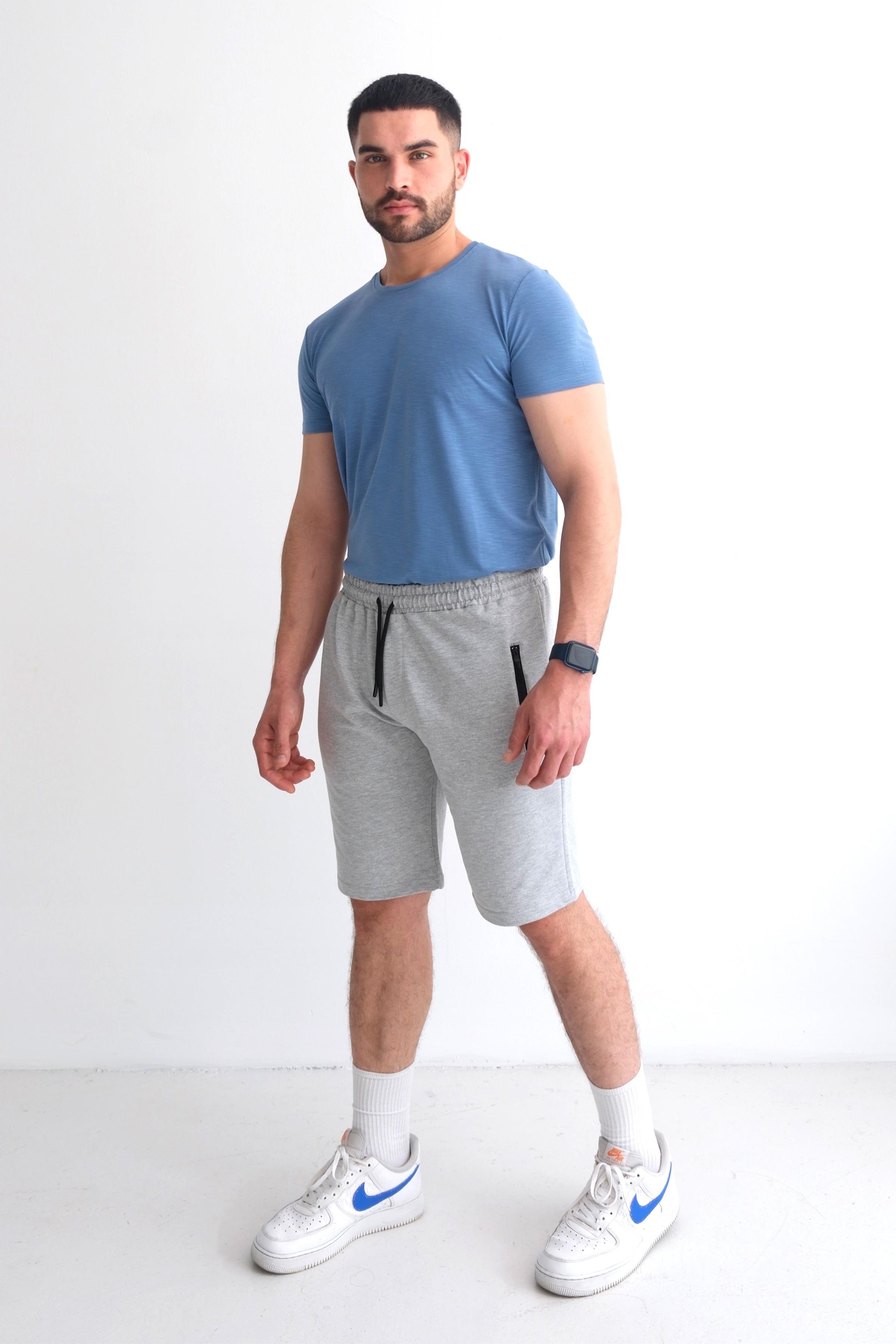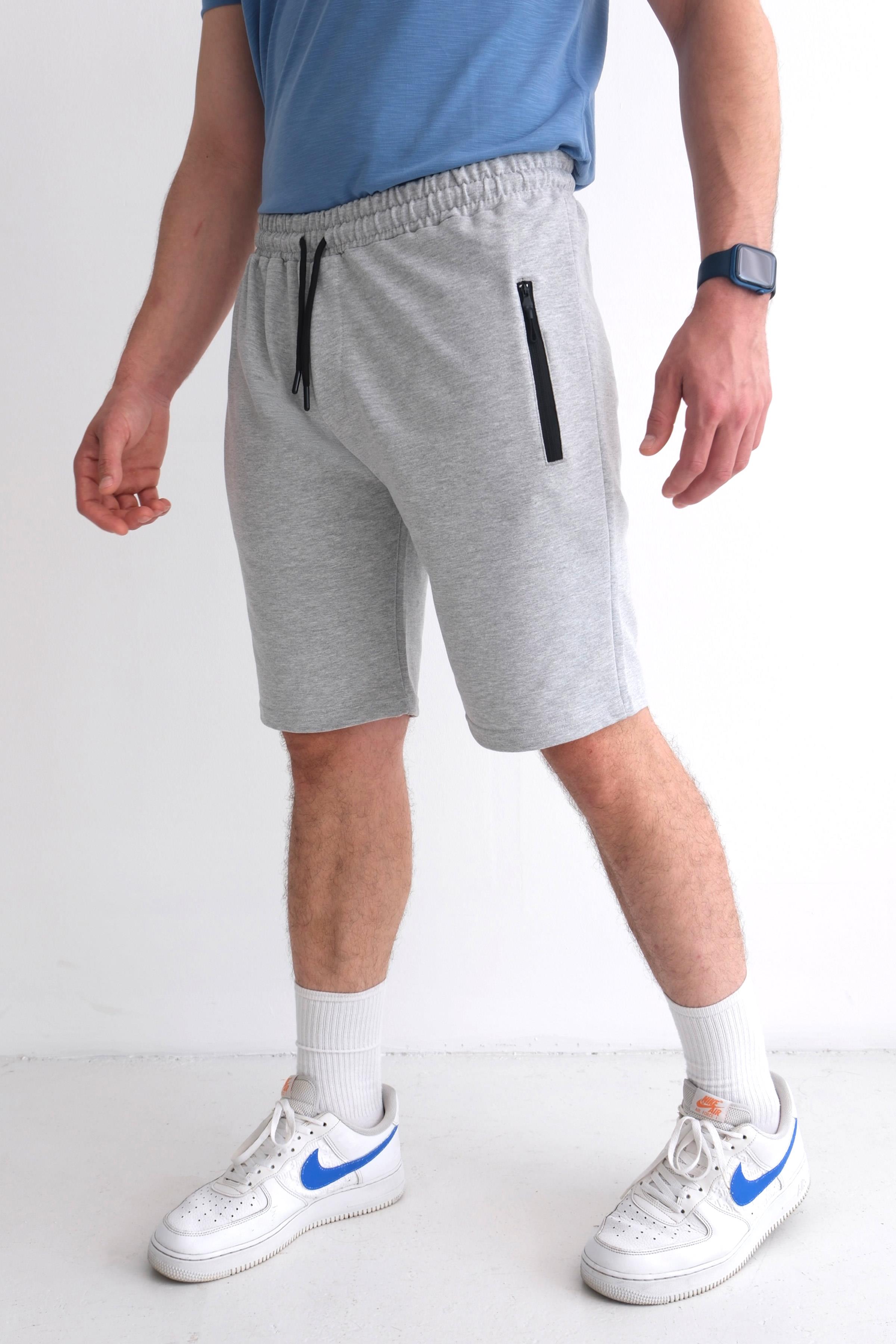 Men’s Relax Fit Cotton Shorts, Elastic Waist, Zip Pockets - Heather Grey (Y-25-7742)