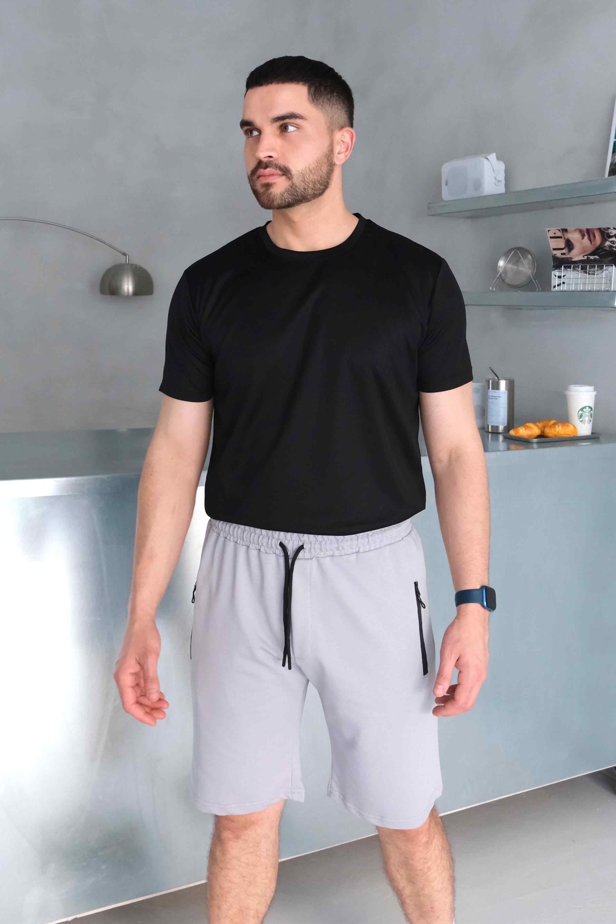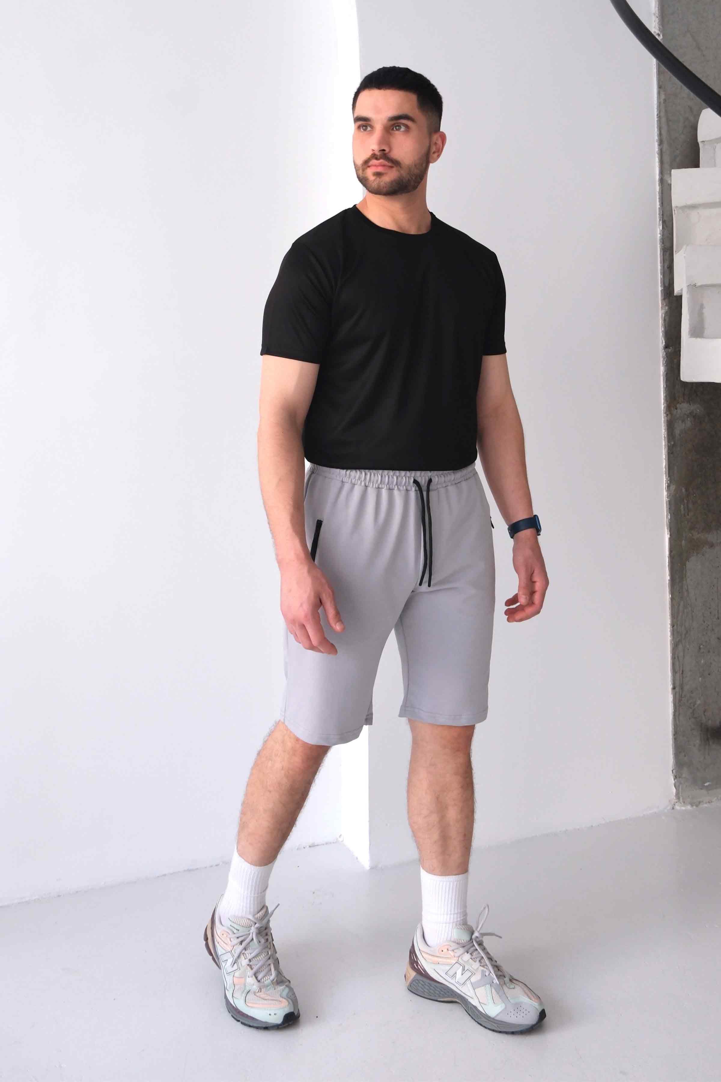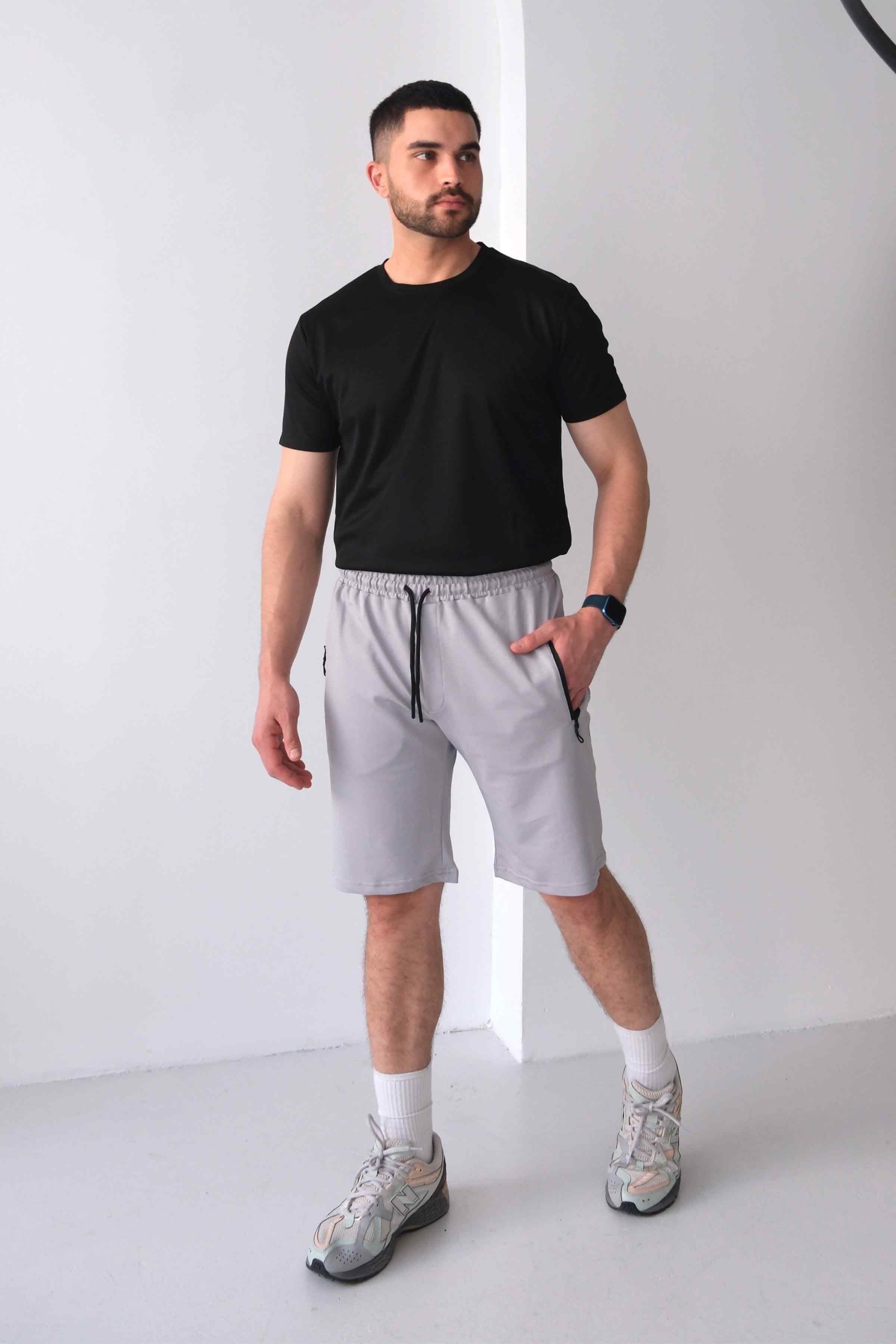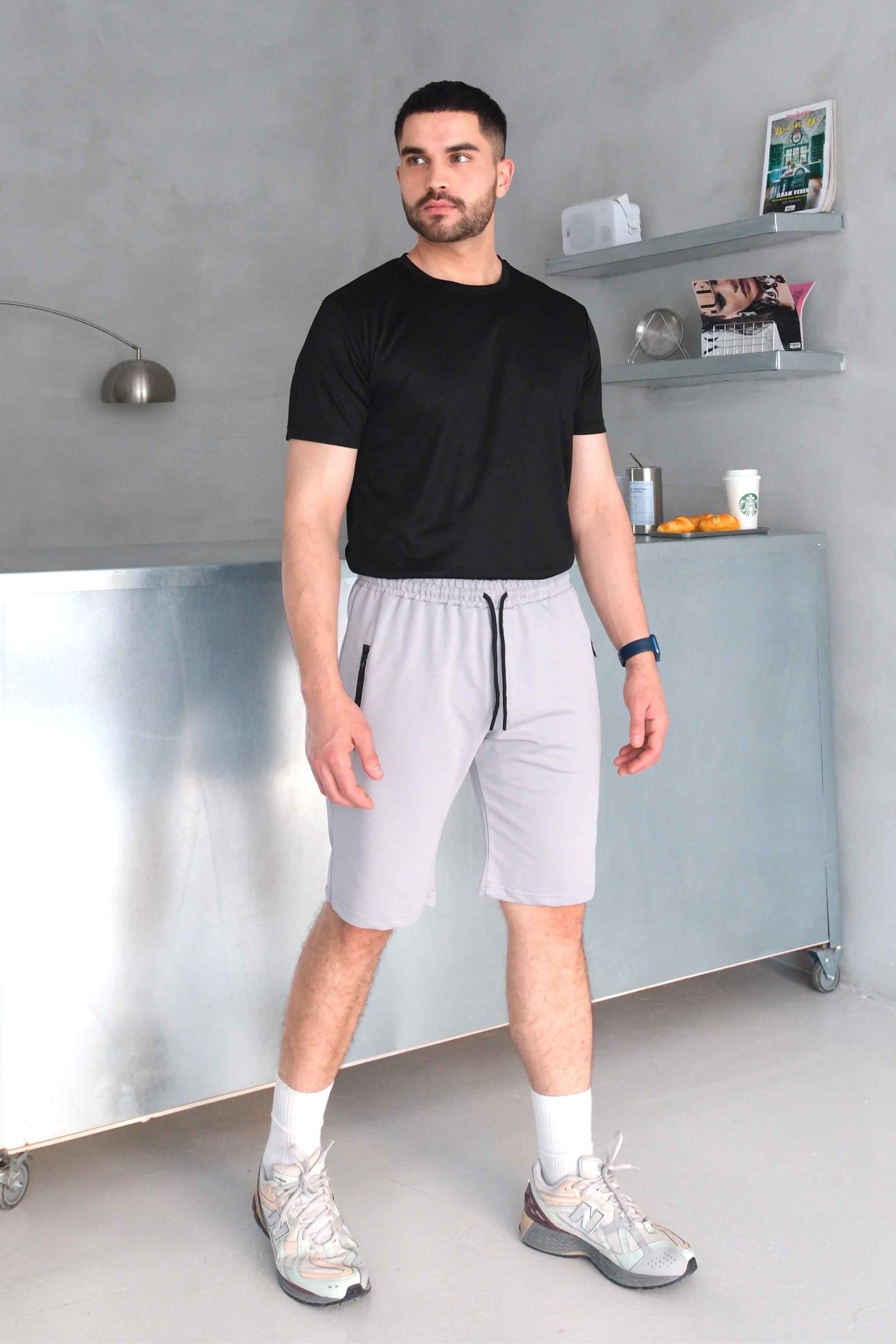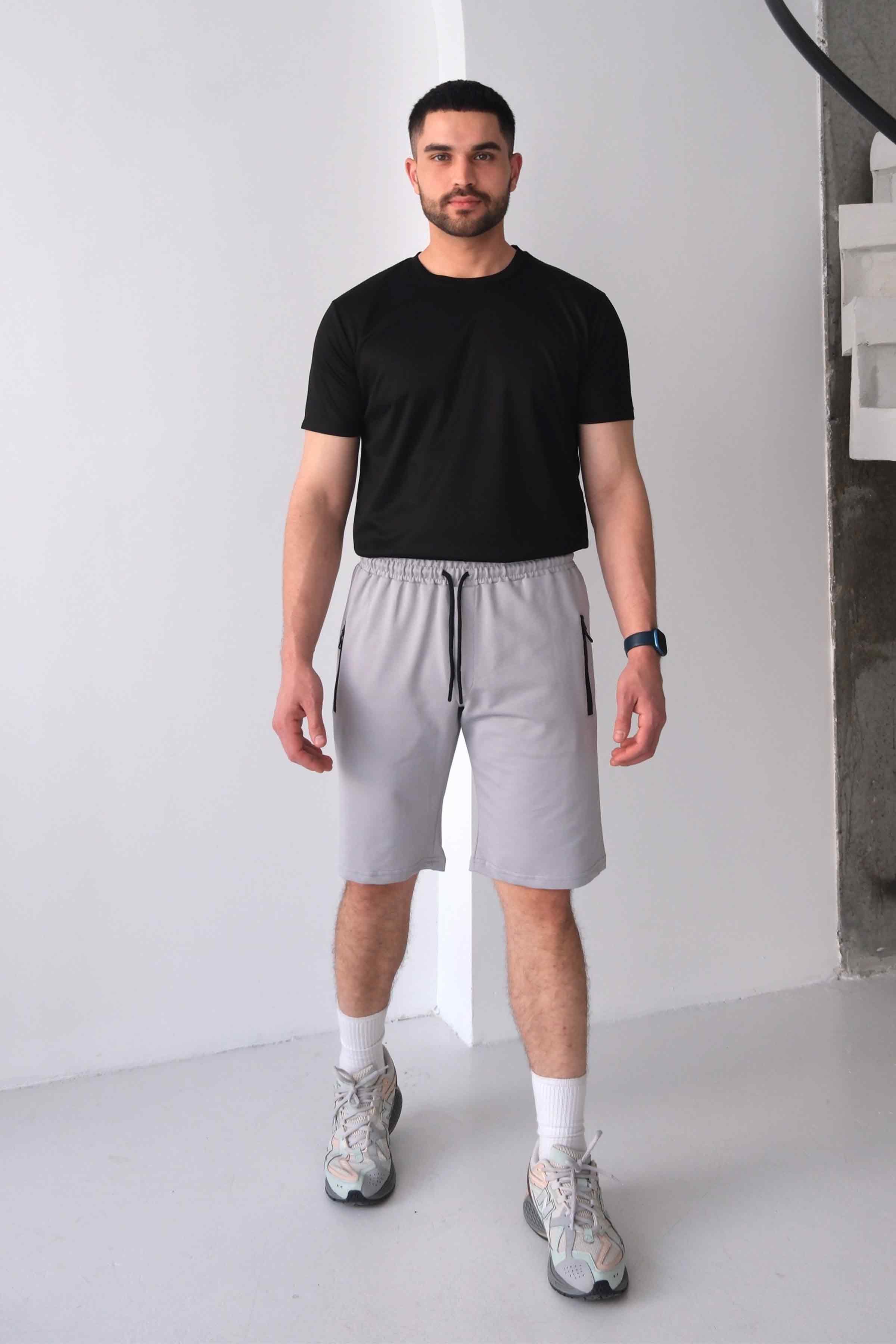Men’s Relax Fit Cotton Shorts, Elastic Waist, Zip Pockets - Grey (Y-25-7742)