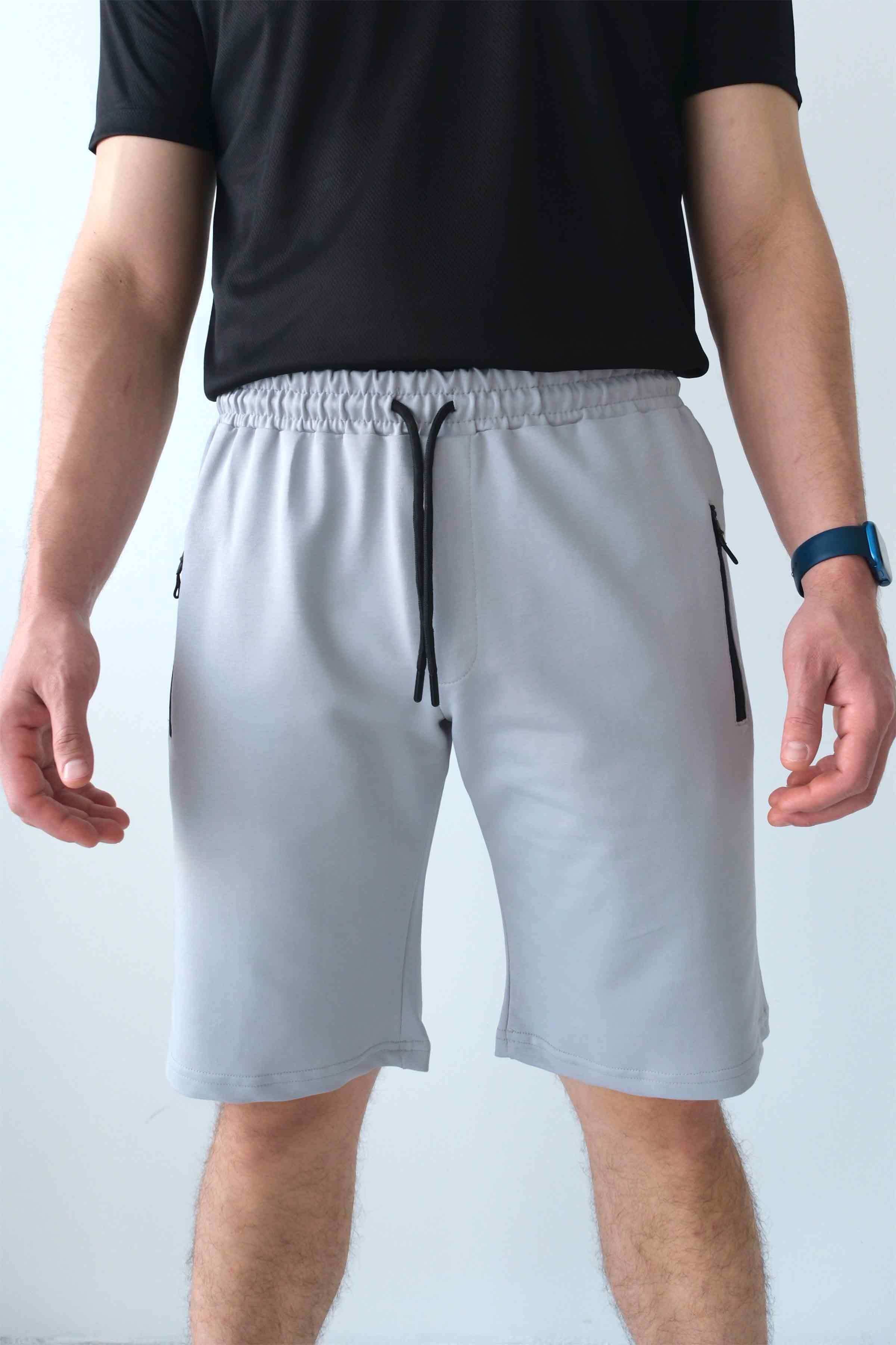 Men’s Relax Fit Cotton Shorts, Elastic Waist, Zip Pockets - Grey