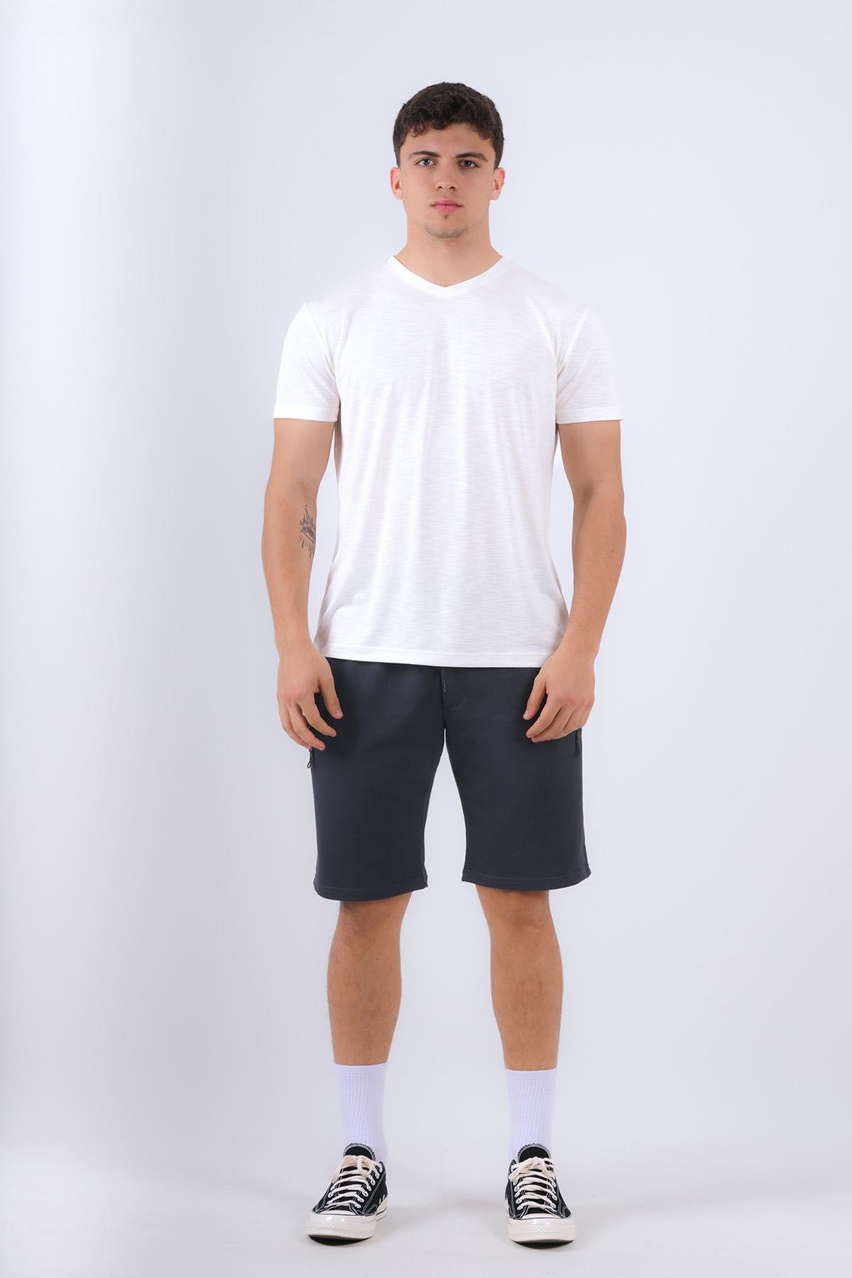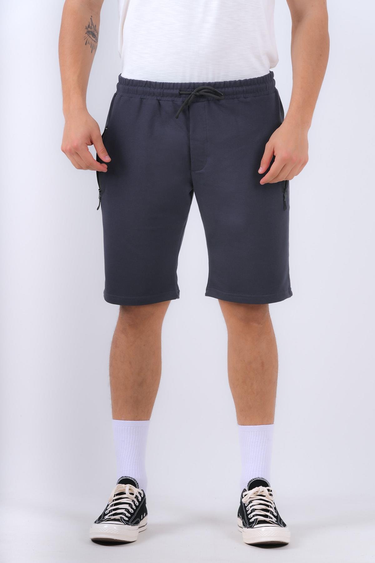 Erkek Rahat Kalıp Pamuklu Beli Lastikli Fermuar Cepli Şort