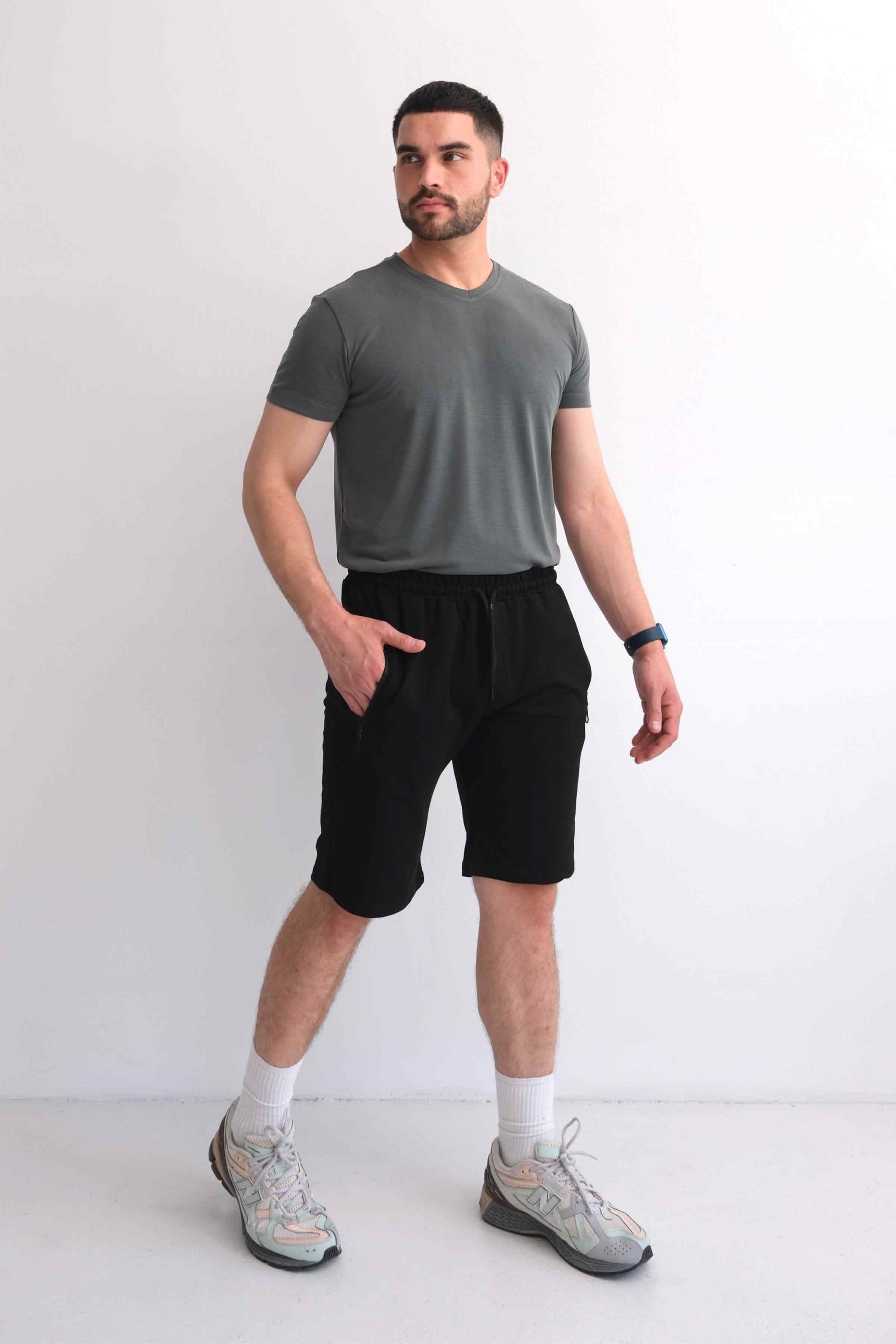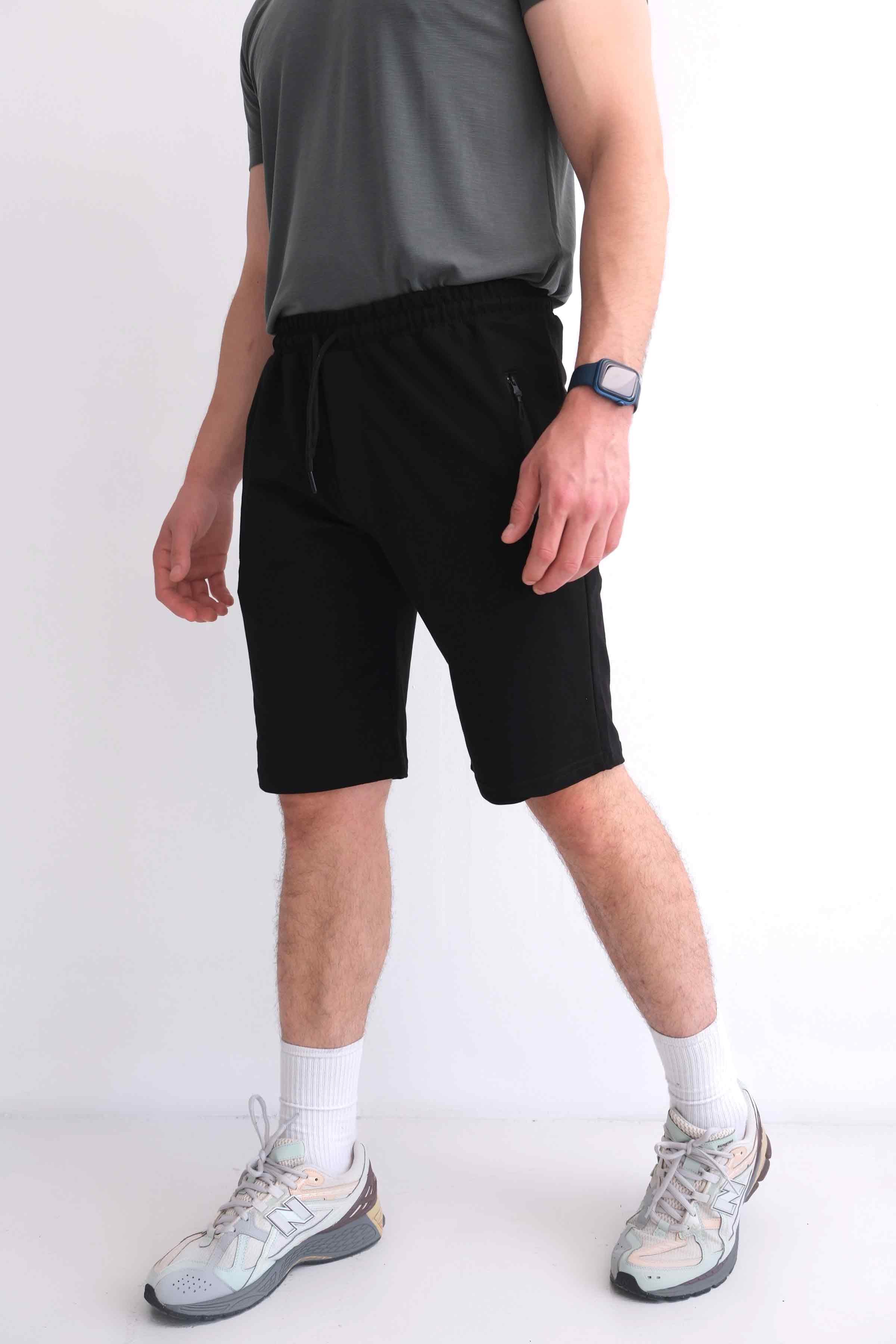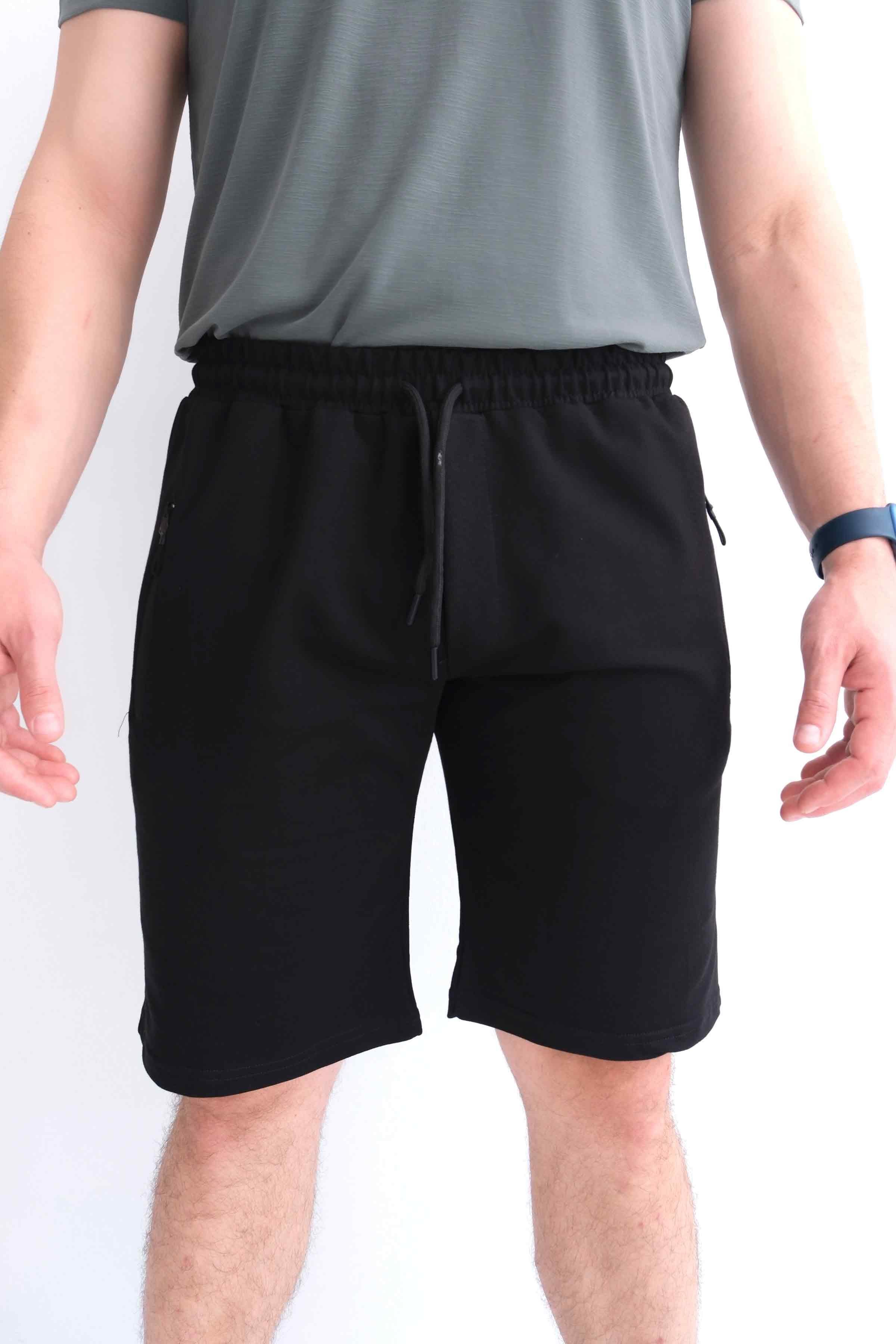 Men’s Relax Fit Cotton Shorts, Elastic Waist, Zip Pockets - Black (Y-25-7742)
