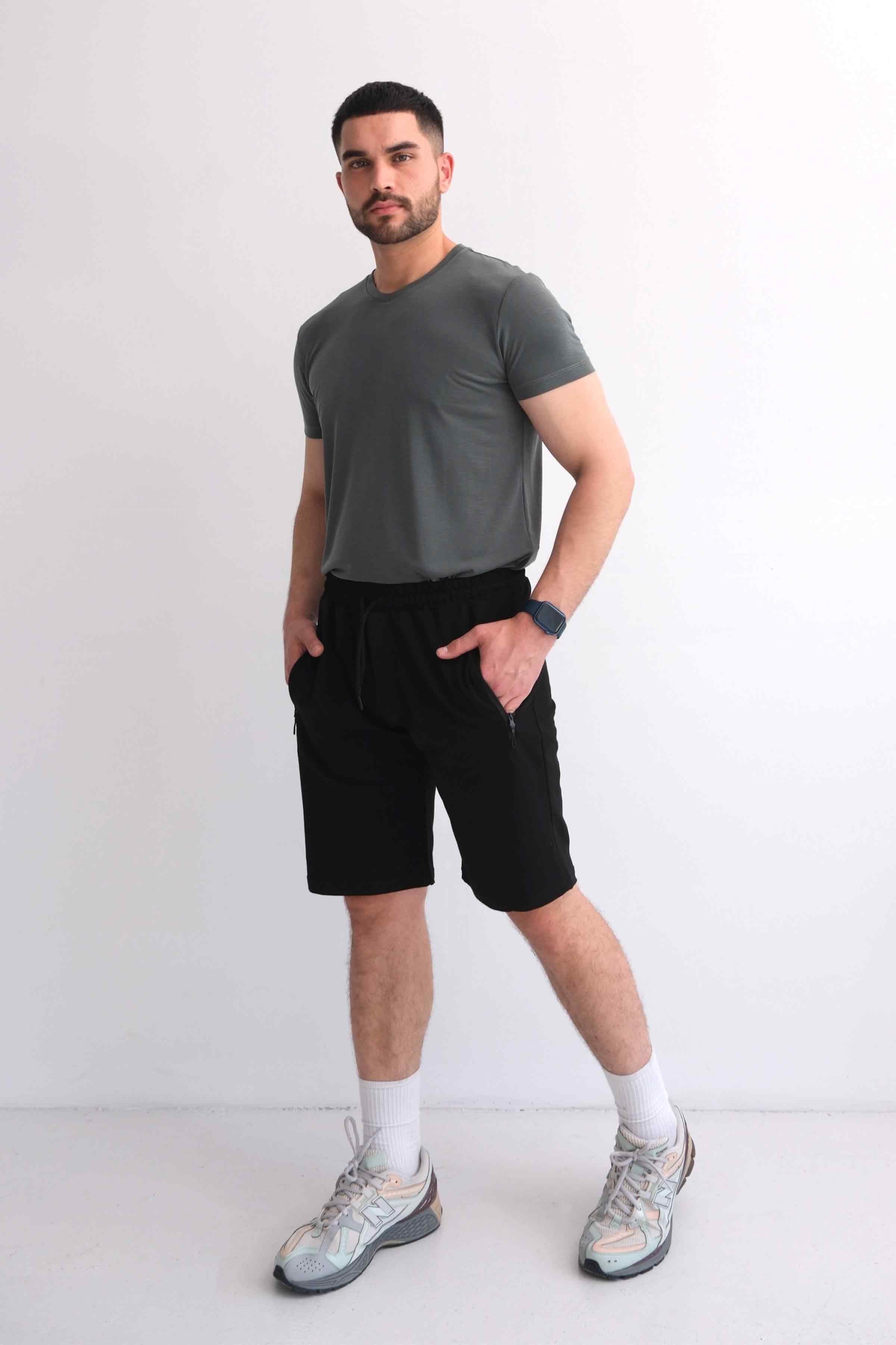 Erkek Rahat Kalıp Pamuklu Beli Lastikli Fermuar Cepli Şort