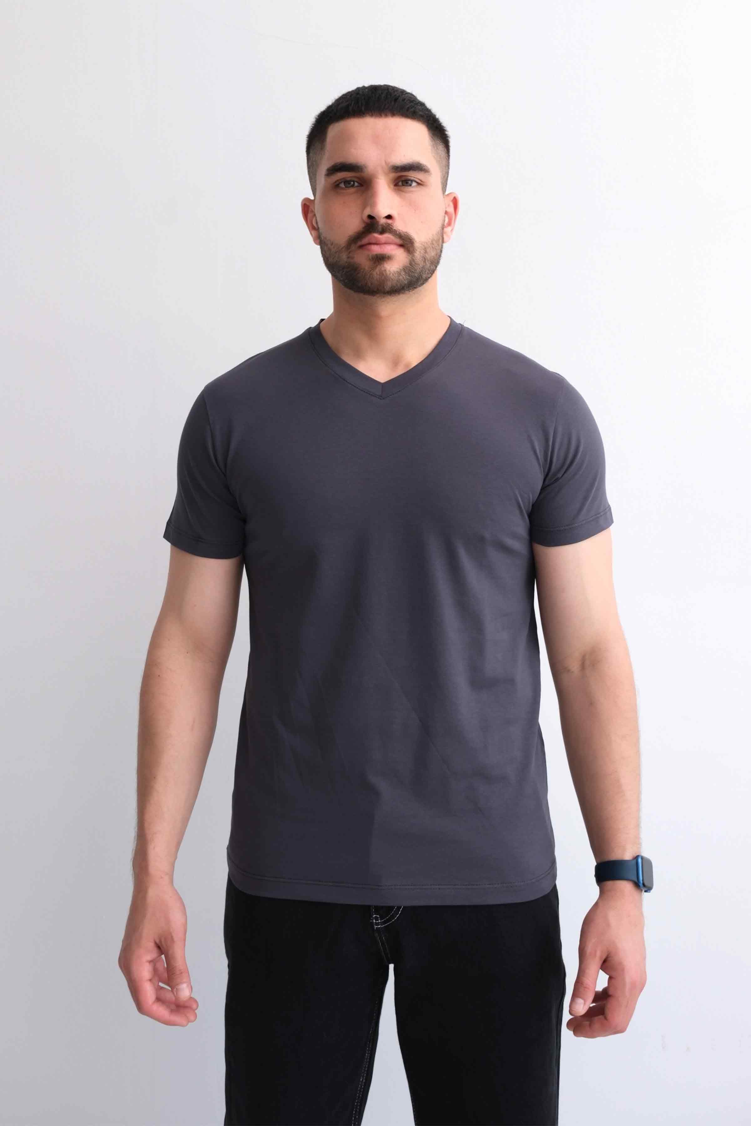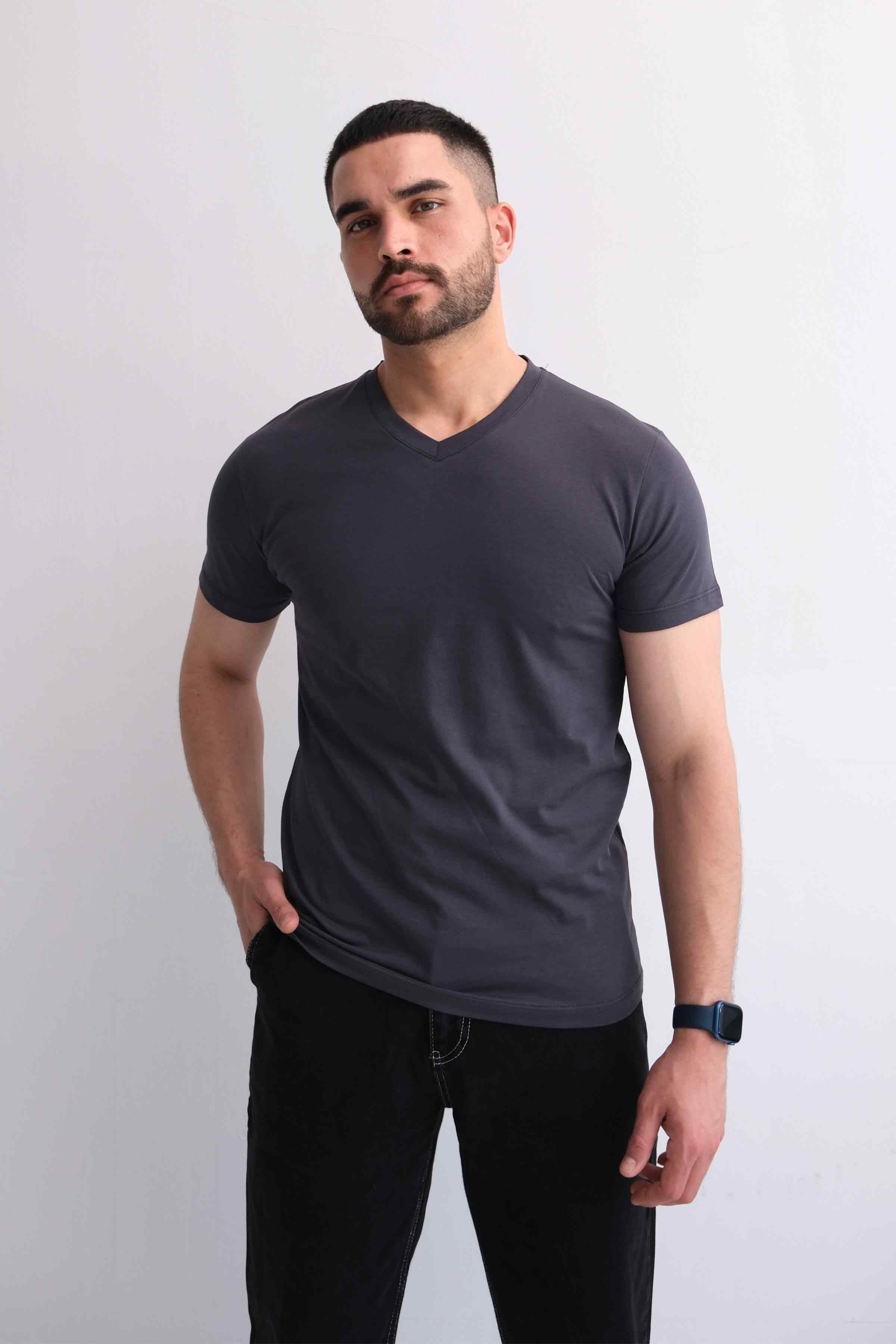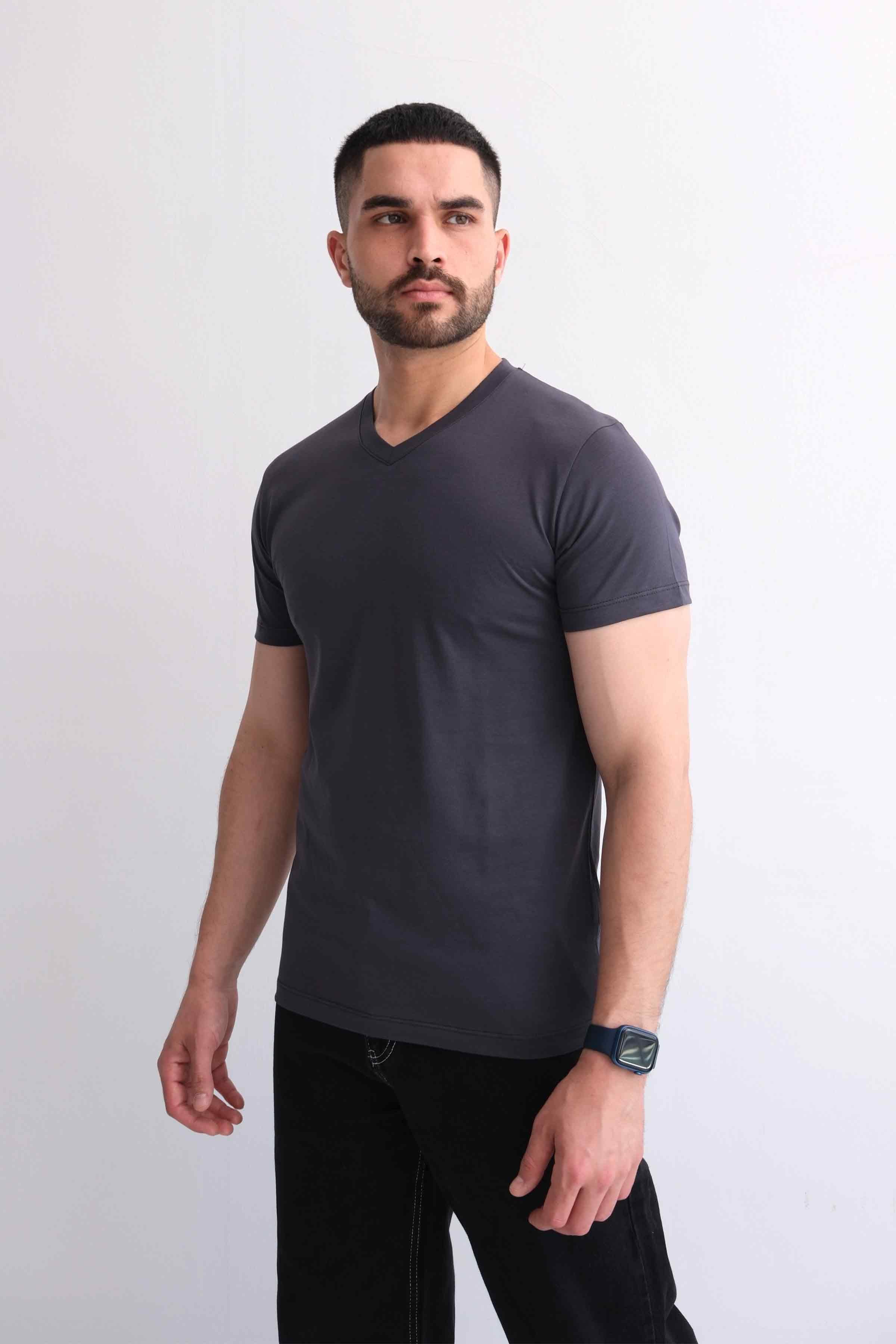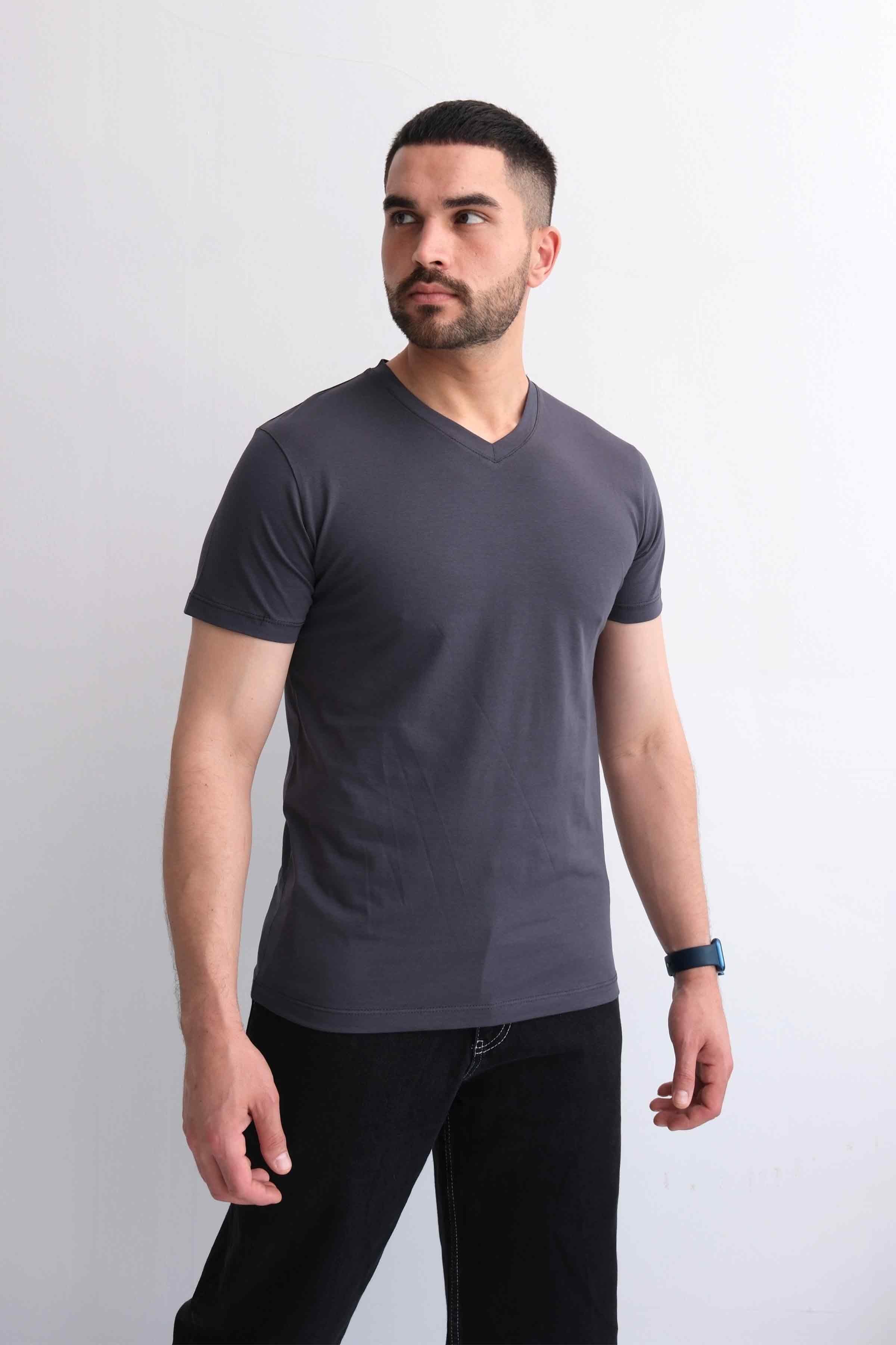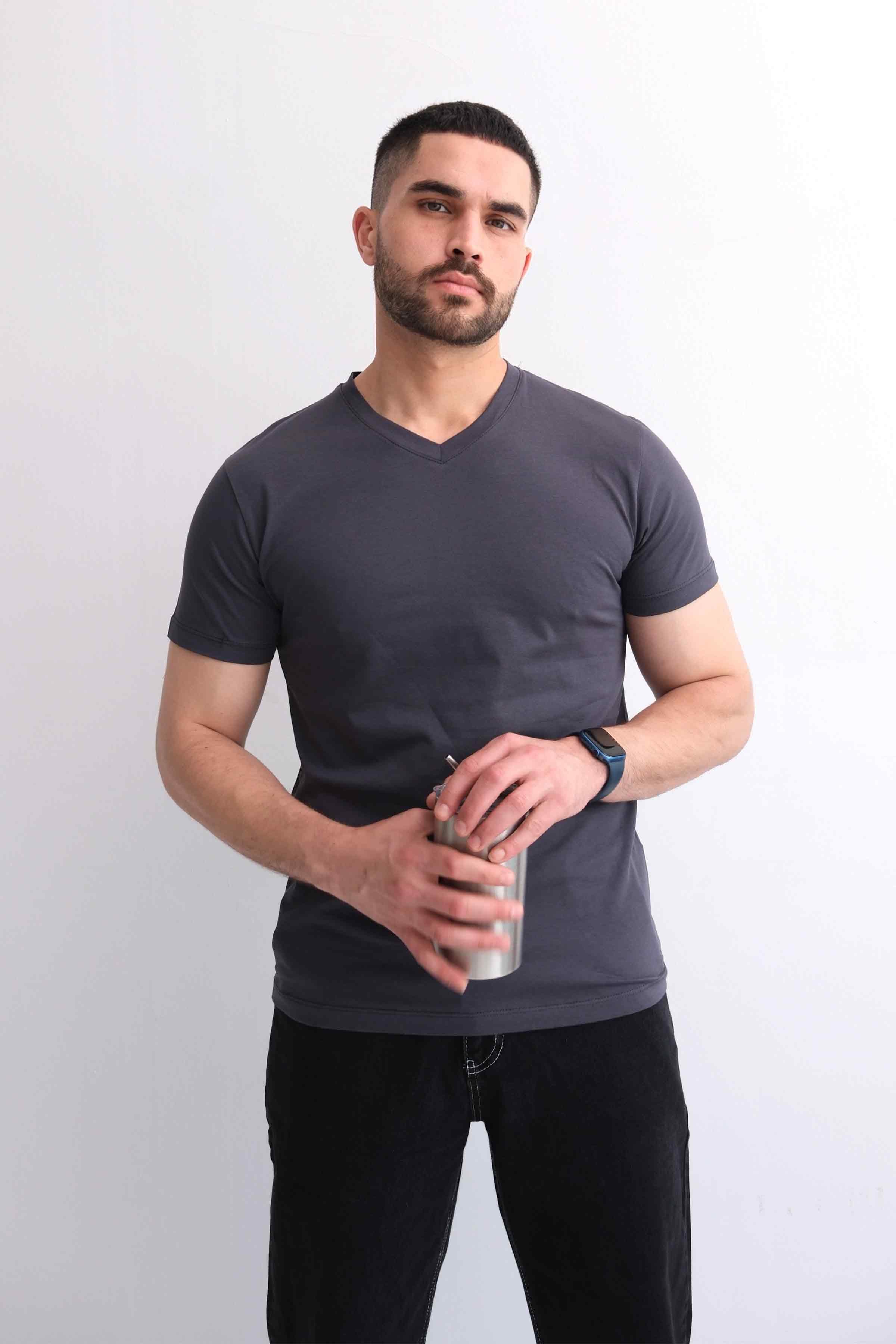 Men’s V-Neck Plain 100% Cotton Basic T-Shirt – Anthracite (Y-25-7765)