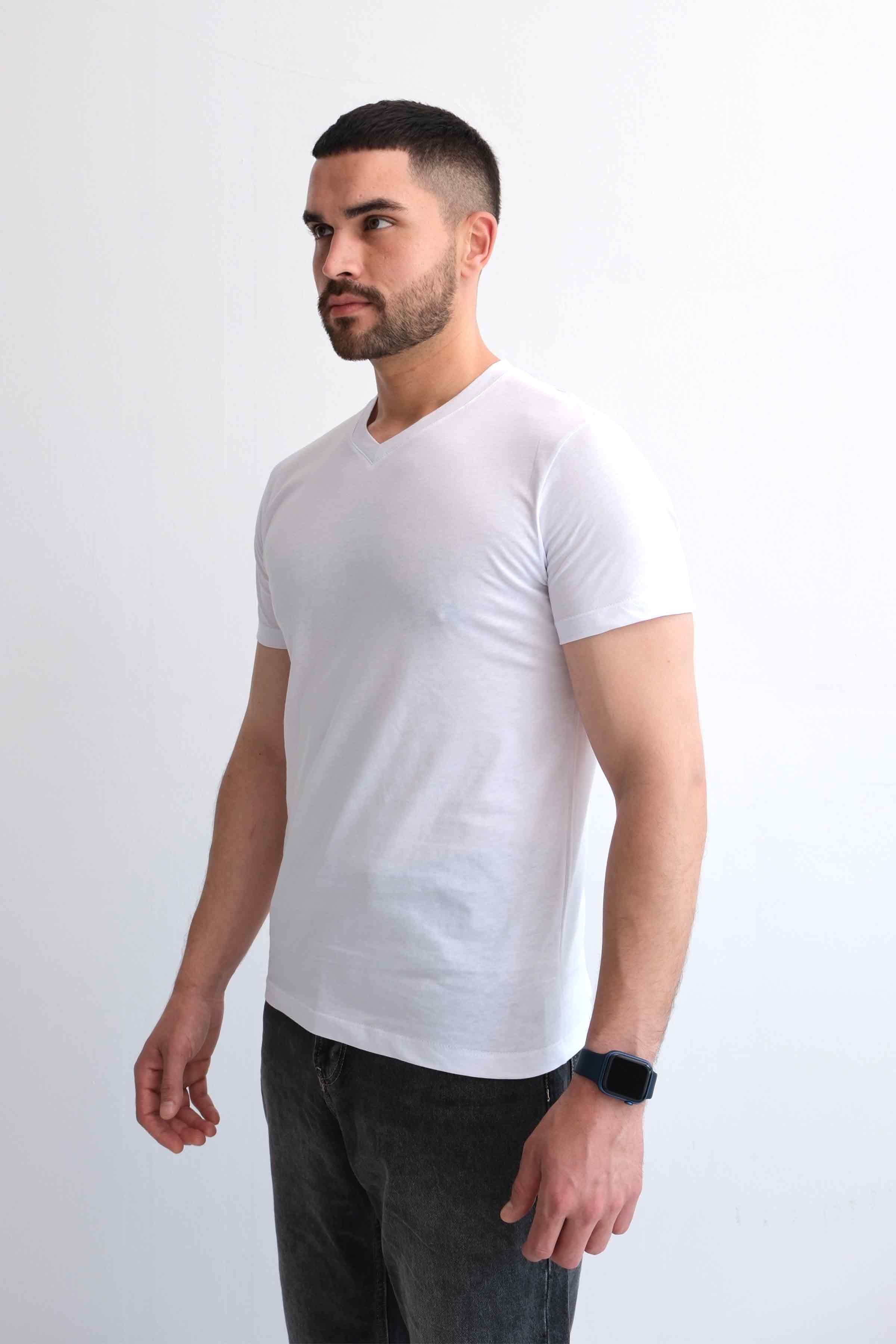 Gardırobunuzun vazgeçilmez parçalarından olacak erkek V yaka tişört, sade ve şık tasarımıyla her kombine kolayca uyum sağlar. %100 pamuk kumaşı sayesinde gün boyu rahatlık sunan bu pamuklu erkek tişört, nefes alabilen yapısıyla yaz-kış kullanılabilir.