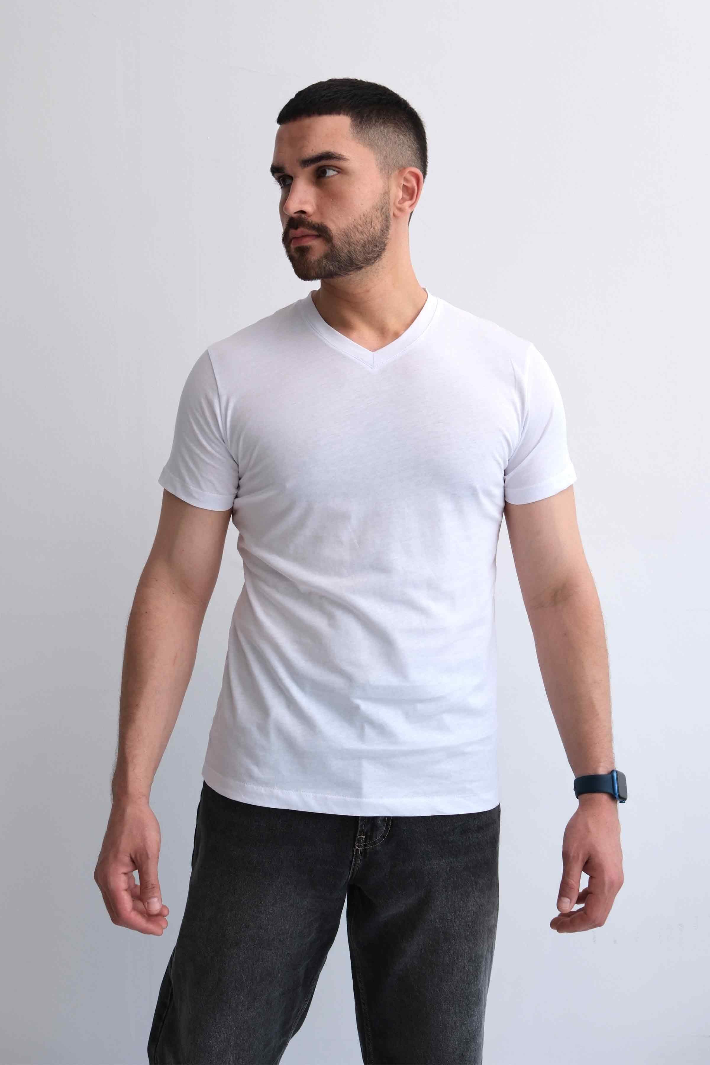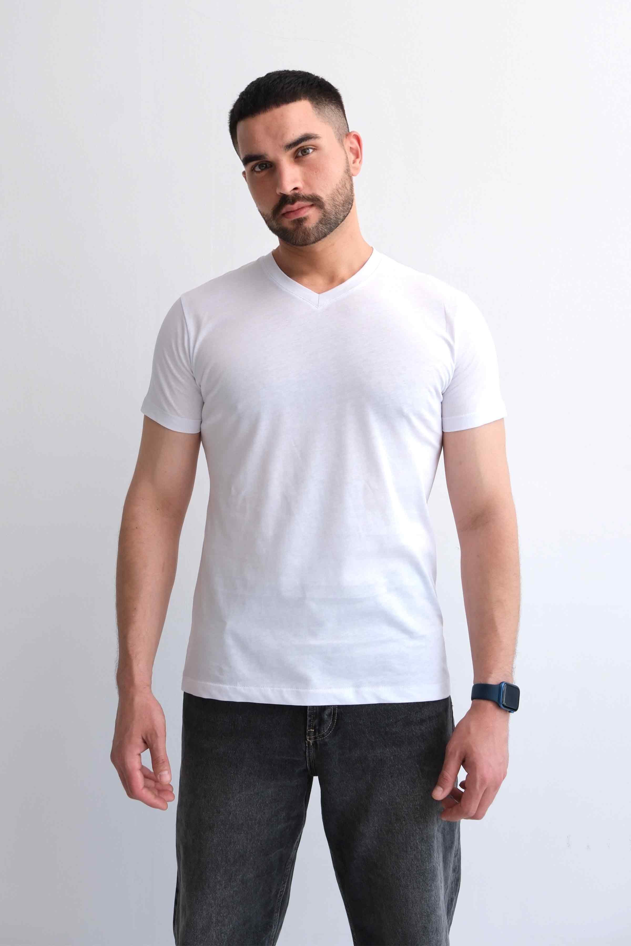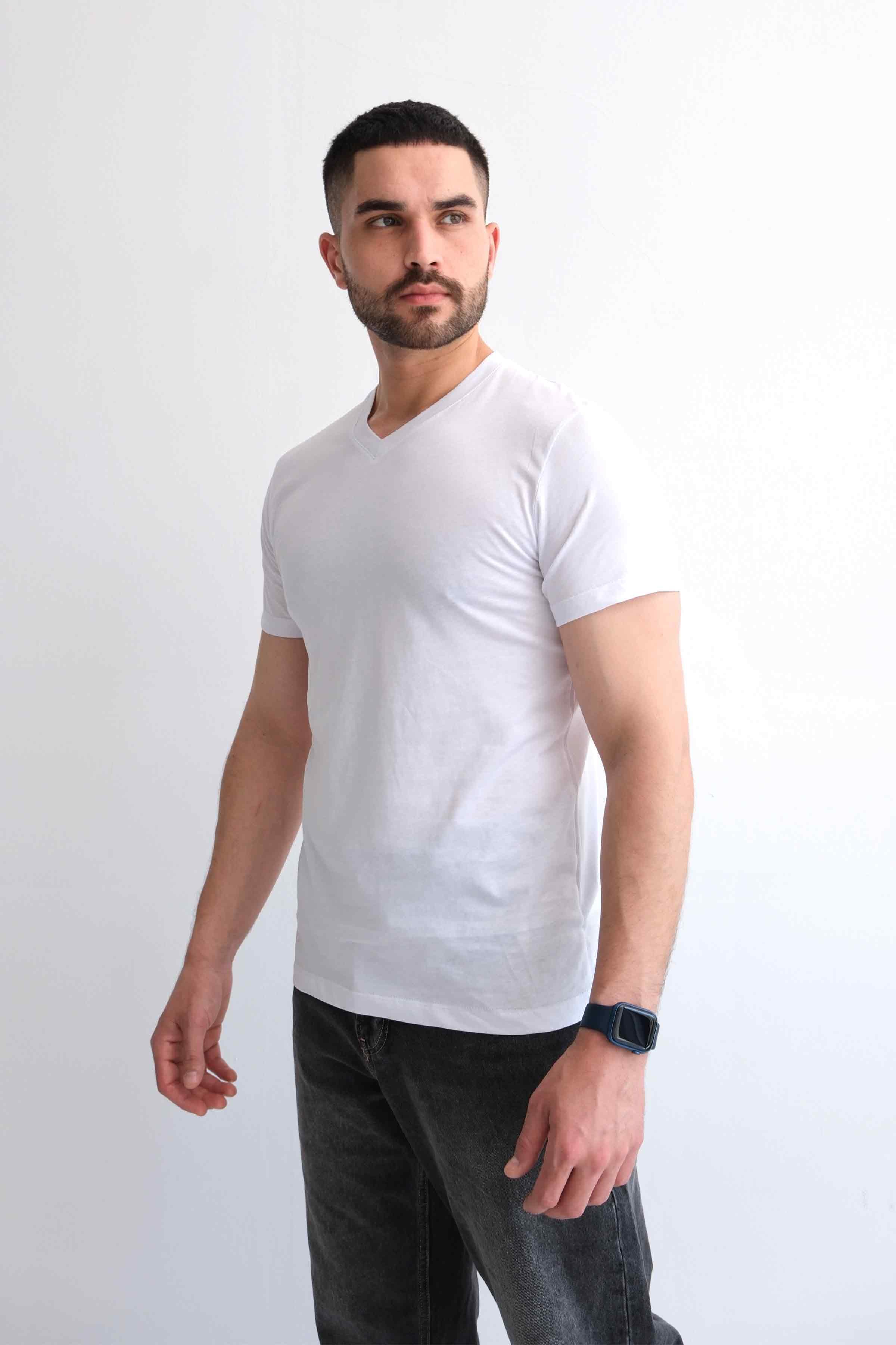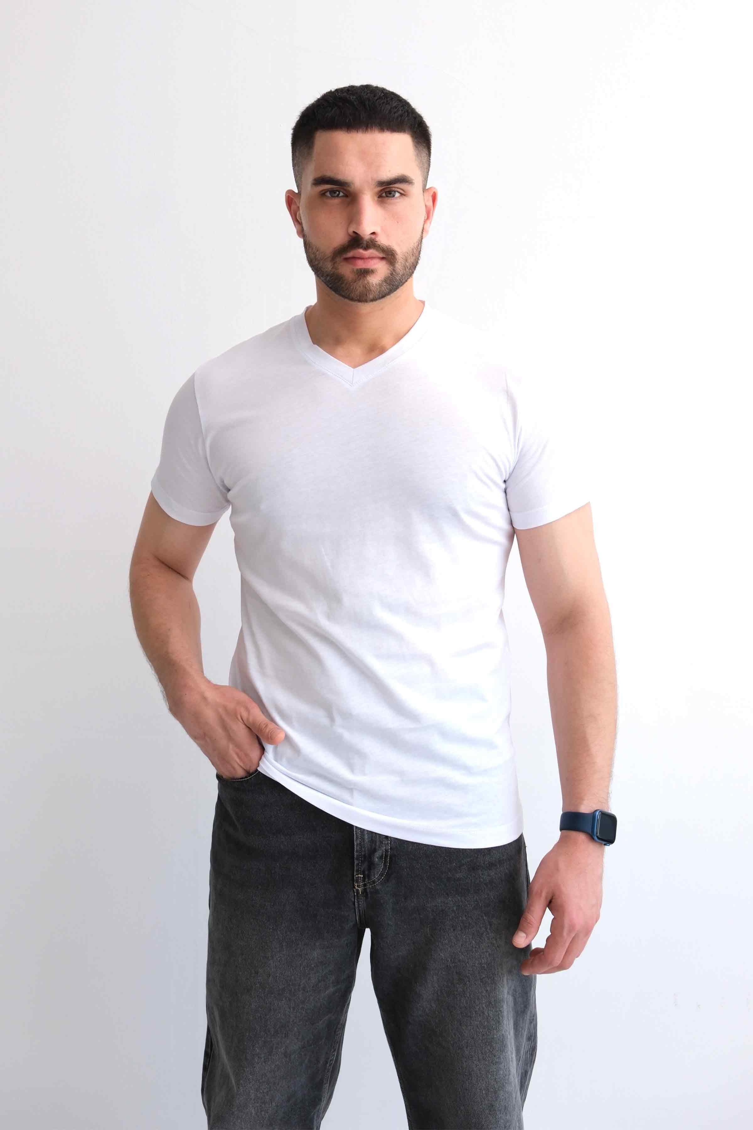 Men’s V-Neck Plain 100% Cotton Basic T-Shirt – White