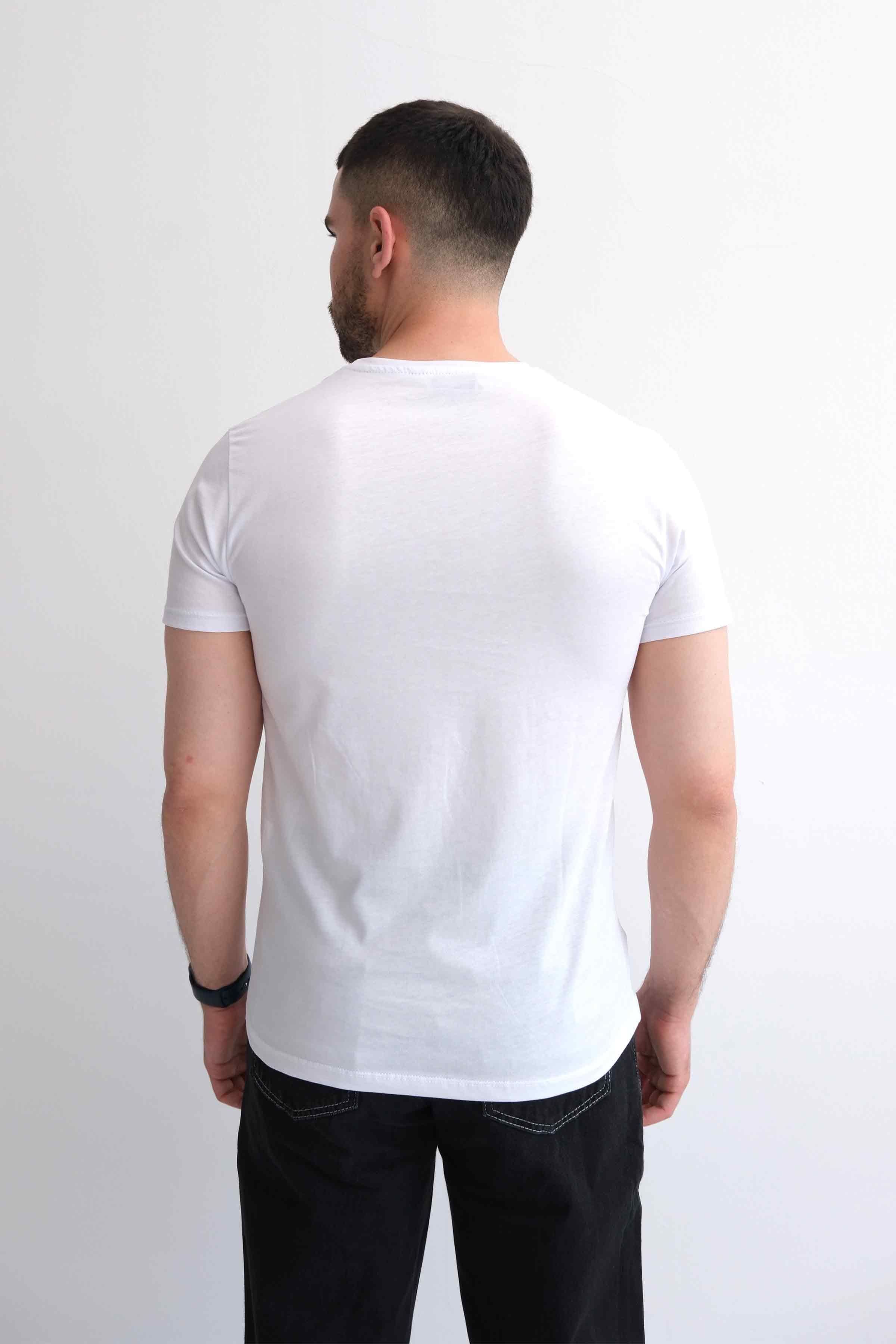 Men’s V-Neck Plain 100% Cotton Basic T-Shirt – White (Y-25-7765)