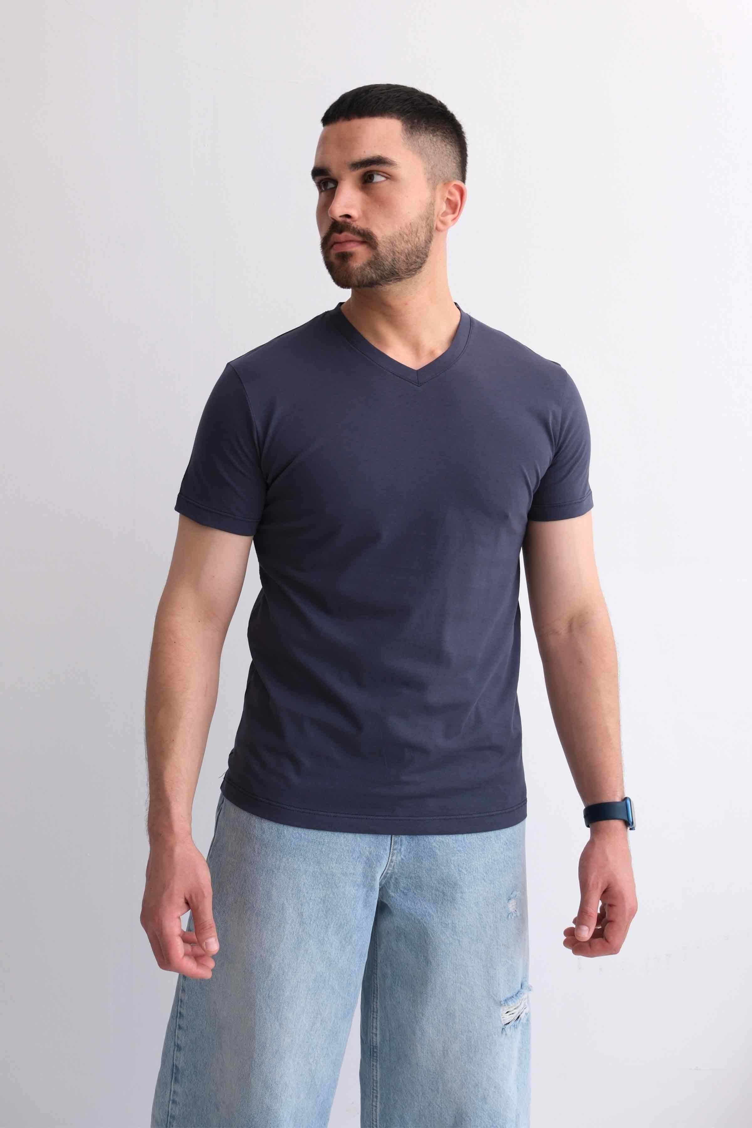 Gardırobunuzun vazgeçilmez parçalarından olacak erkek V yaka tişört, sade ve şık tasarımıyla her kombine kolayca uyum sağlar. %100 pamuk kumaşı sayesinde gün boyu rahatlık sunan bu pamuklu erkek tişört, nefes alabilen yapısıyla yaz-kış kullanılabilir.
