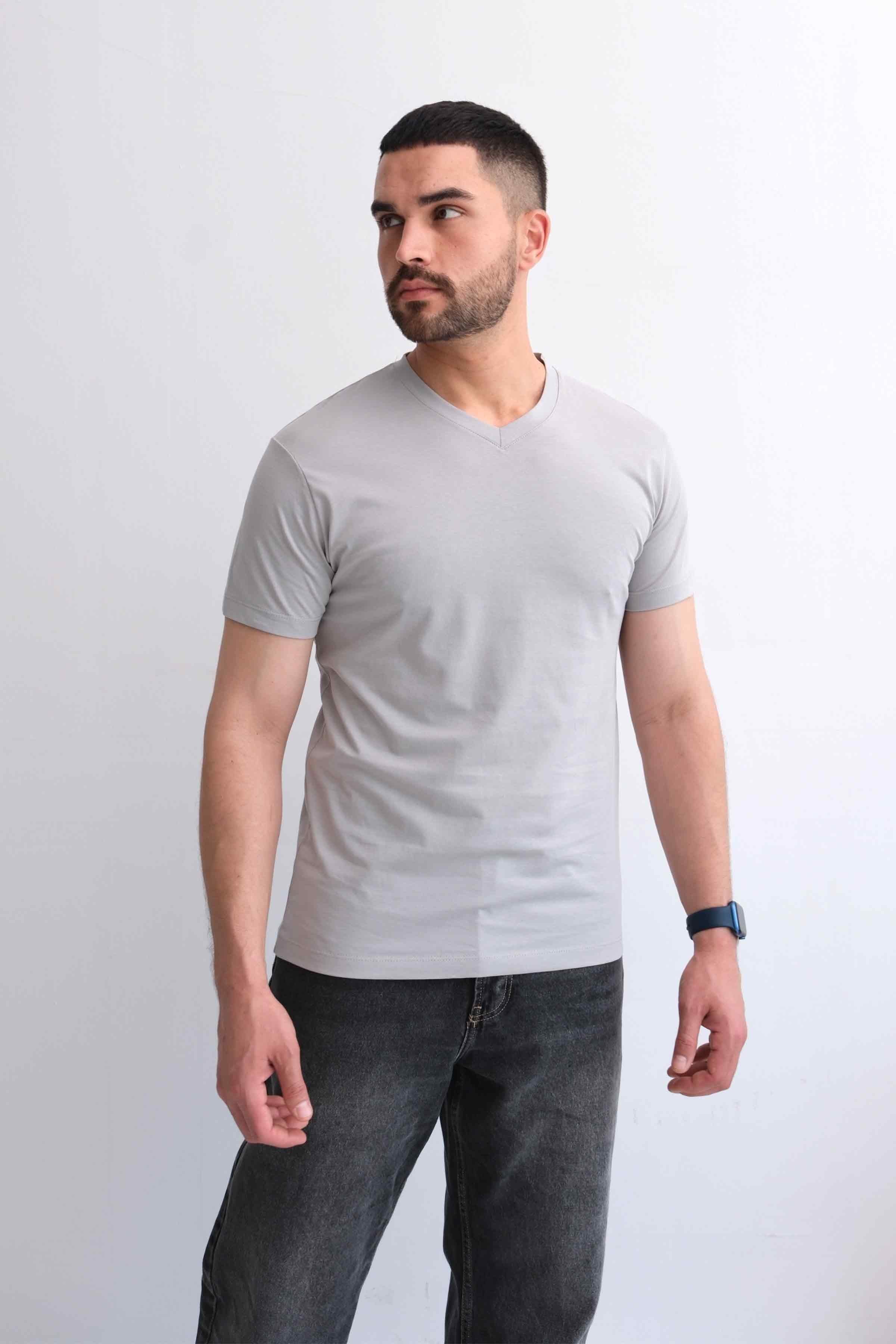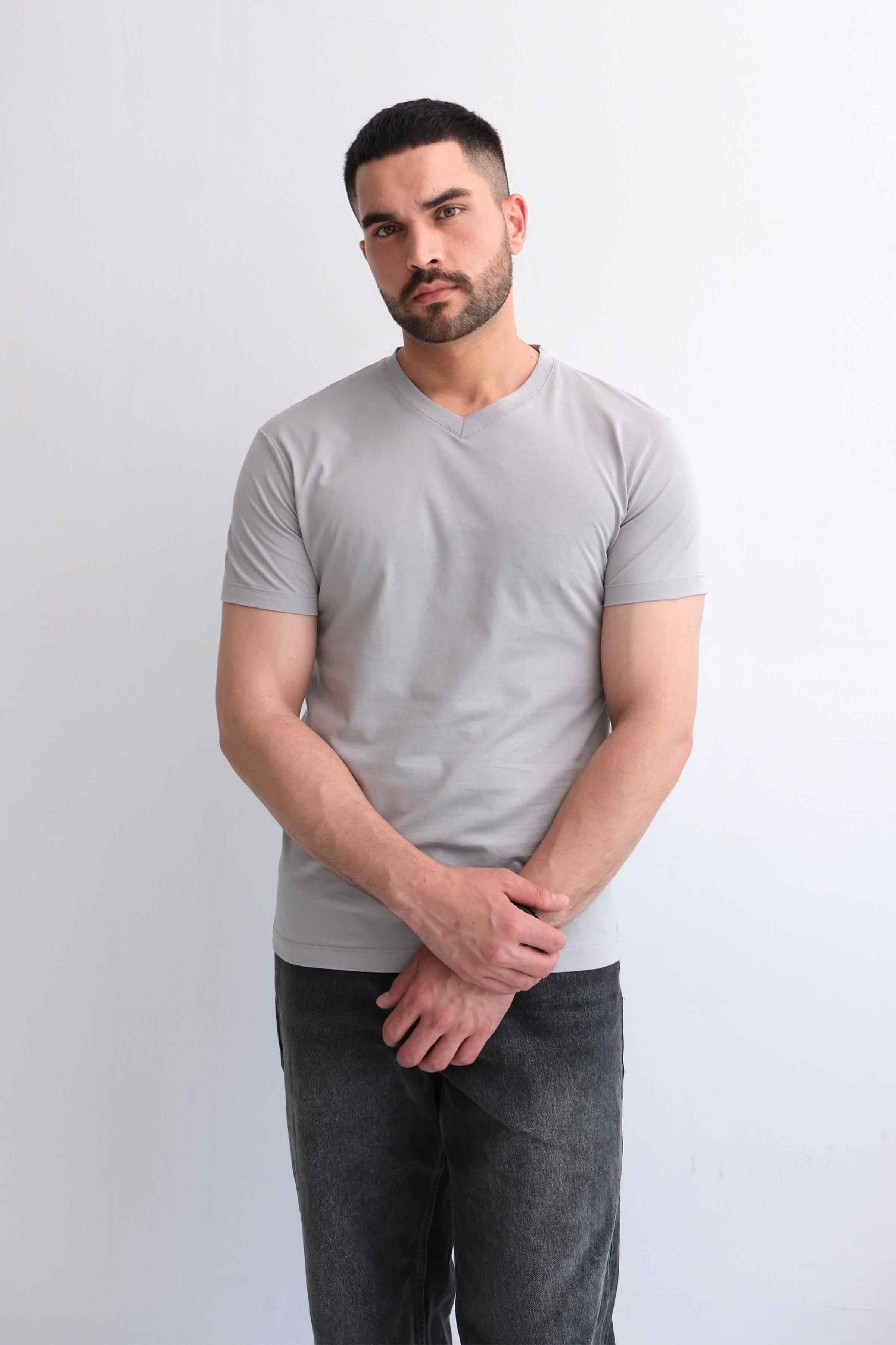 Men’s V-Neck Plain 100% Cotton Basic T-Shirt – Grey (Y-25-7765)
