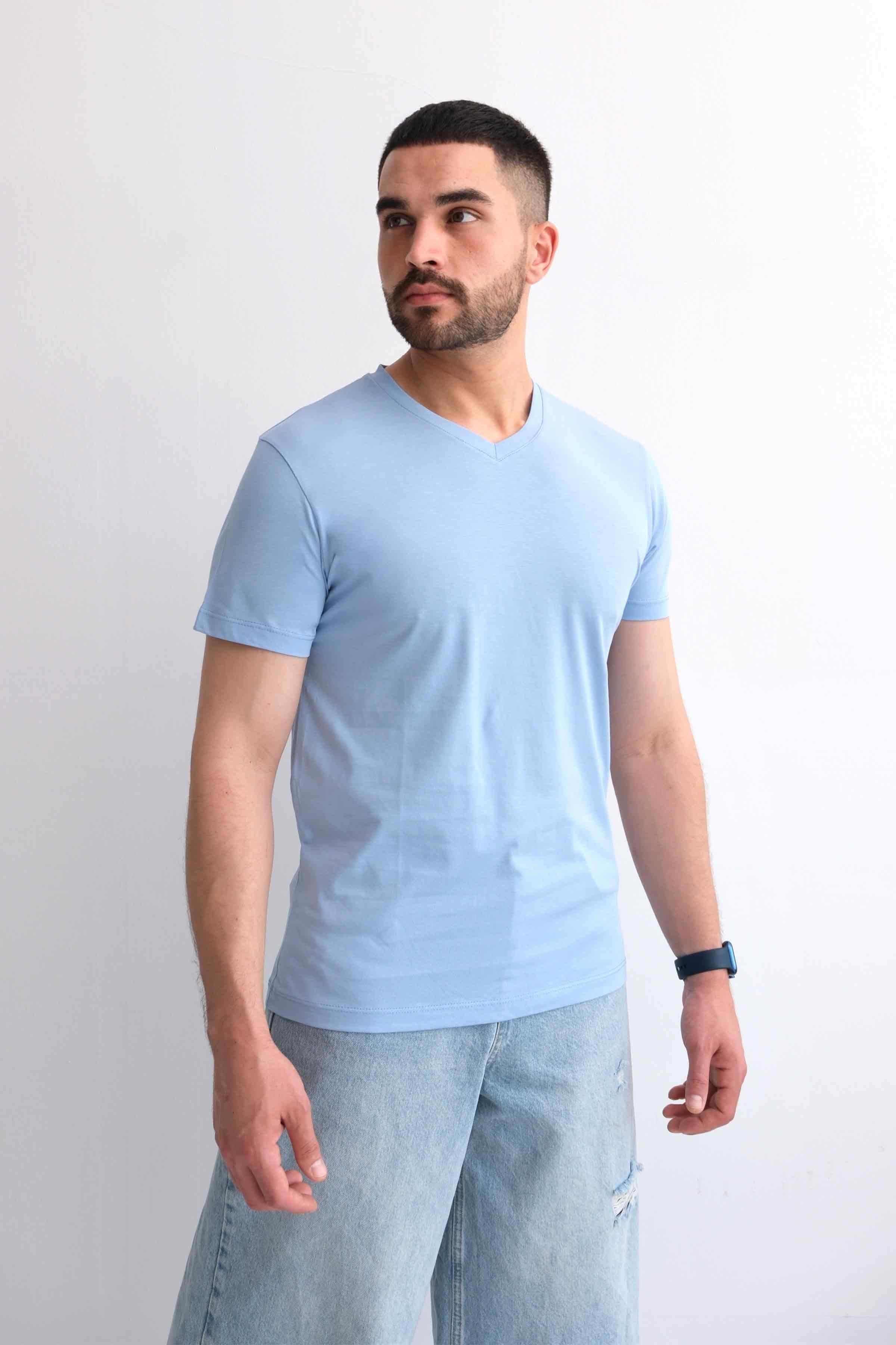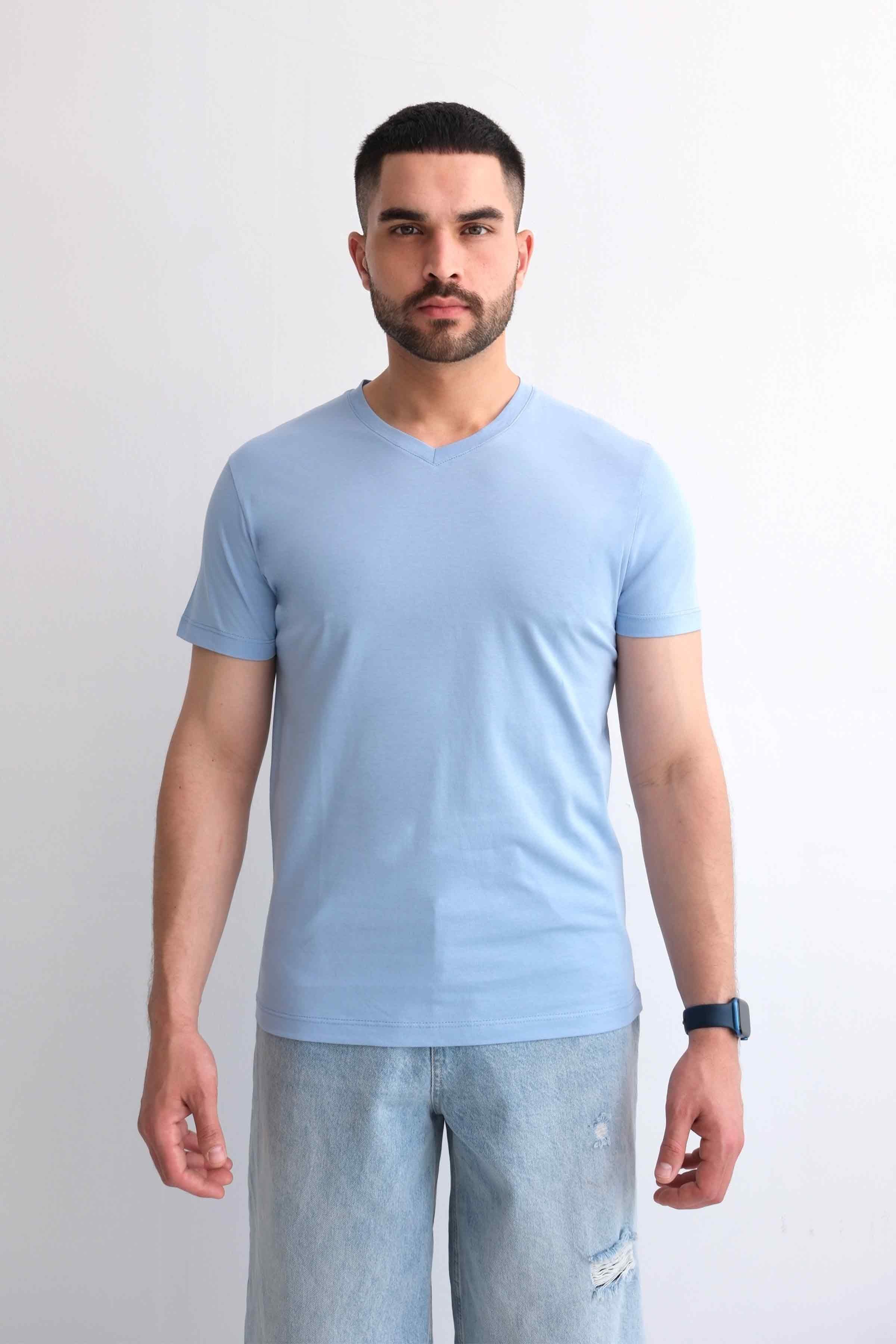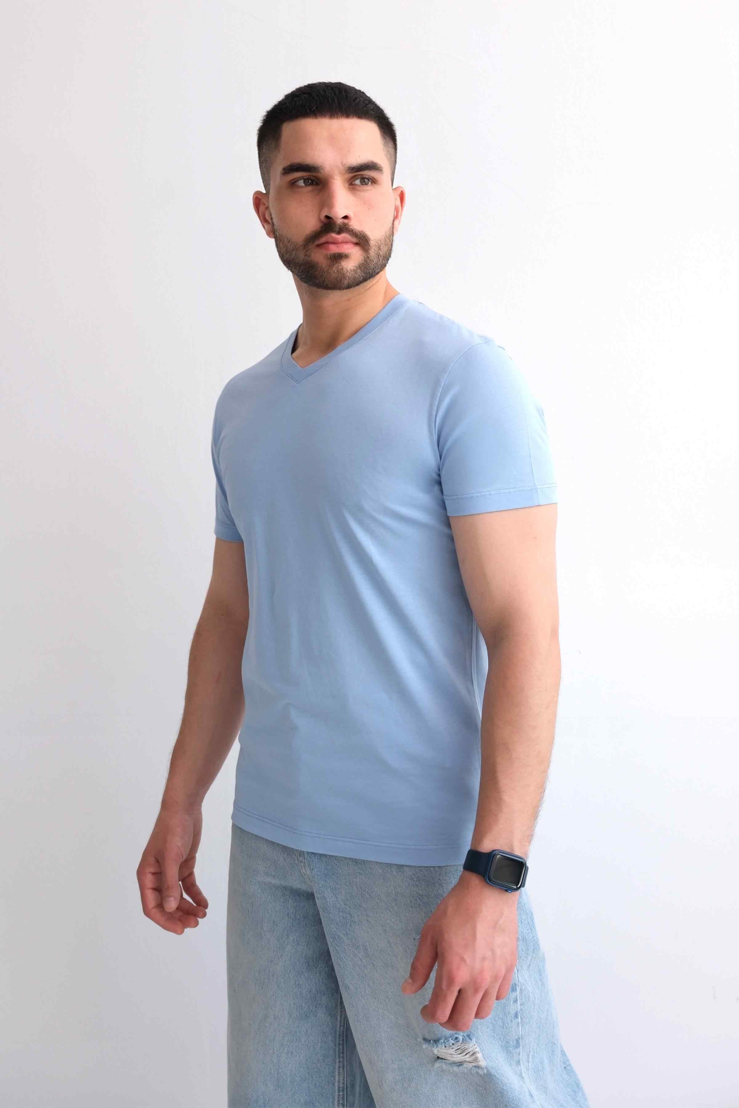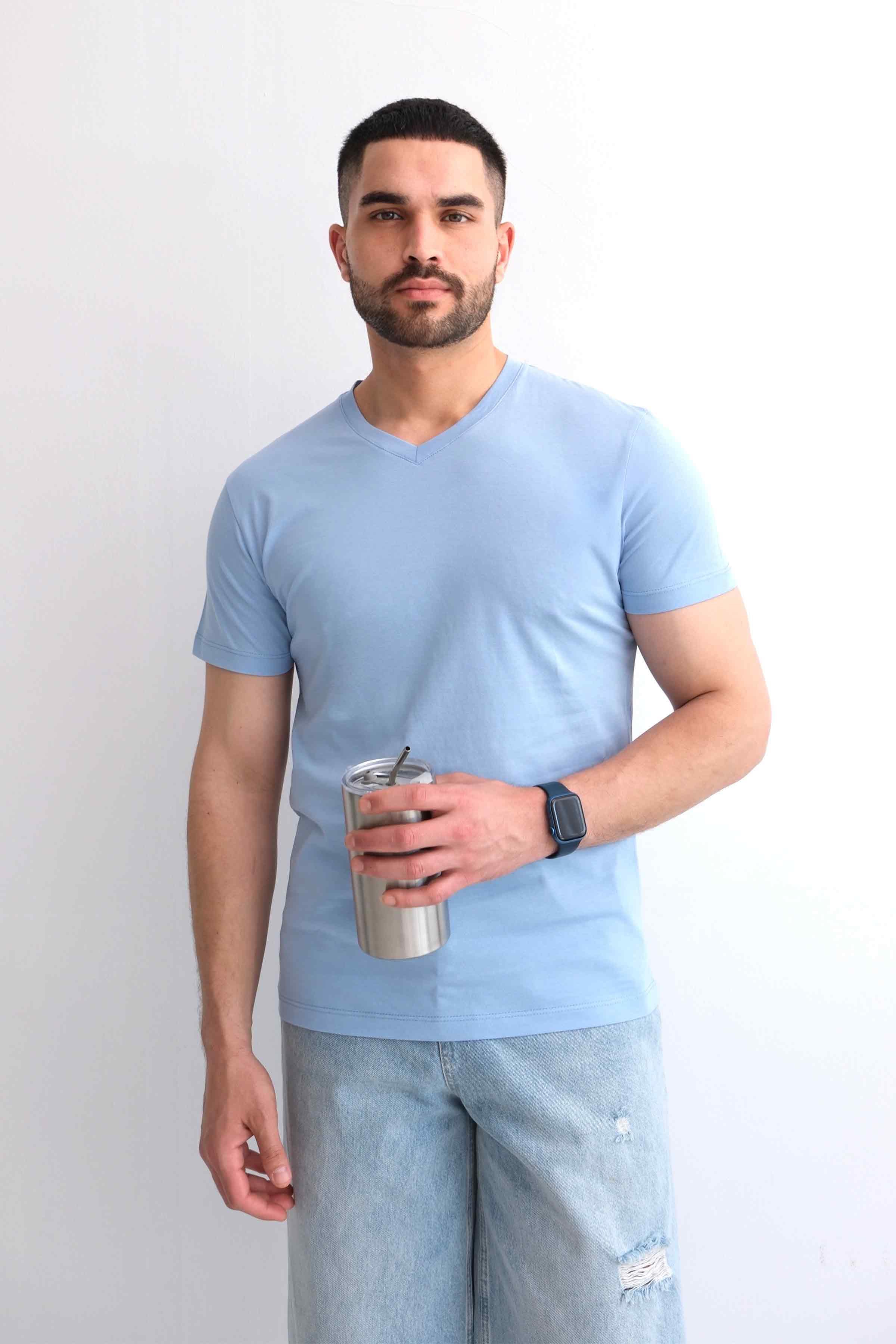 Men’s V-Neck Plain 100% Cotton Basic T-Shirt – Blue