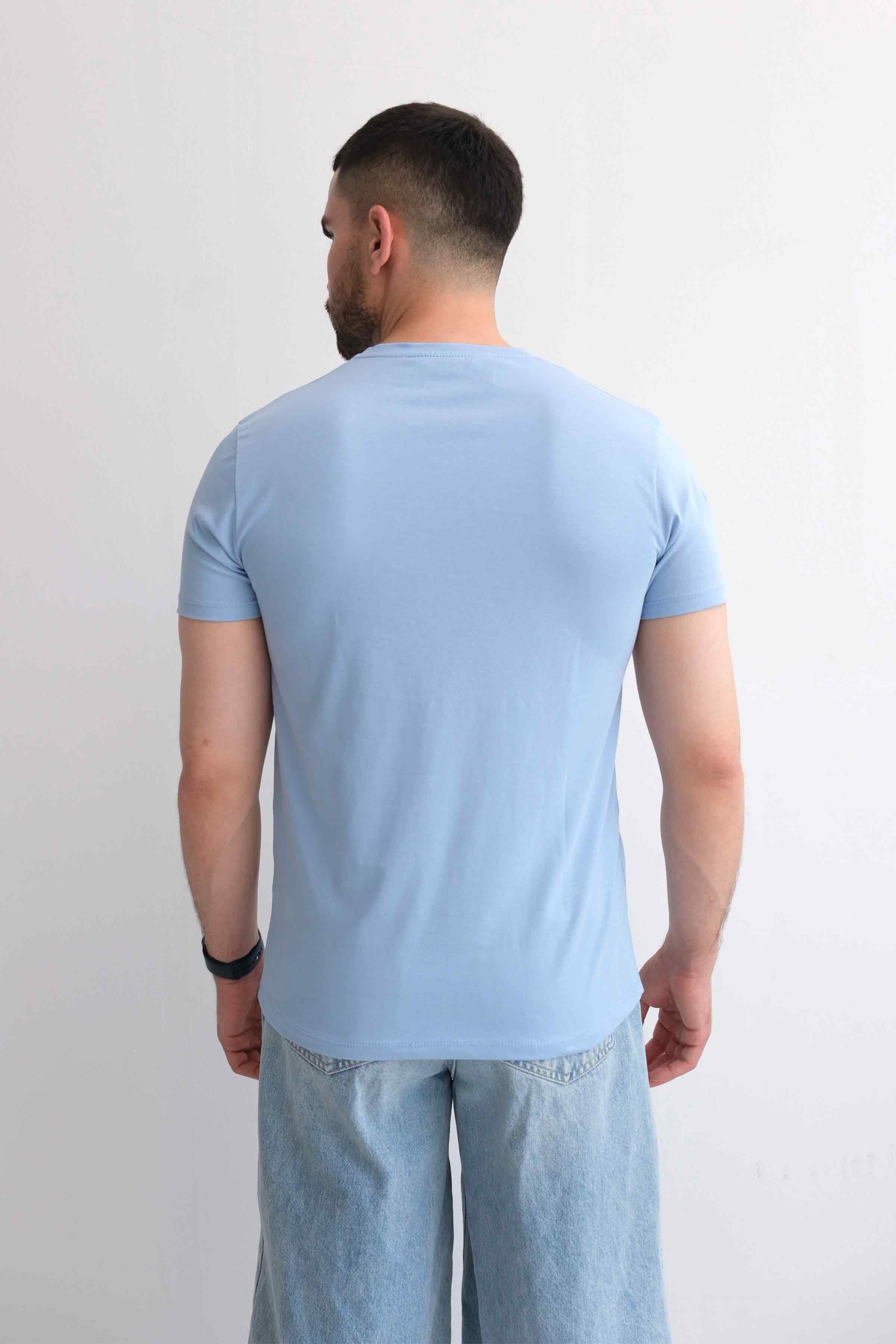 Men’s V-Neck Plain 100% Cotton Basic T-Shirt – Blue (Y-25-7765)