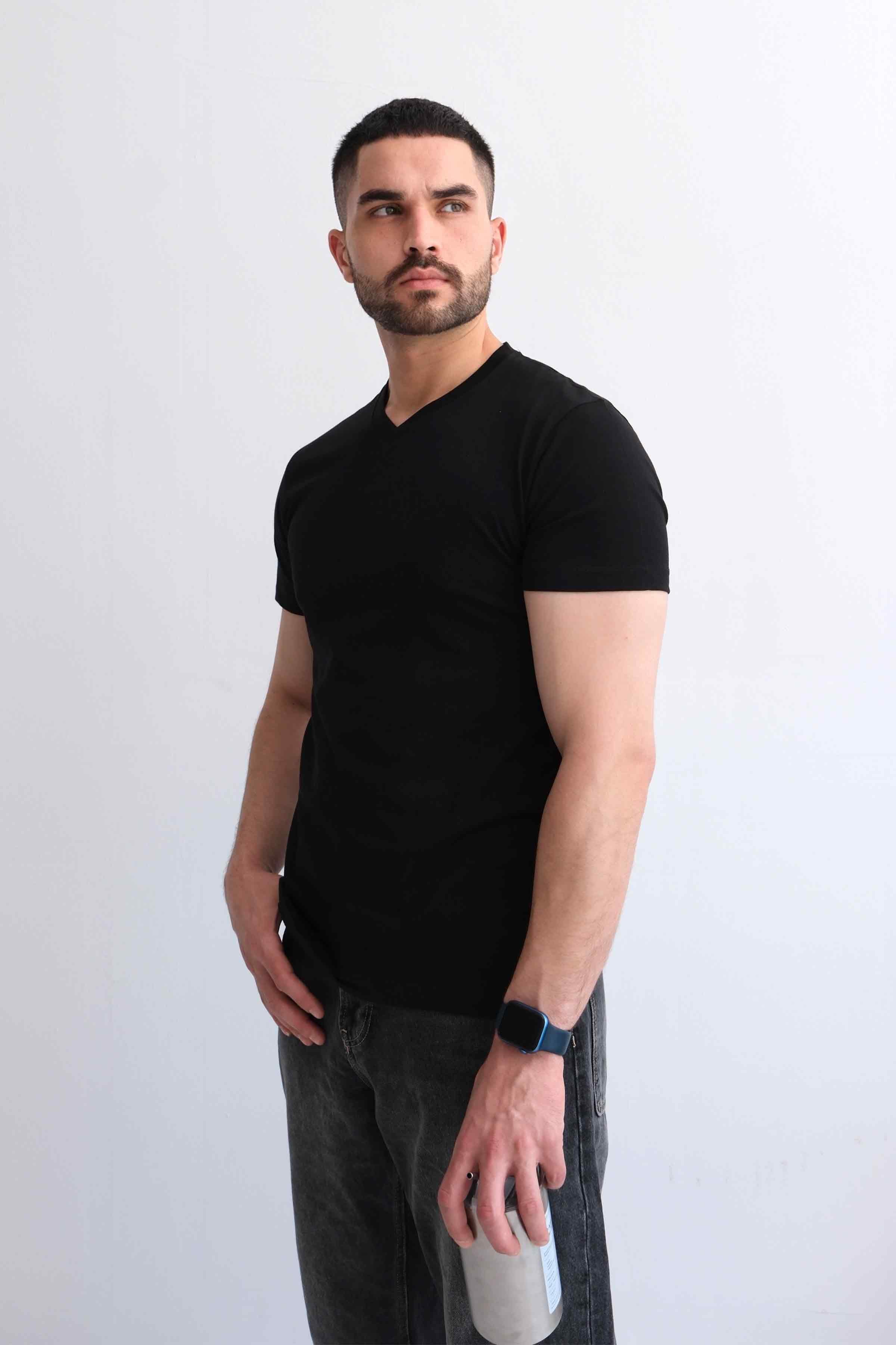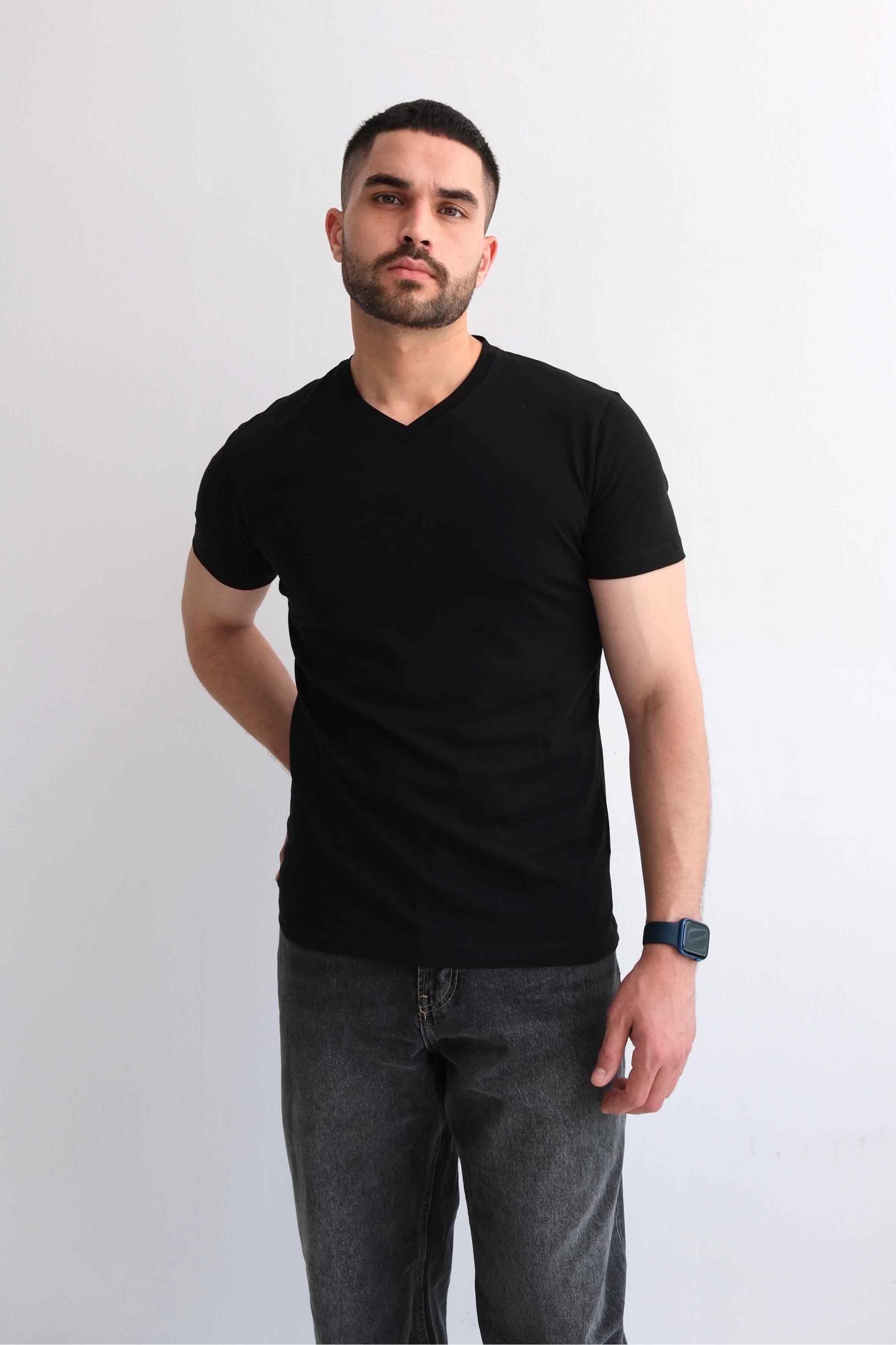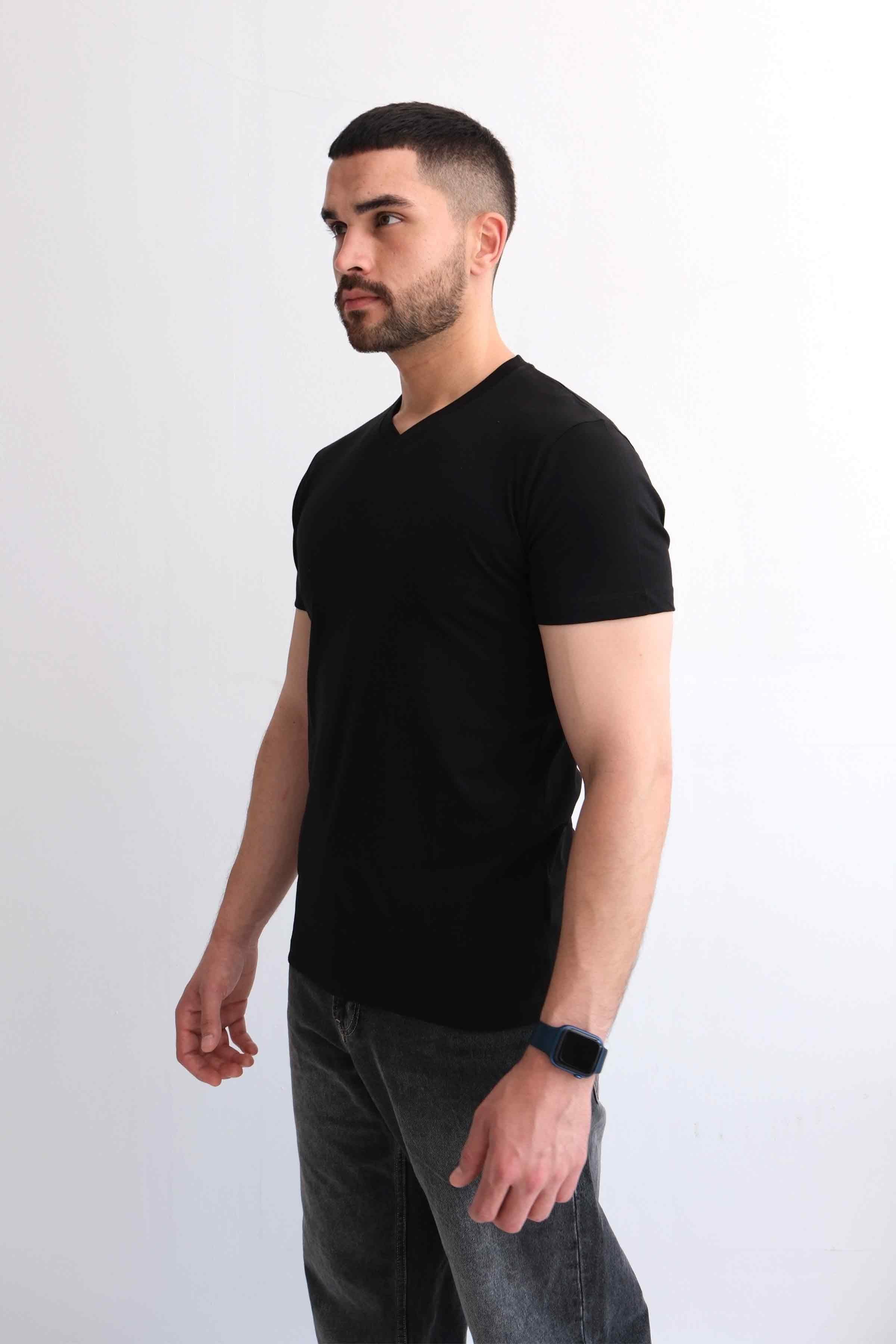 Men’s V-Neck Plain 100% Cotton Basic T-Shirt – Black