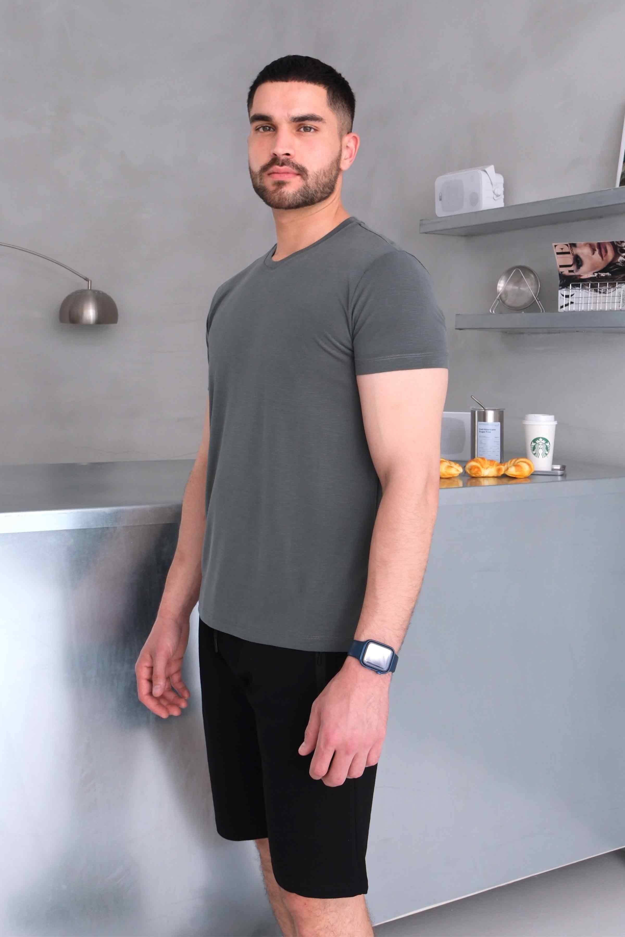 Erkek V Yaka Flamlı Modal Regular Kalıp Pamuk Basic Tişört