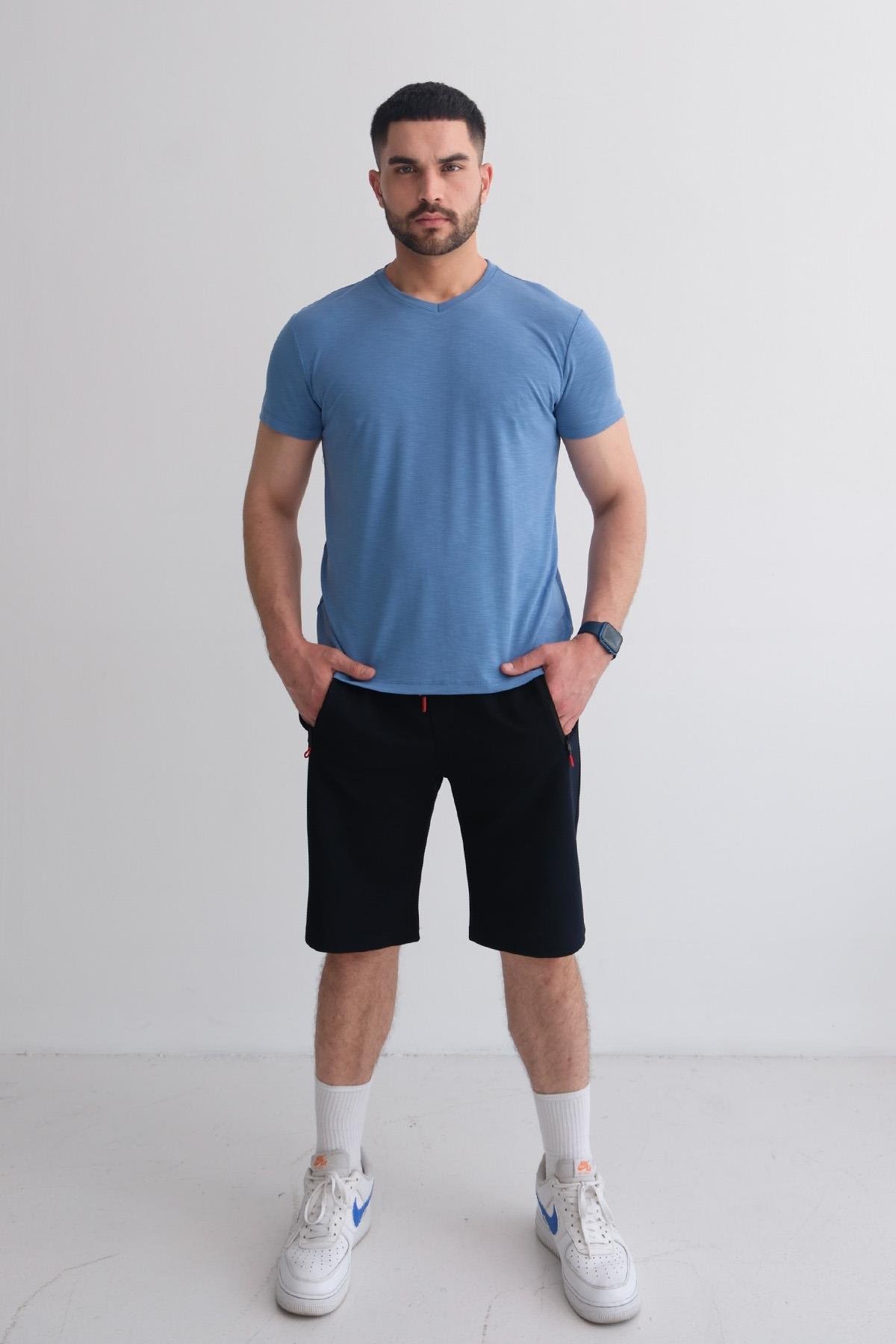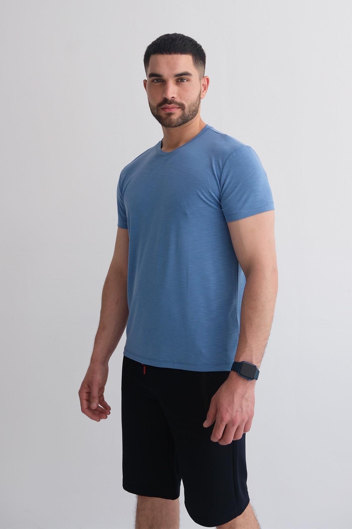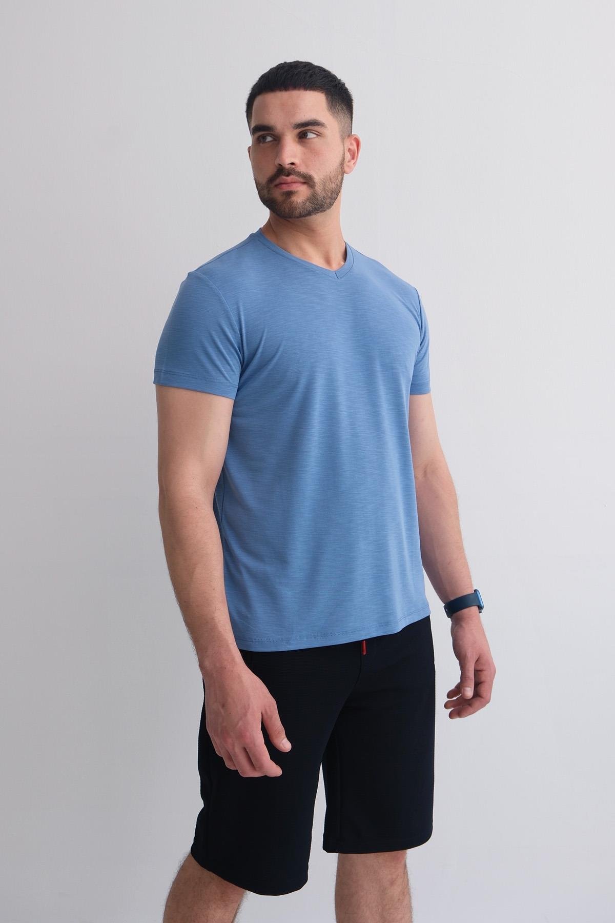 Men’s V-Neck Slub Modal-Cotton Regular Fit Basic T-Shirt - Indigo (Y-25-4177)