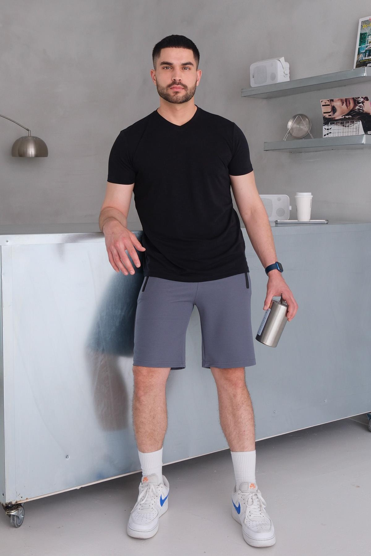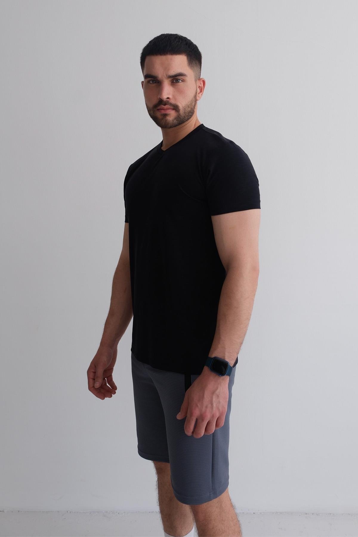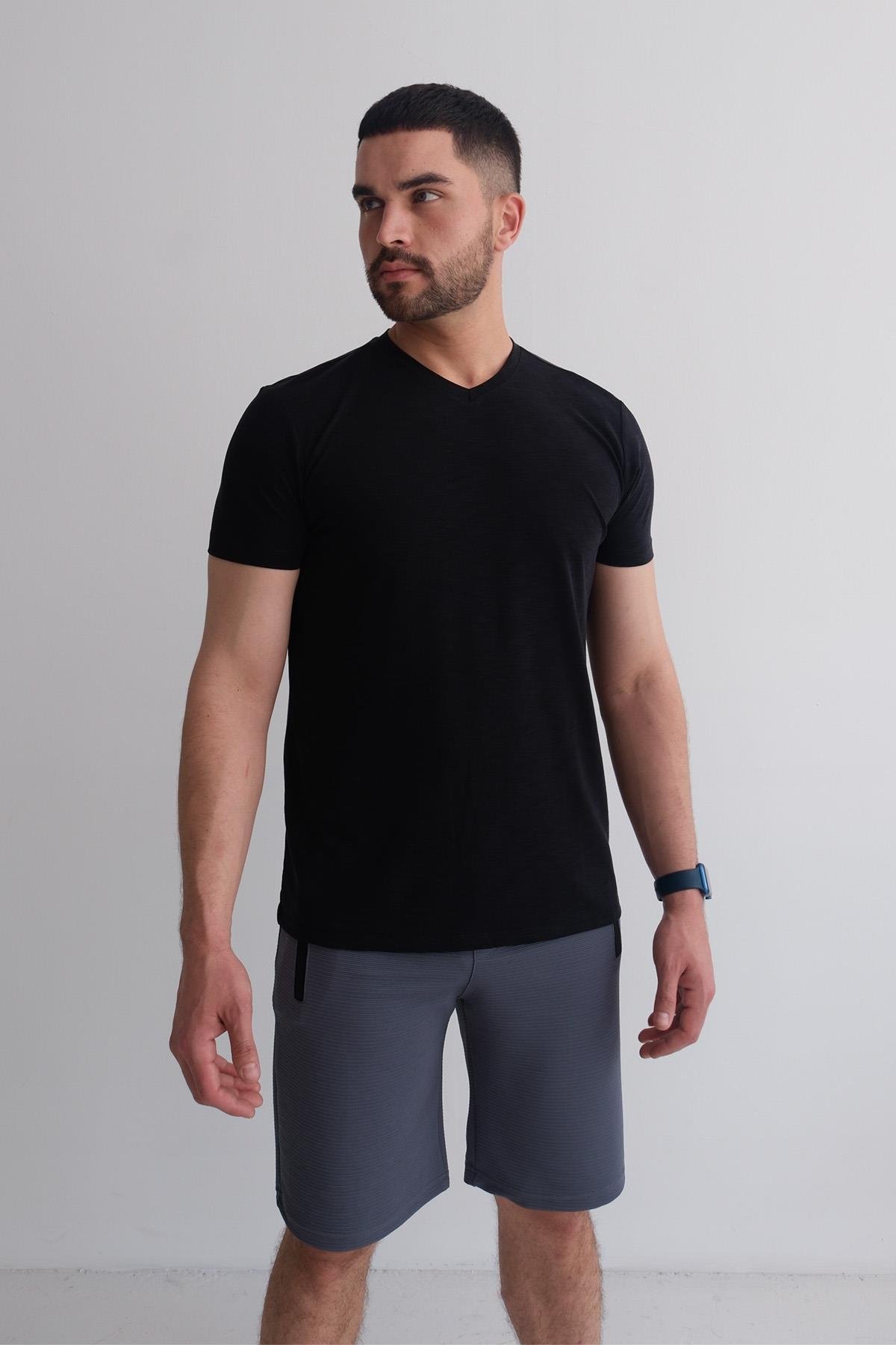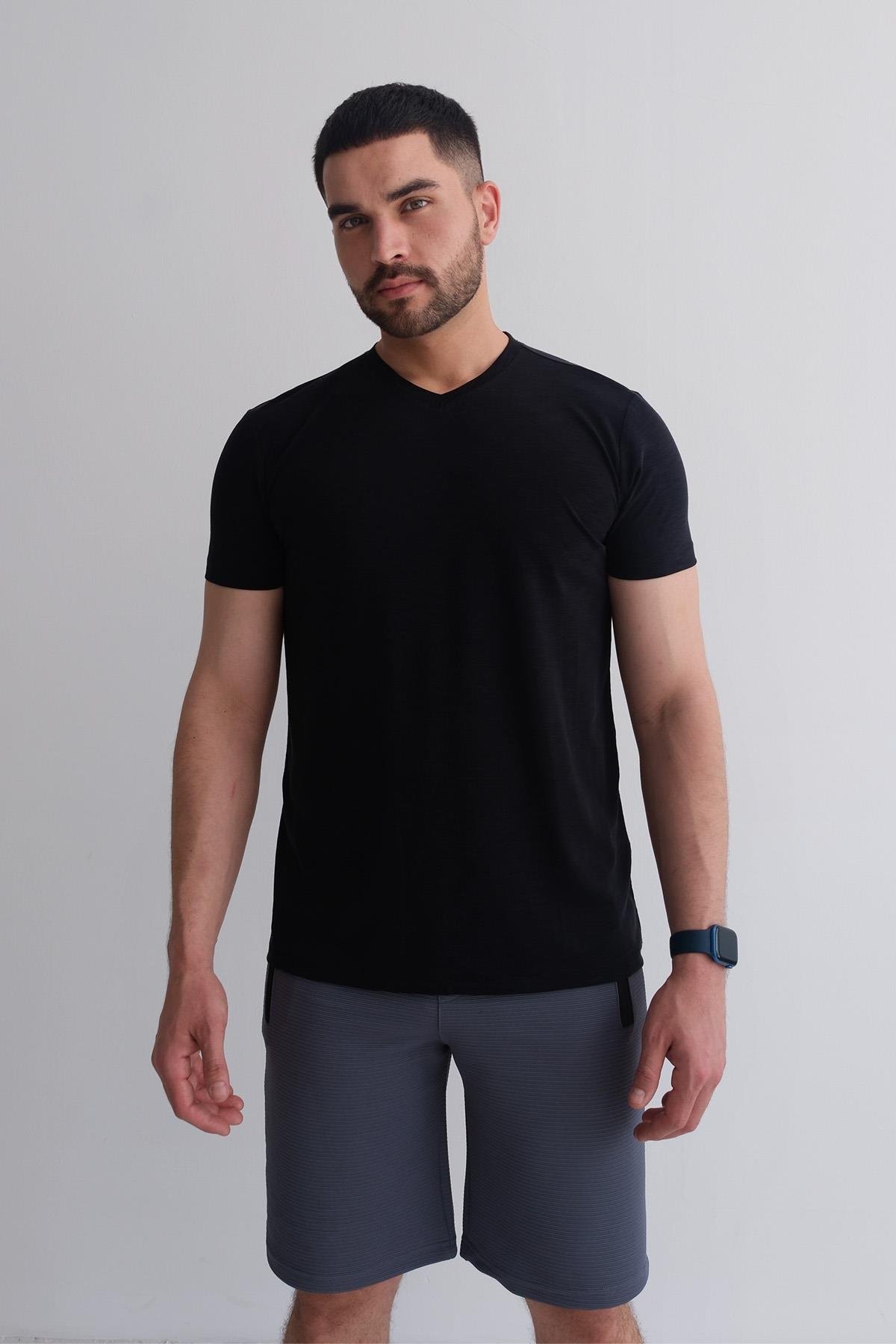 Men’s V-Neck Slub Modal-Cotton Regular Fit Basic T-Shirt - Black (Y-25-4177)