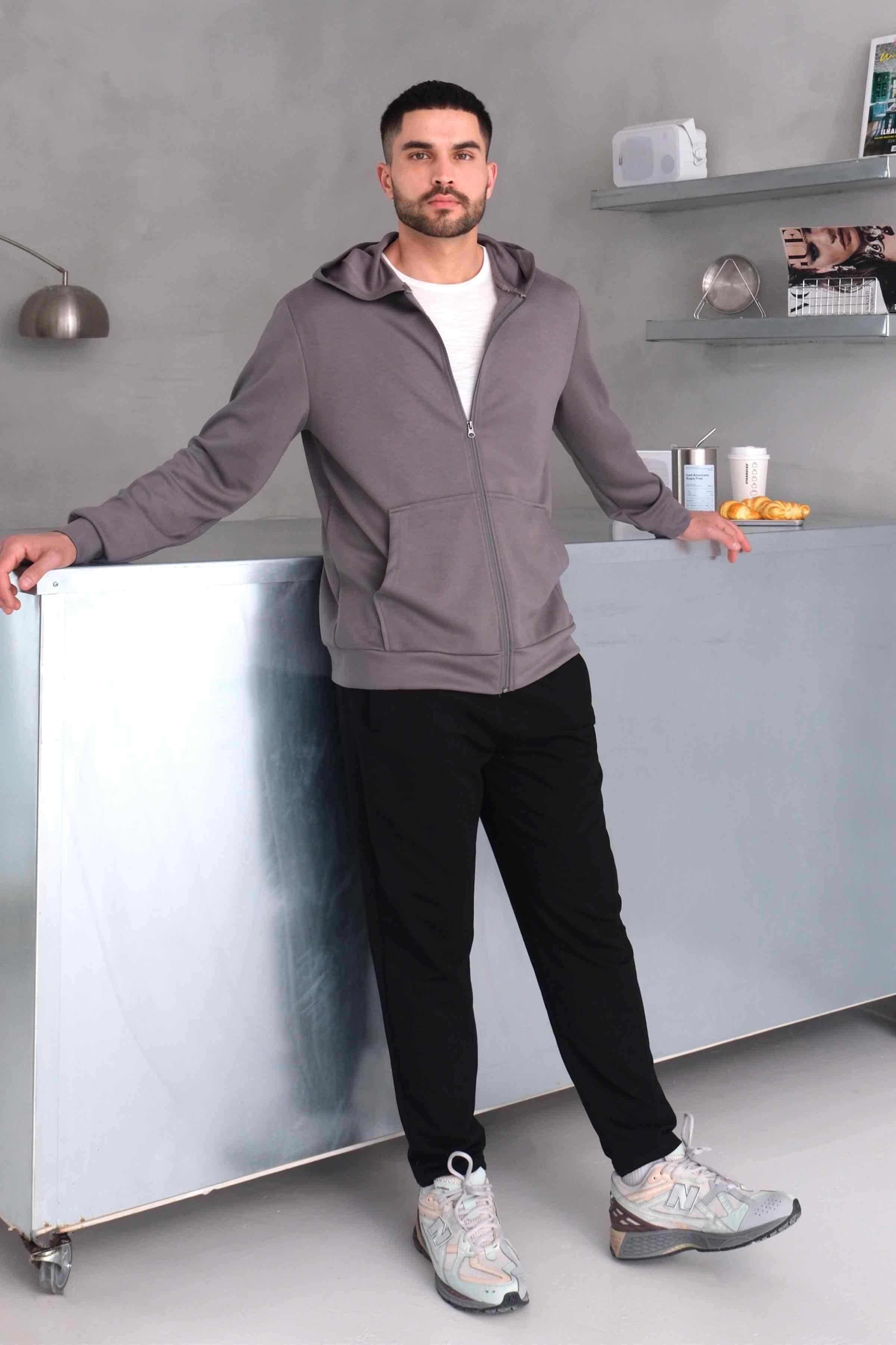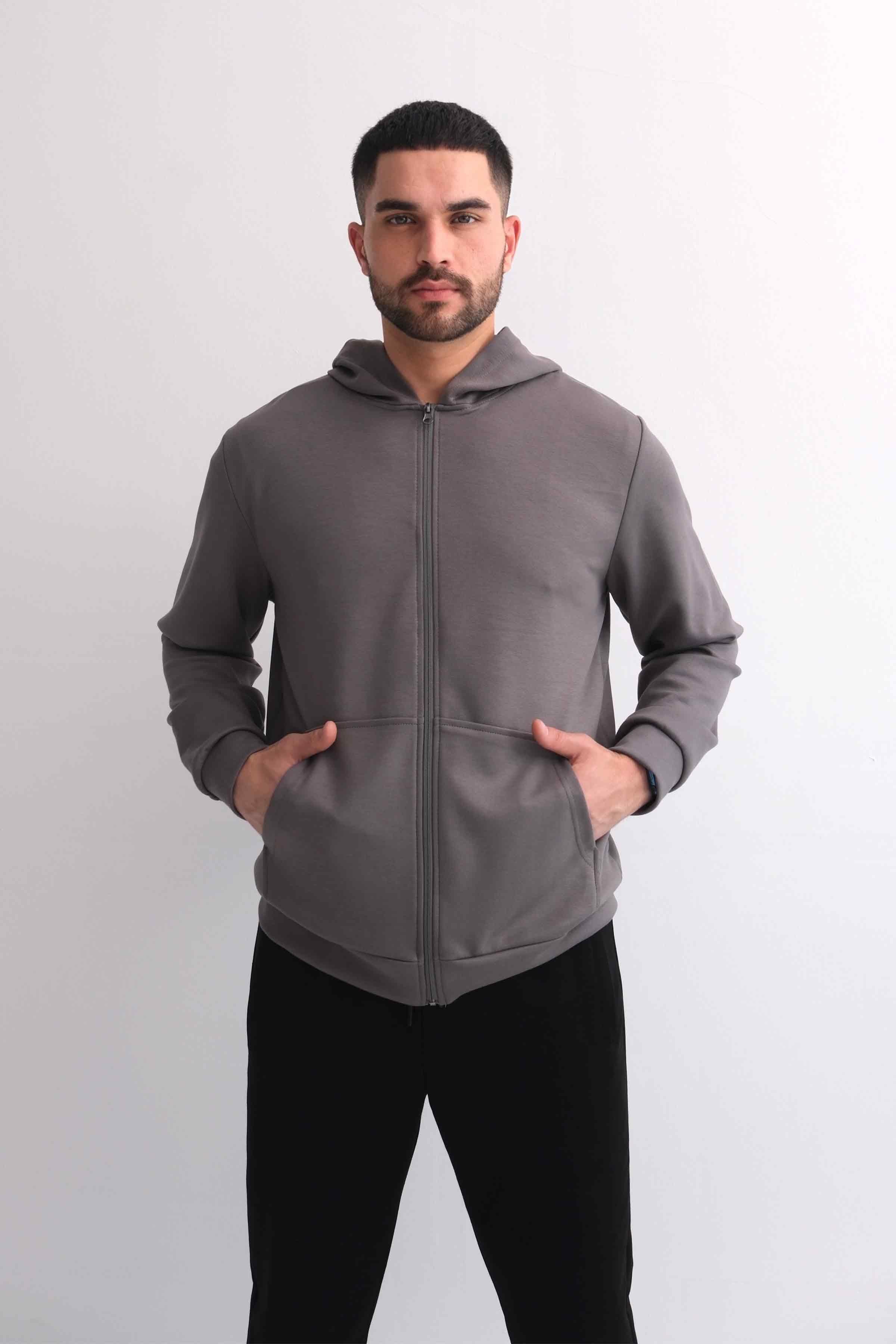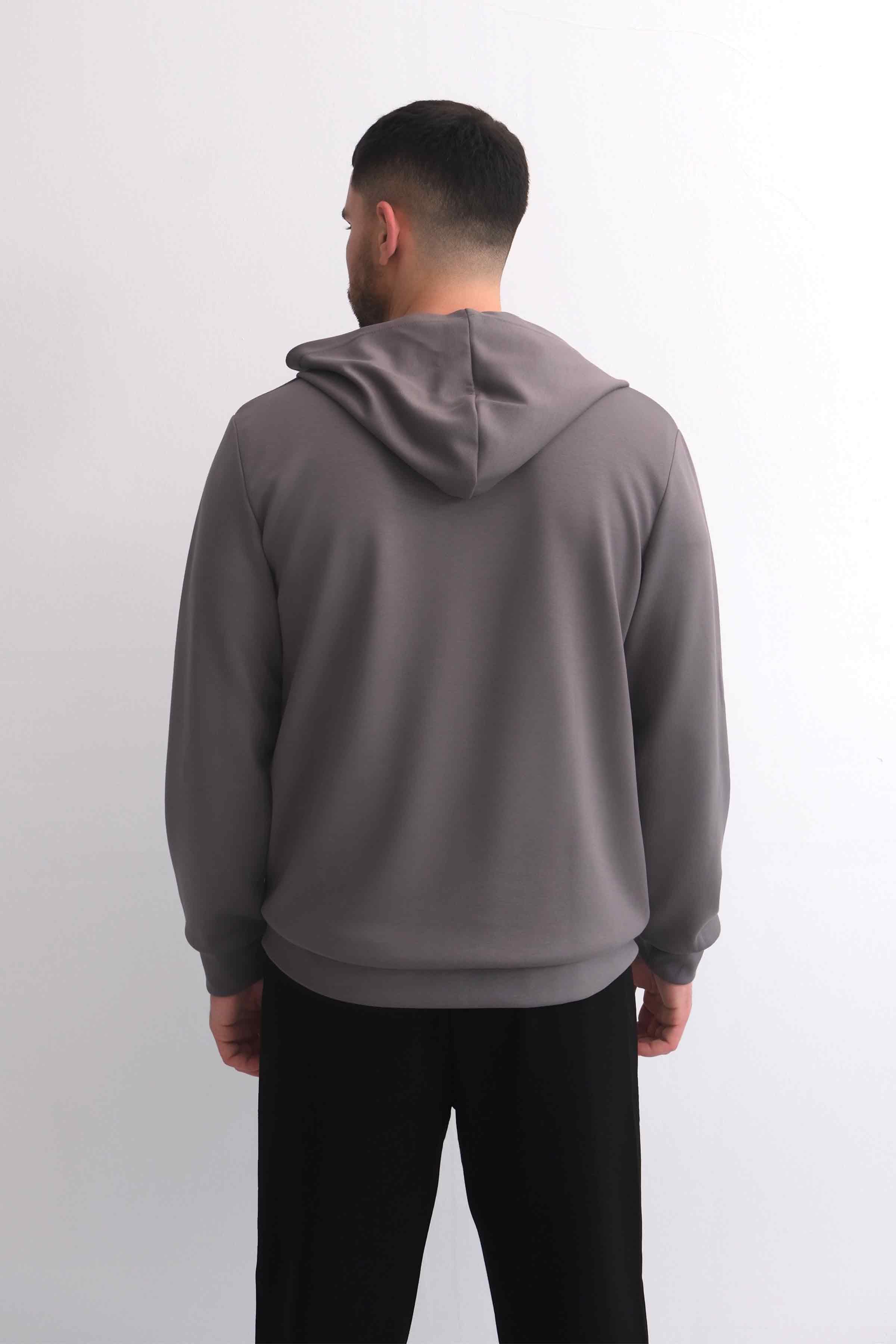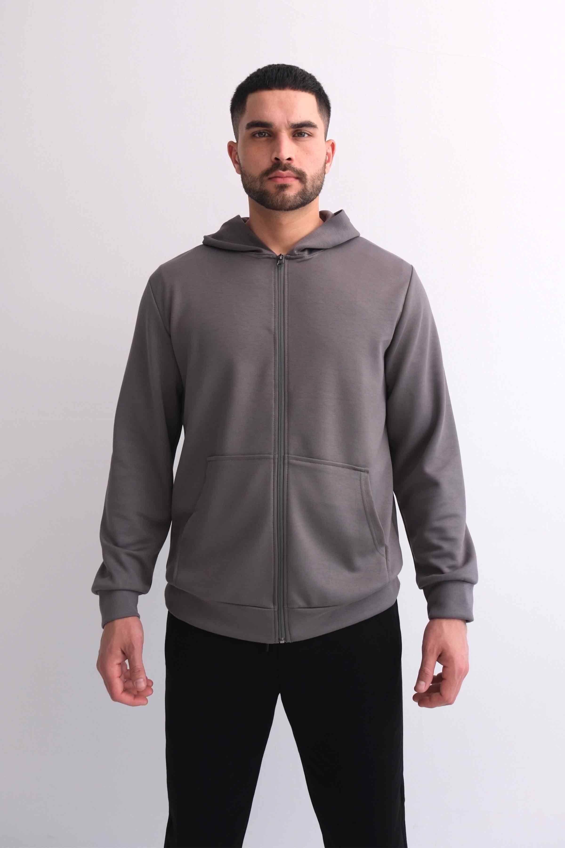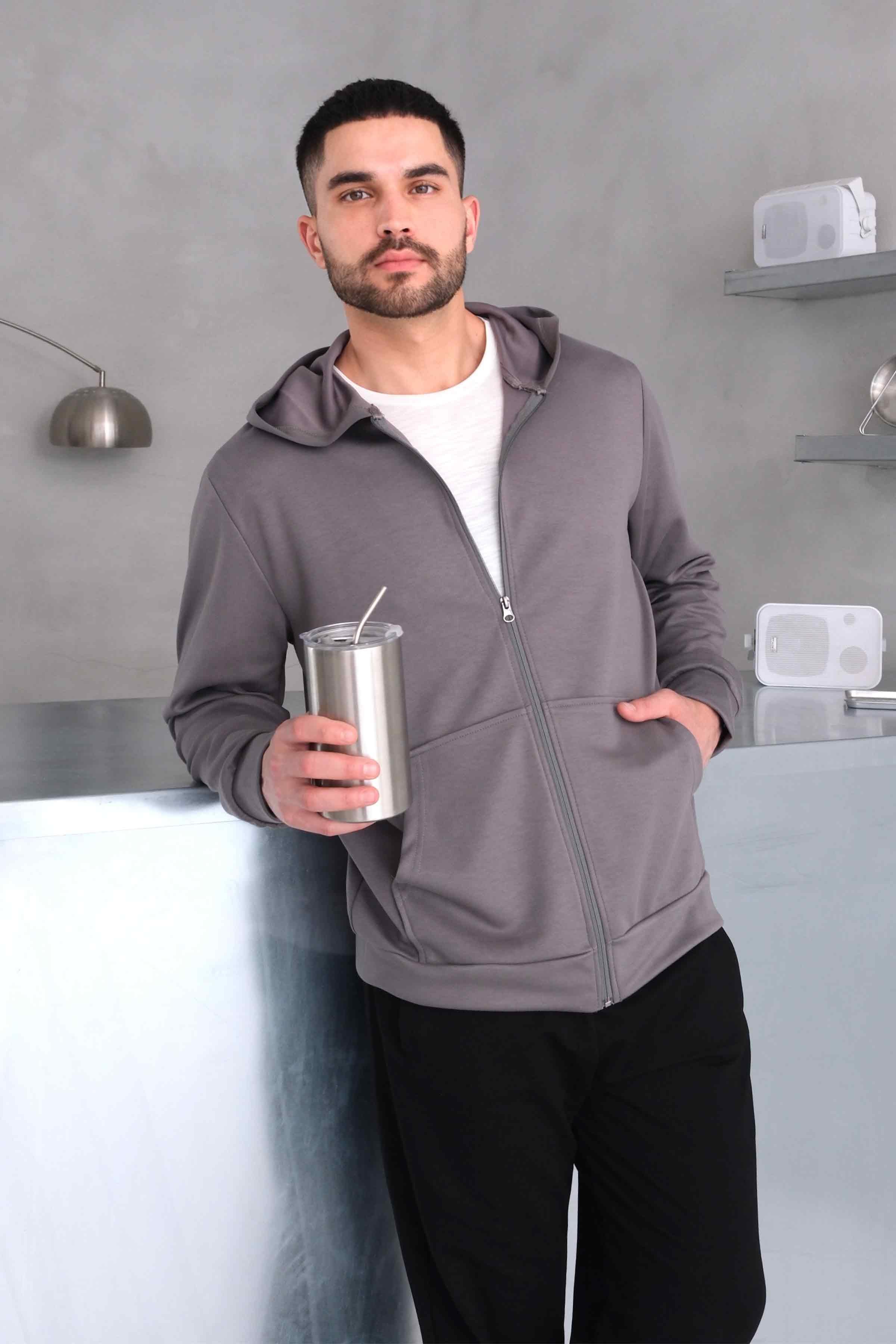 Zip-Up Modal Hoodie with Kangaroo Pocket - Grey (Y-25-4182)