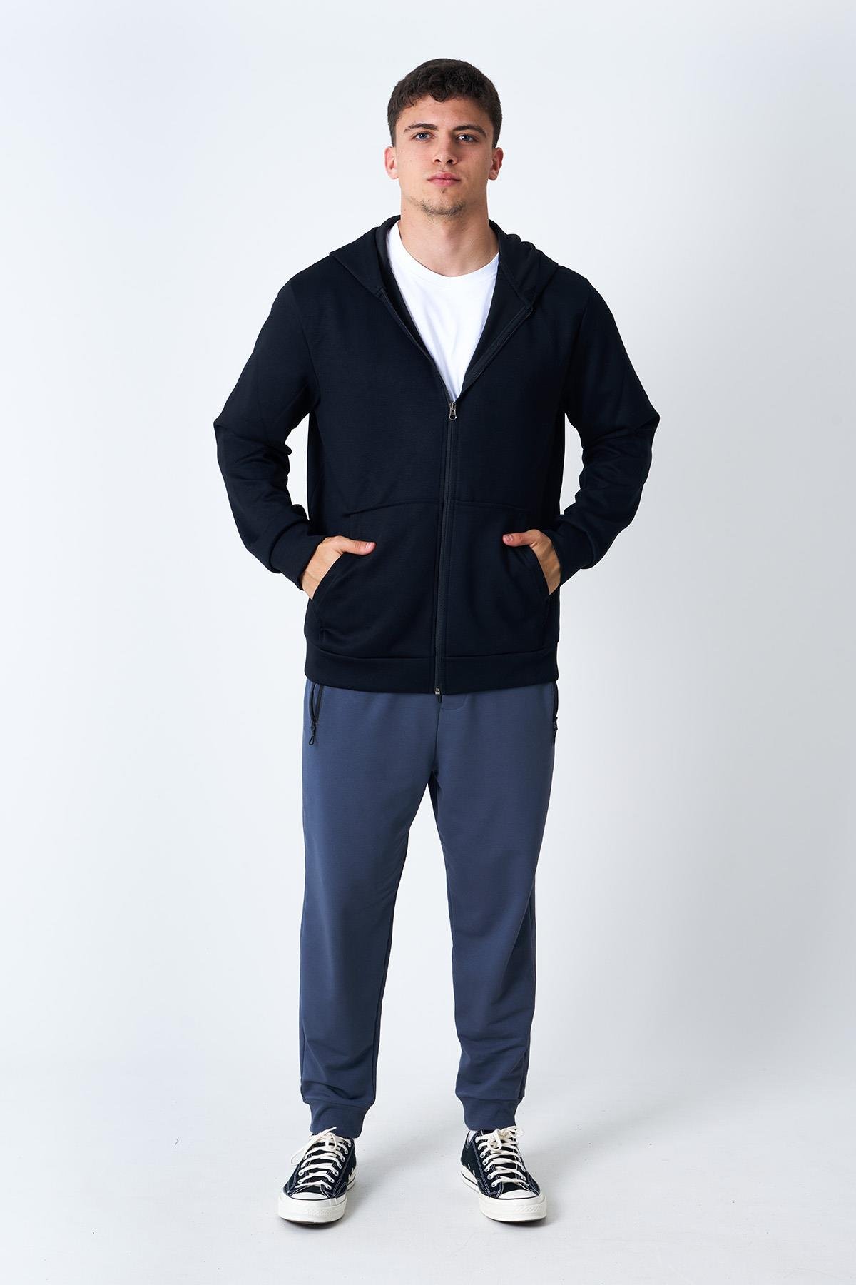 Zip-Up Modal Hoodie with Kangaroo Pocket - Black (Y-25-4182)