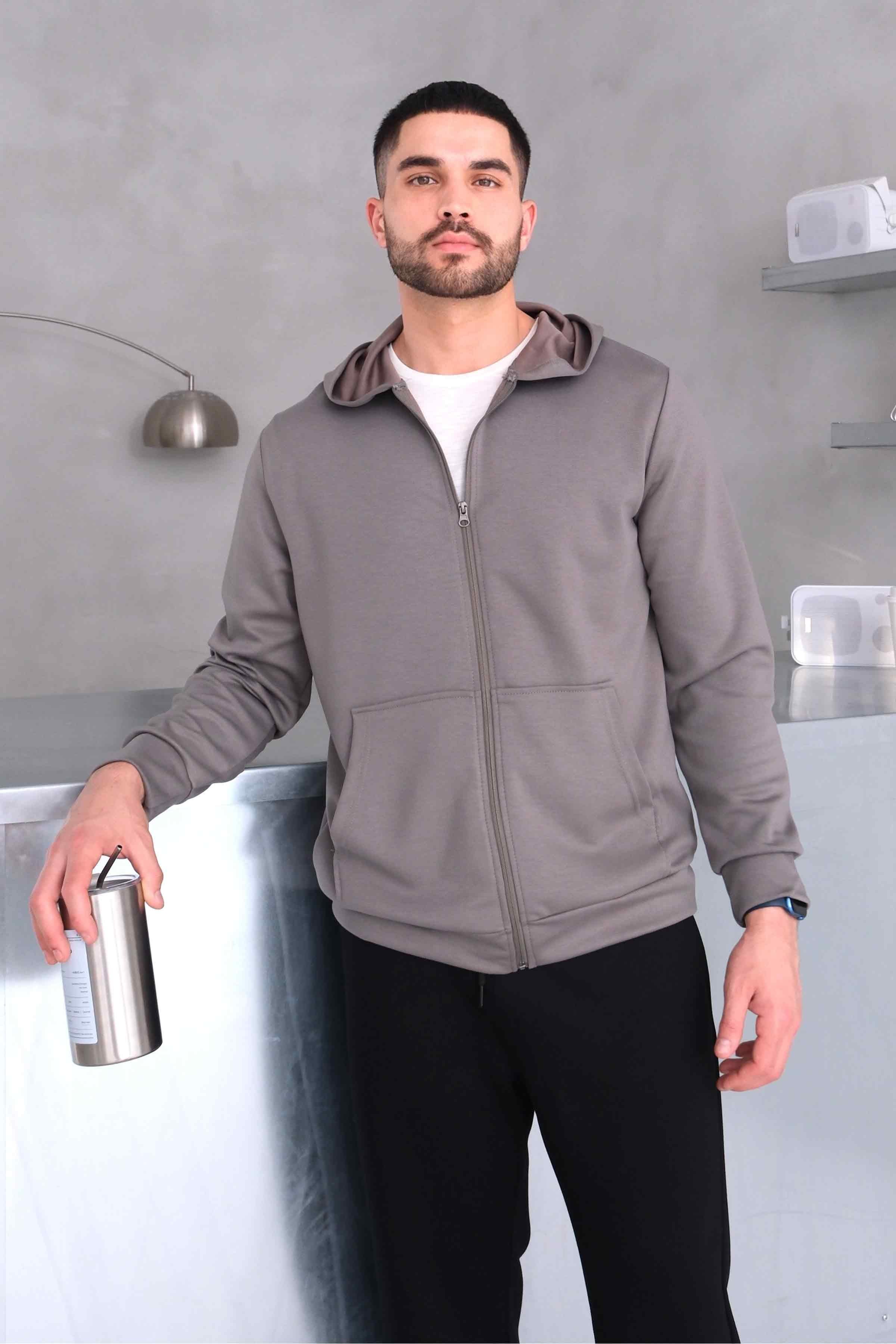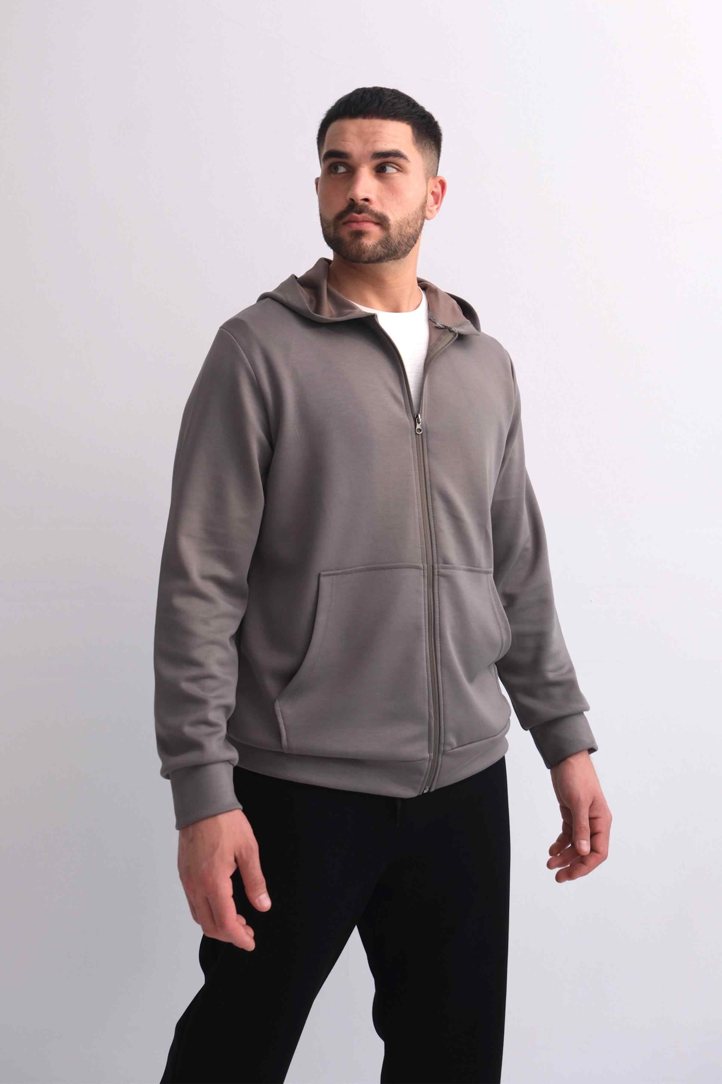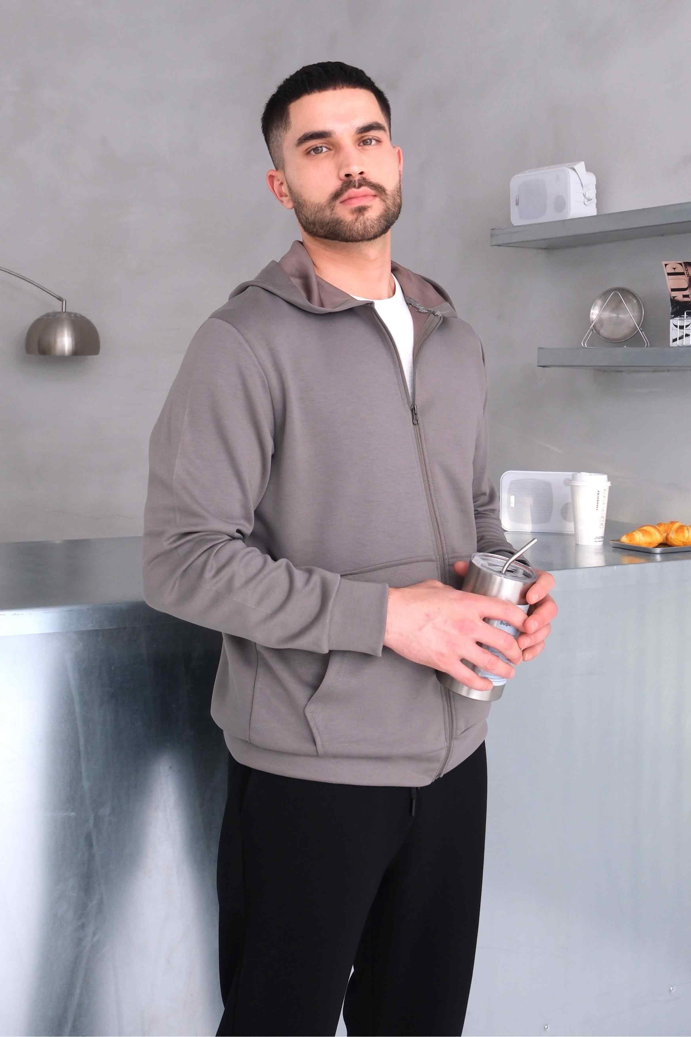 Zip-Up Modal Hoodie with Kangaroo Pocket - Taupe (Y-25-4182)