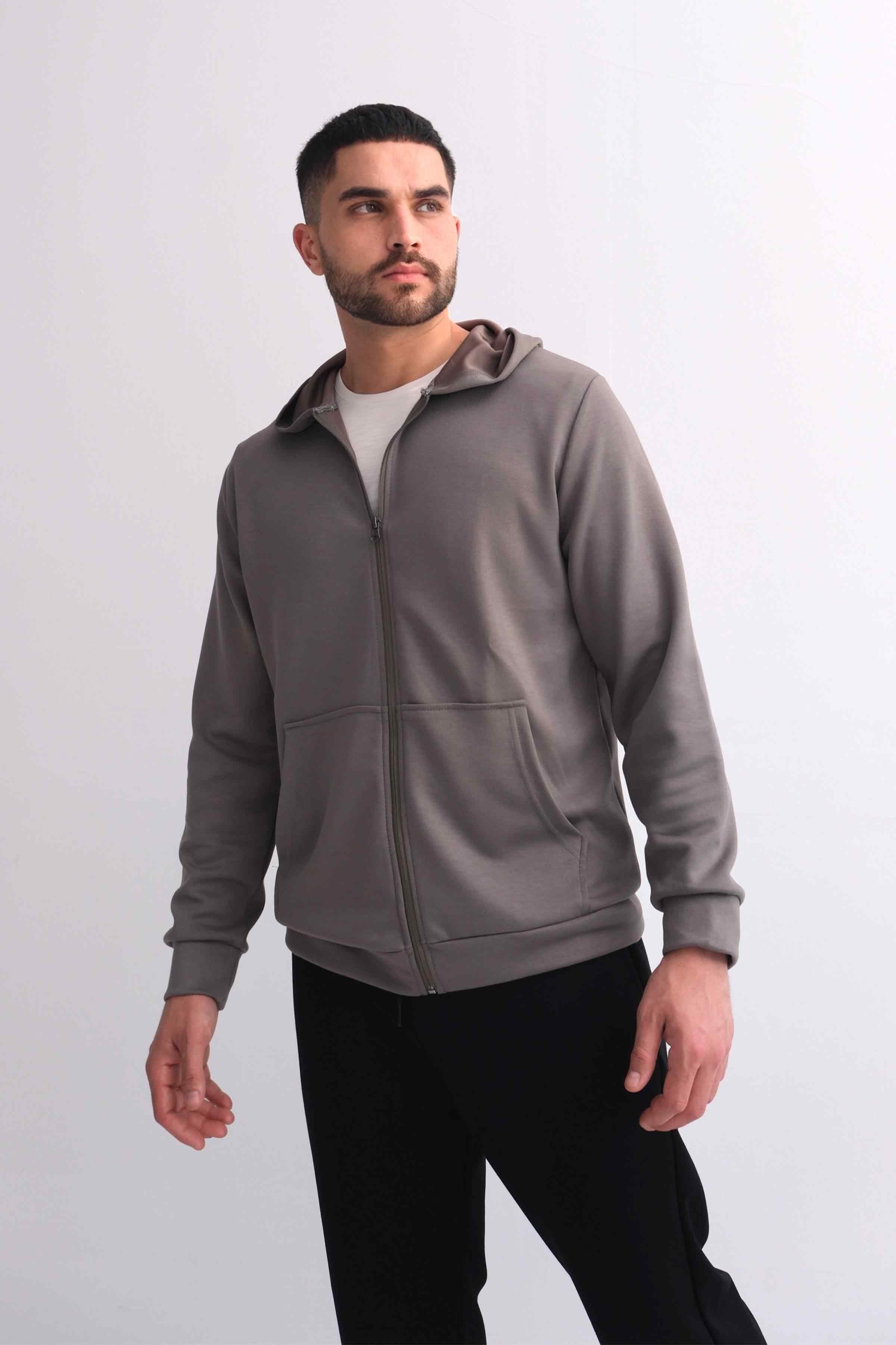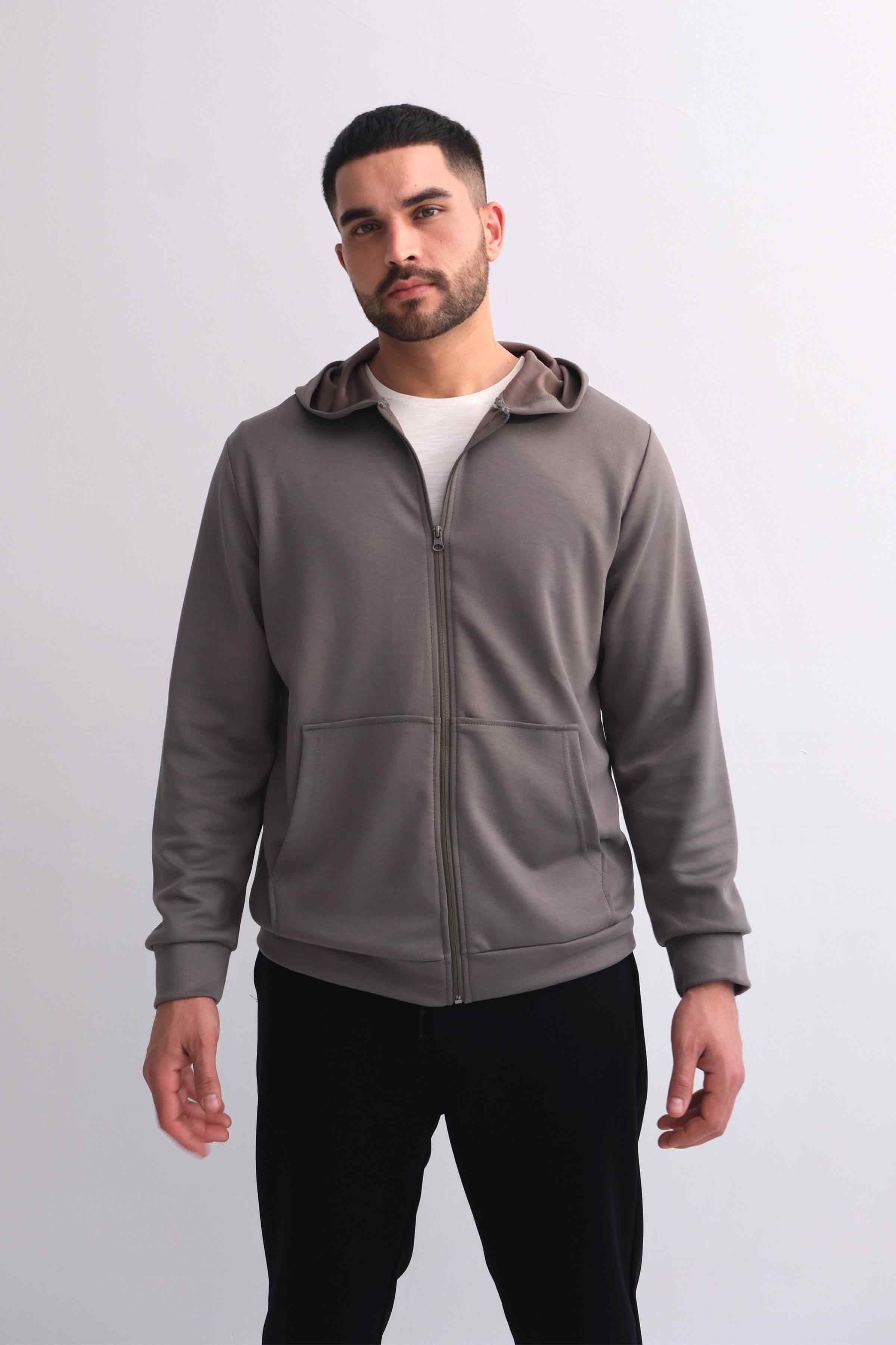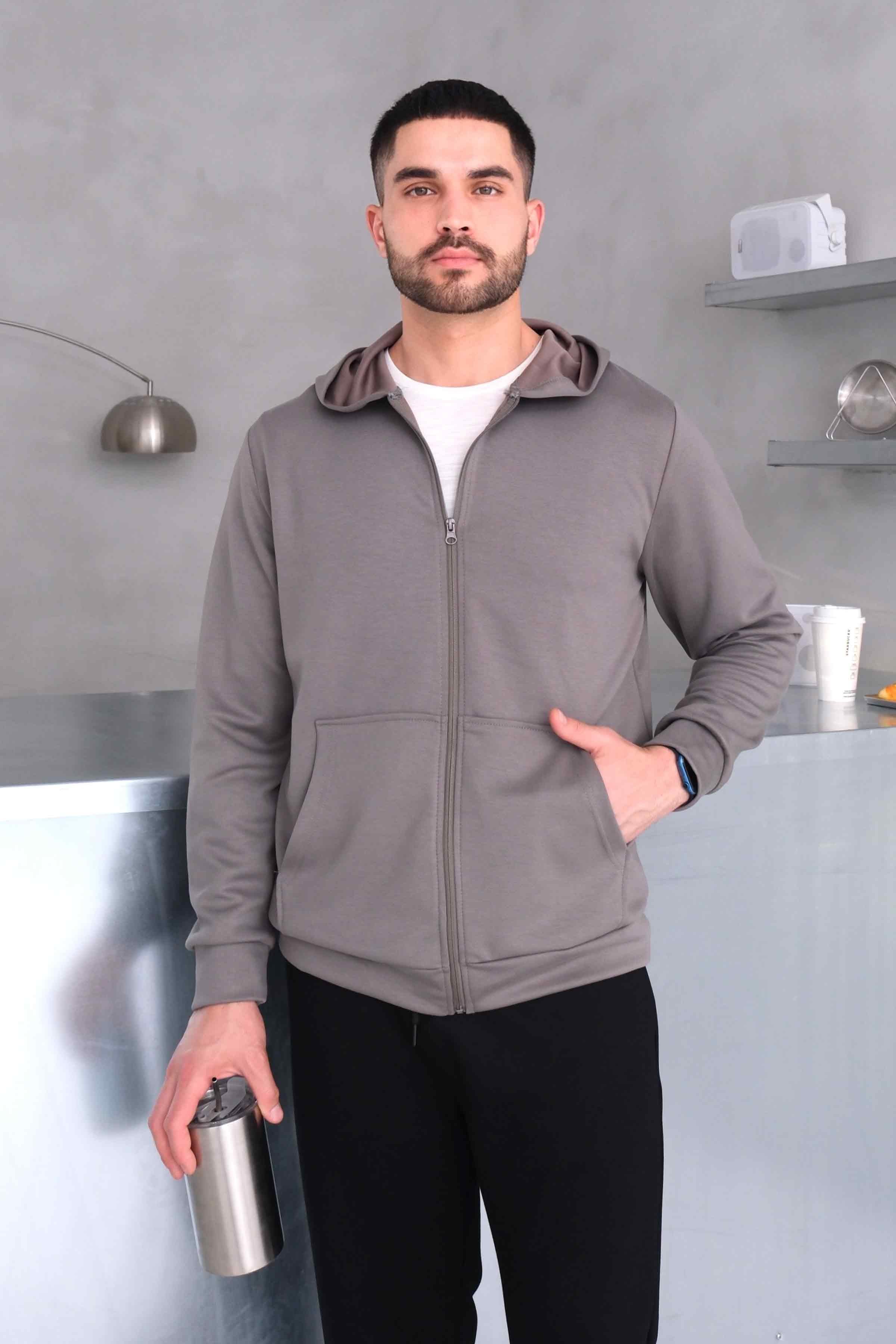 Zip-Up Modal Hoodie with Kangaroo Pocket - Taupe (Y-25-4182)