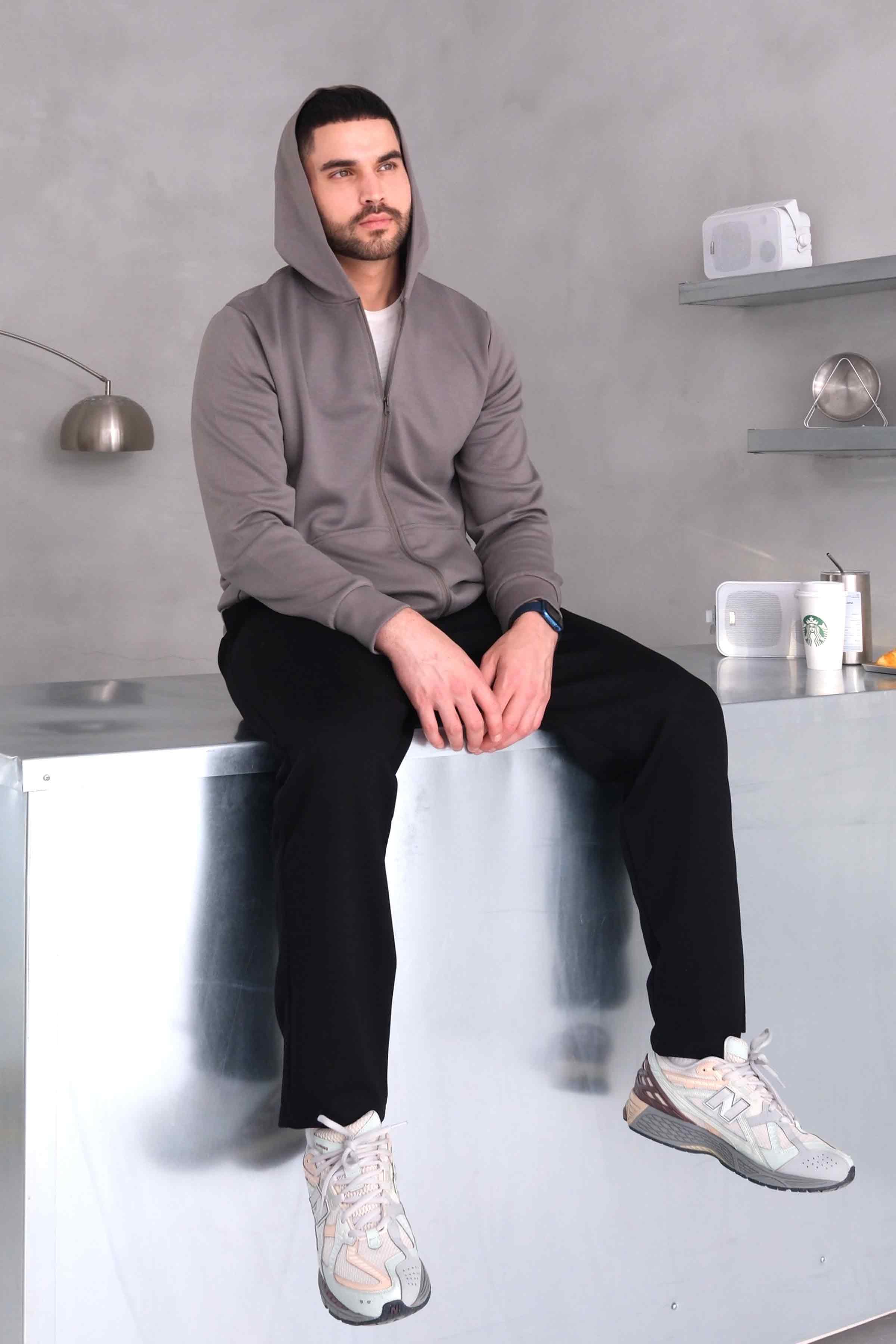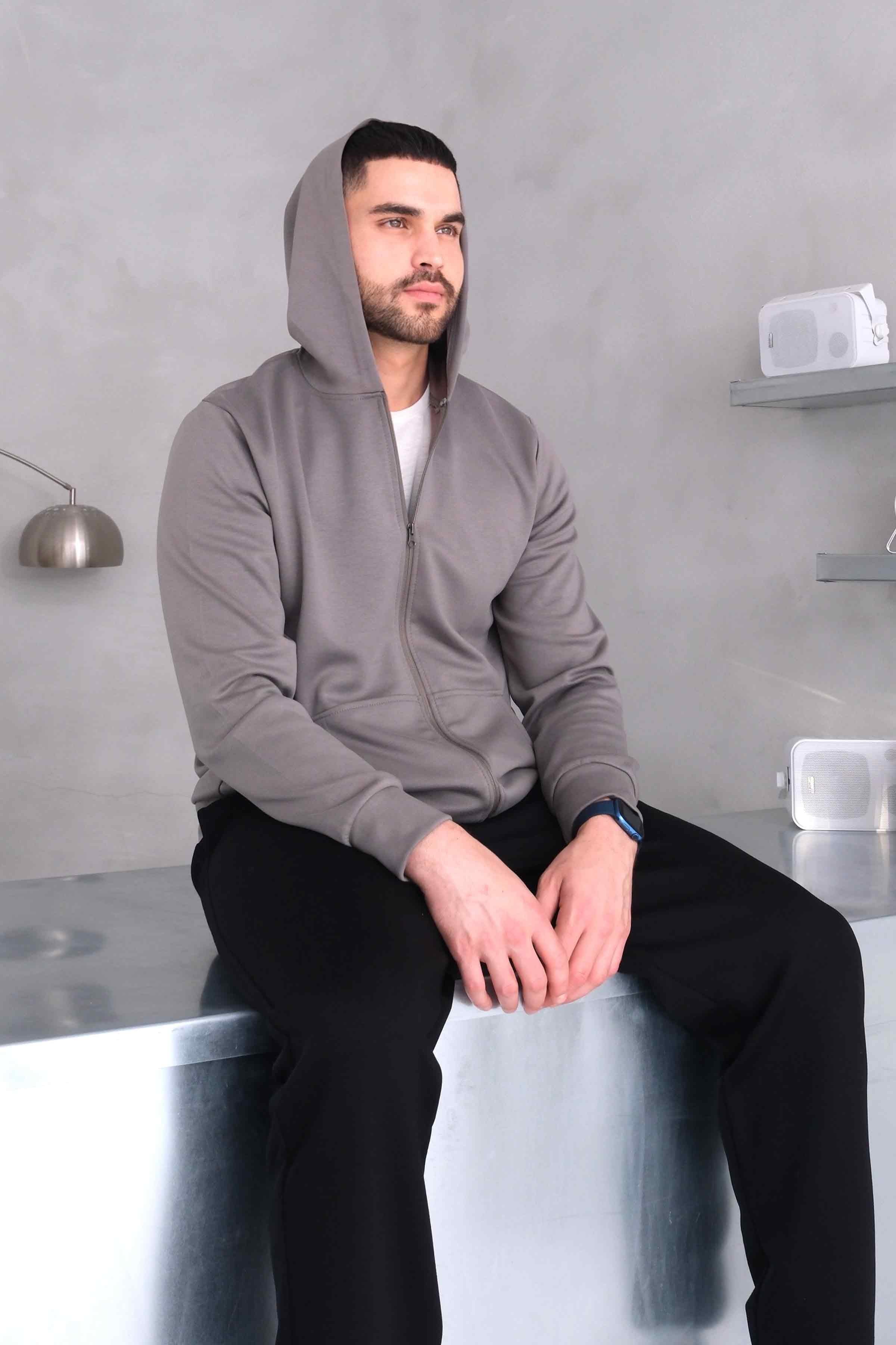 Zip-Up Modal Hoodie with Kangaroo Pocket - Khaki Zip-Up Modal Hoodie with Kangaroo Pocket - Black Zip-Up Modal Hoodie with Kangaroo Pocket - Grey Zip-Up Modal Hoodie with Kangaroo Pocket - Light Khaki