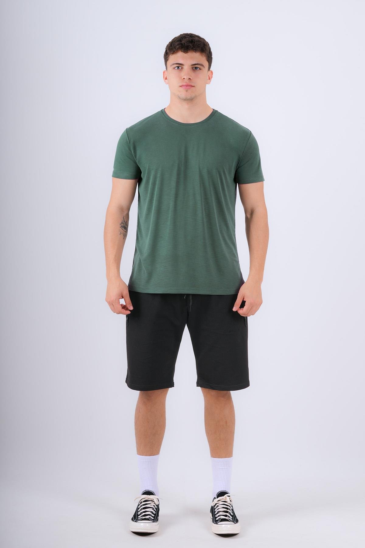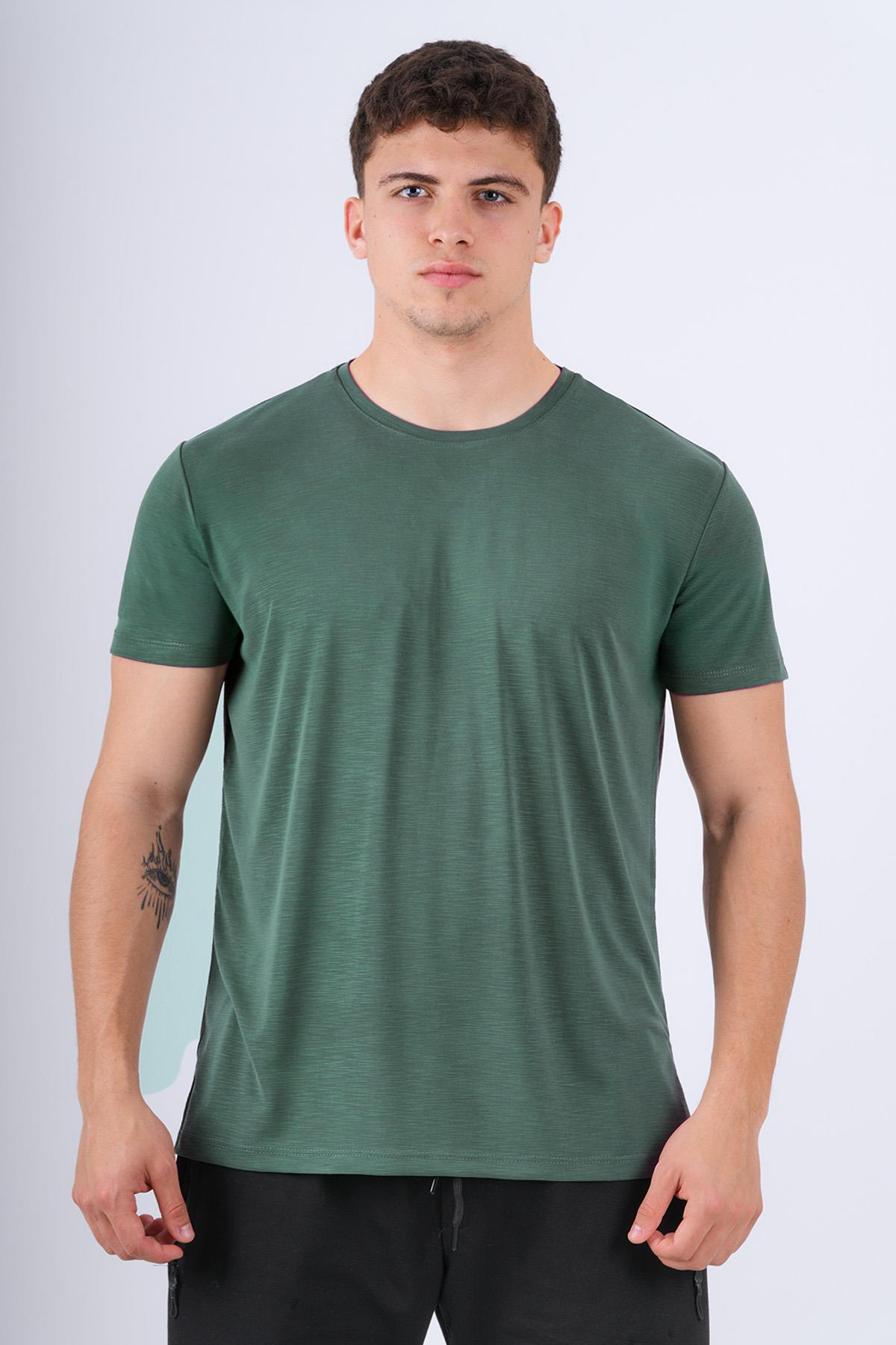 Flamlı Modal Pamuklu Regular Kalıp Bisiklet Yaka Basic Erkek Tişört