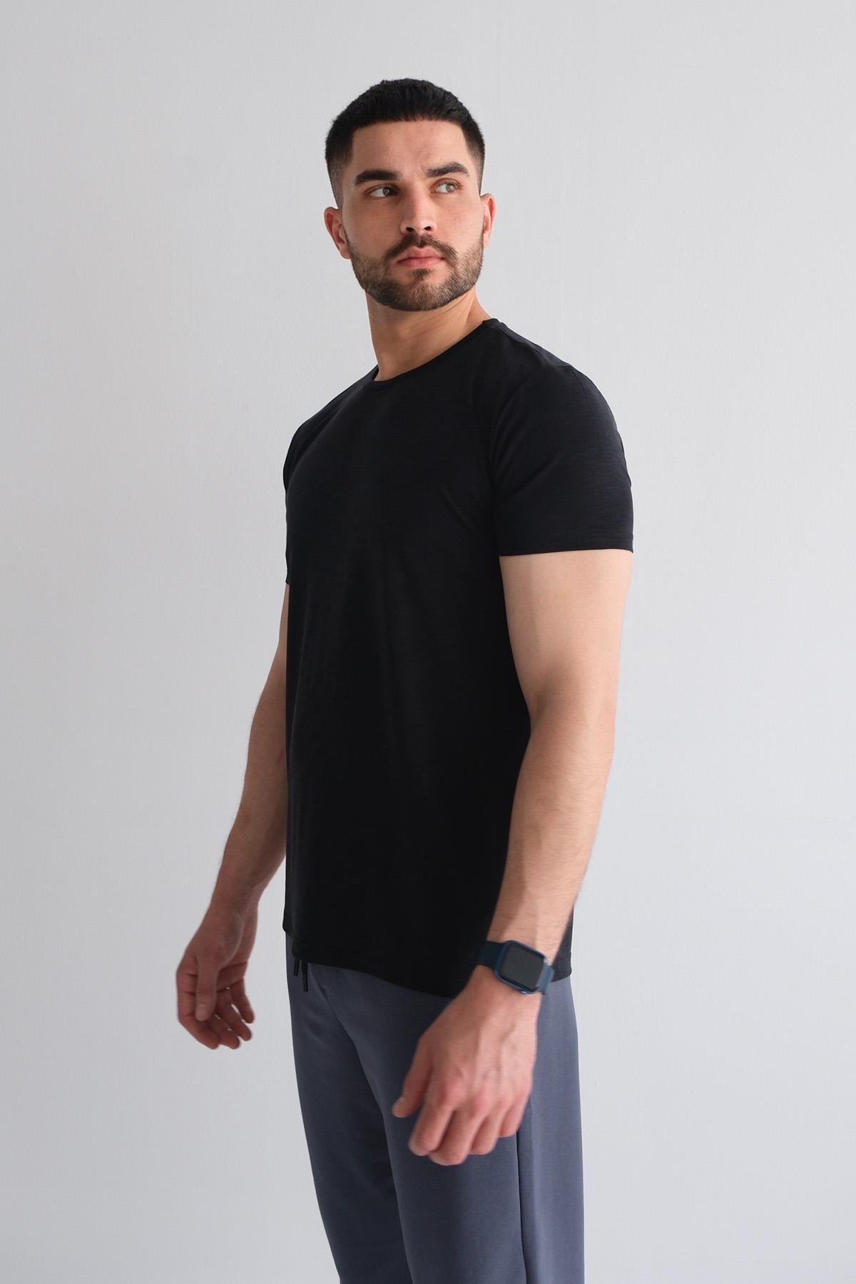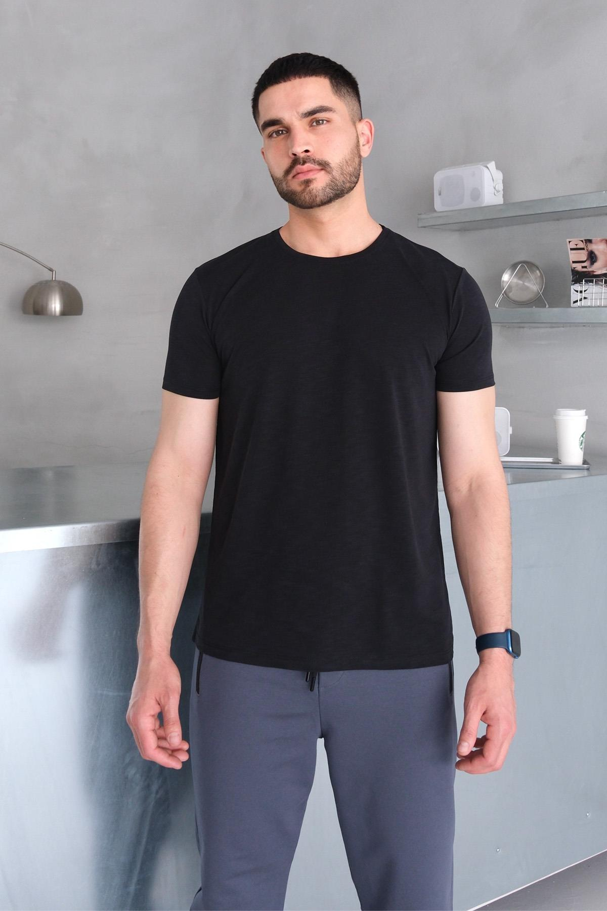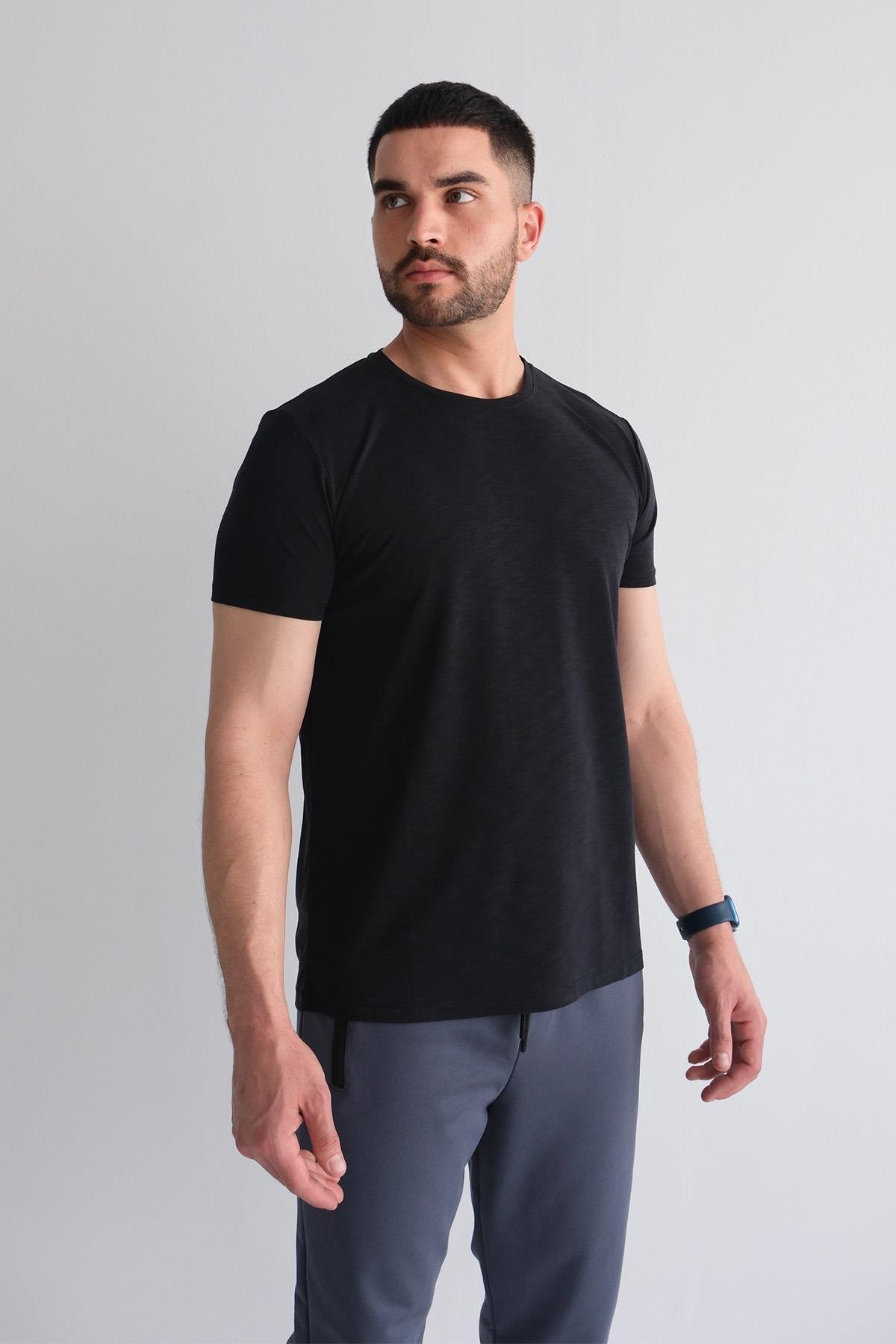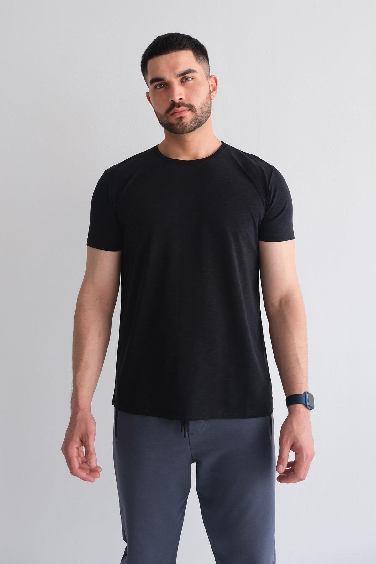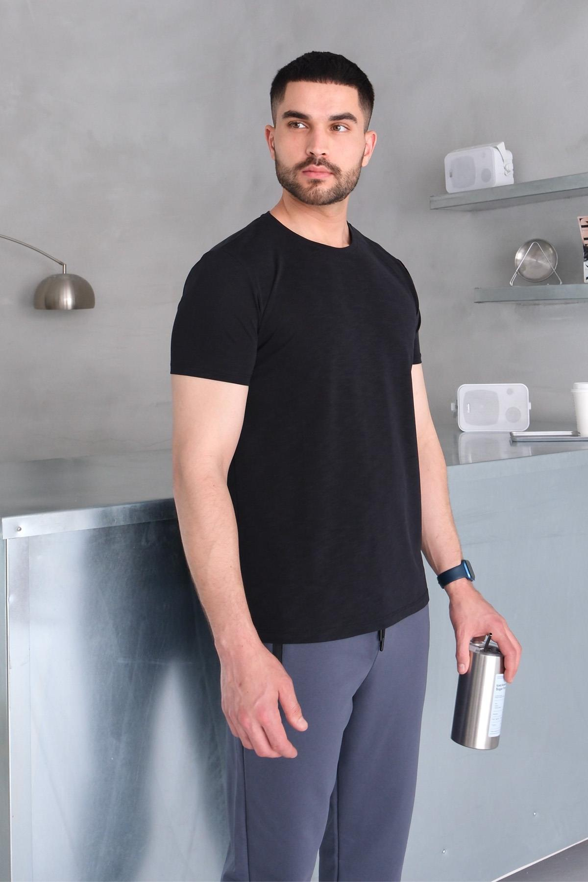 Slub Modal-Cotton Regular Fit Crew-Neck Basic Men’s T-Shirt - Black
