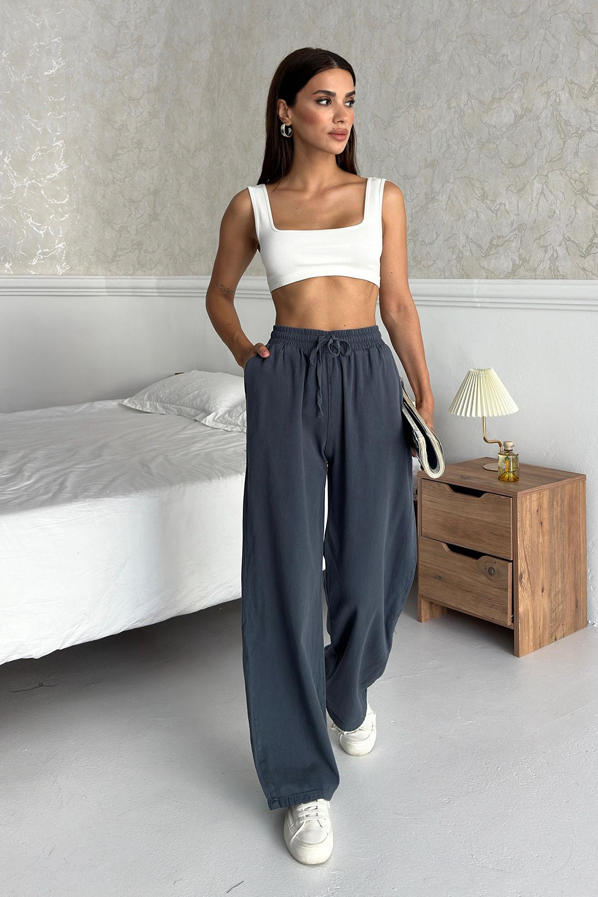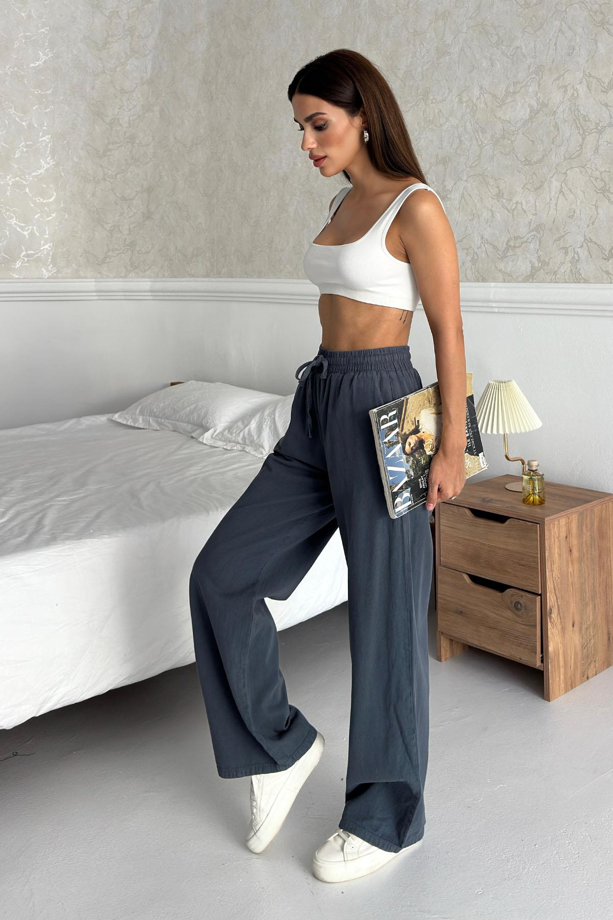 Gabardine 100% Cotton High-Waist Wide-Leg Palazzo Pants – Charcoal (Y-25-6703)