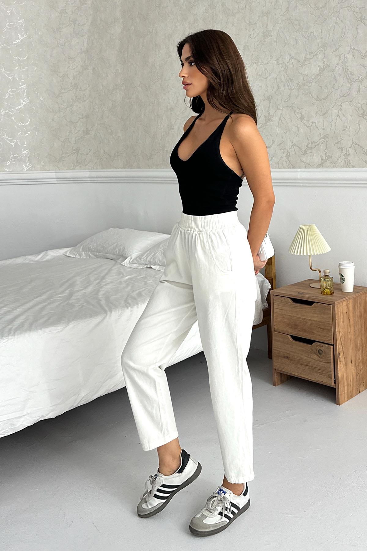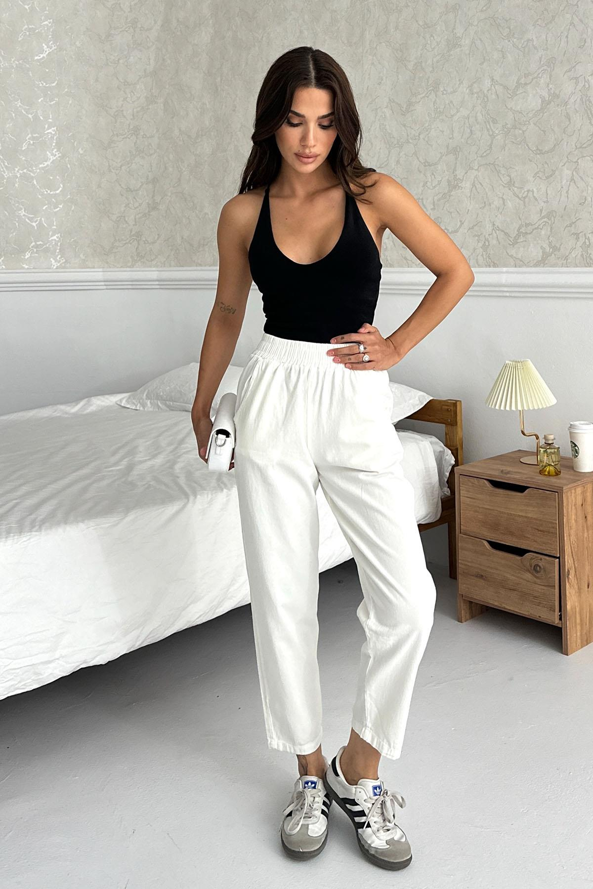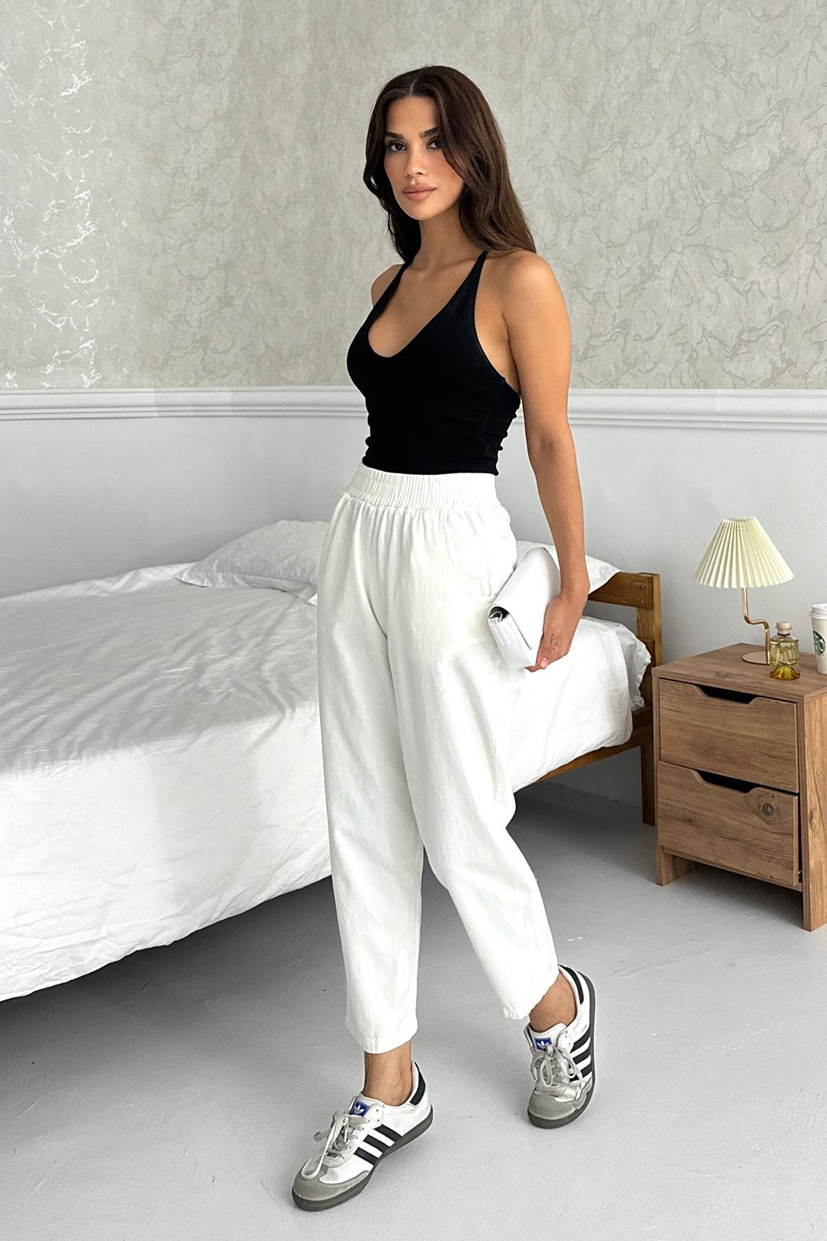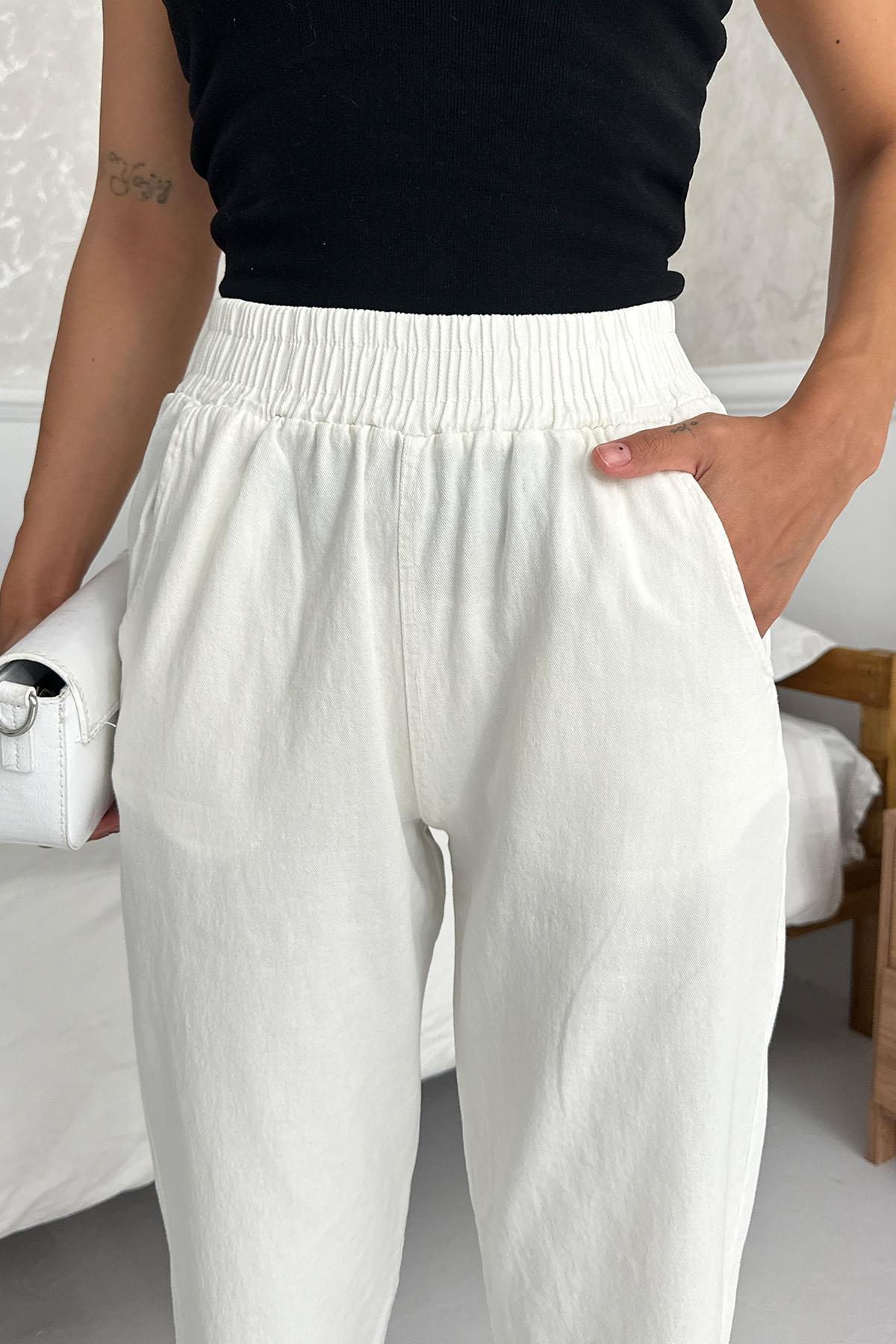 Gabardine High-Waist 100% Cotton Straight-Leg Pants – Ecru (Y-25-6702)