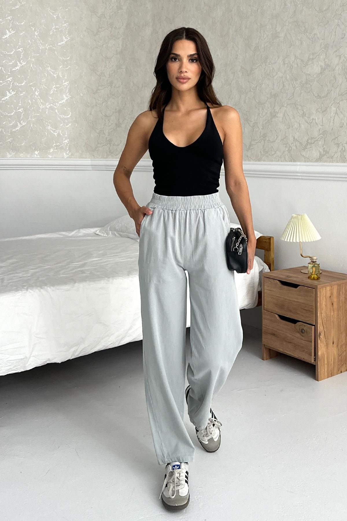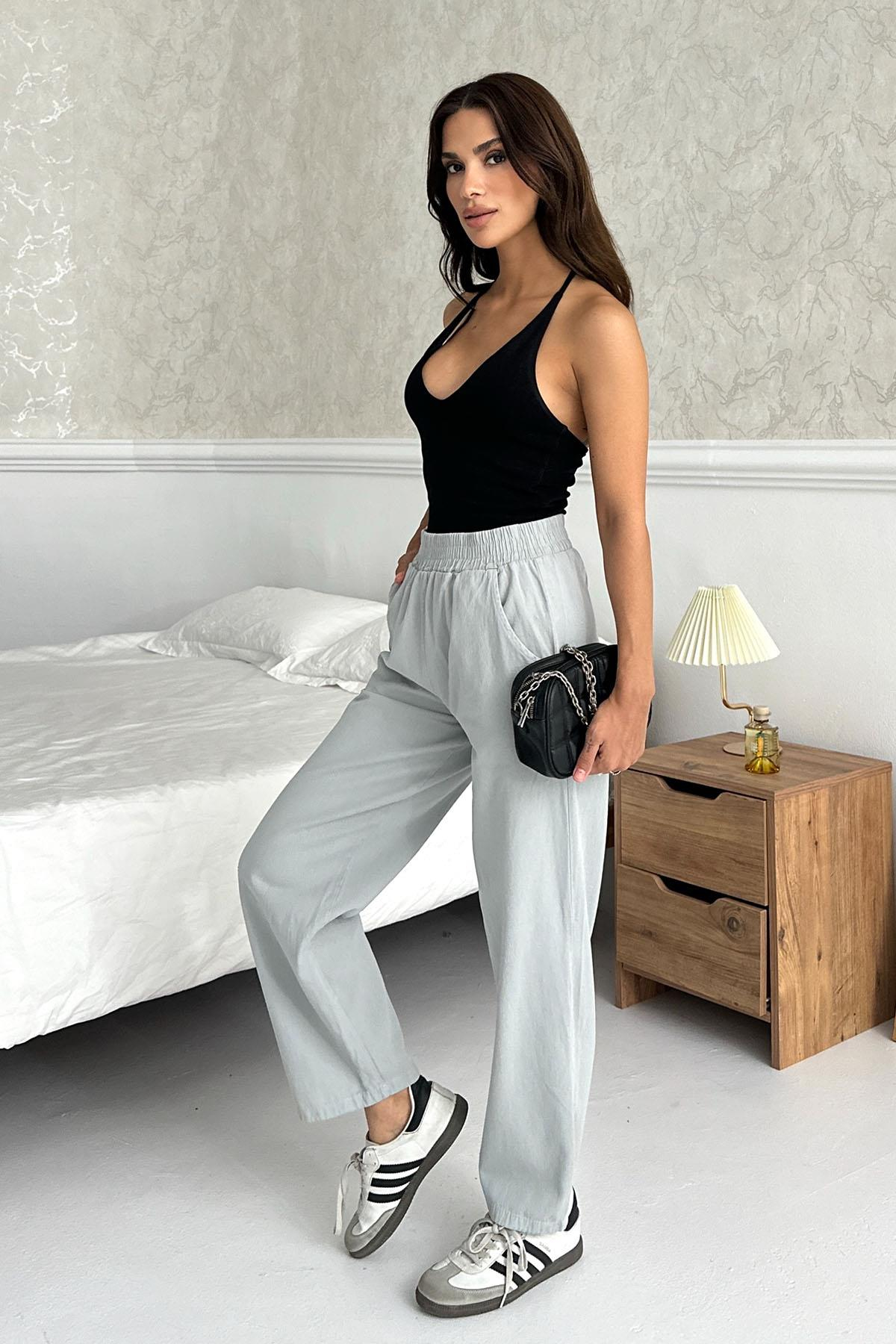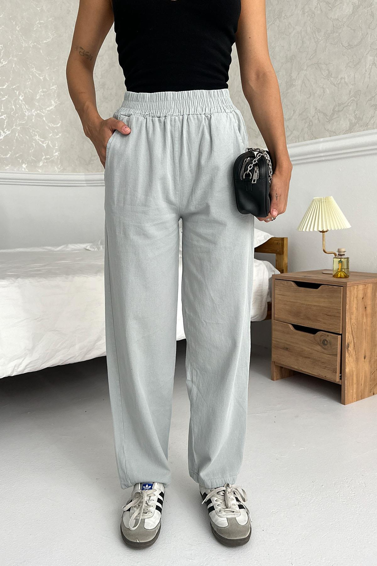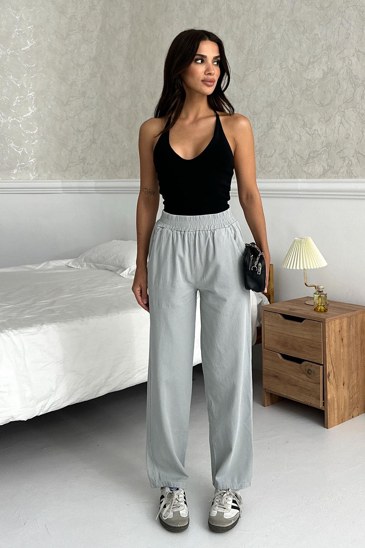 Gabardine High-Waist 100% Cotton Straight-Leg Pants – Grey (Y-25-6702)