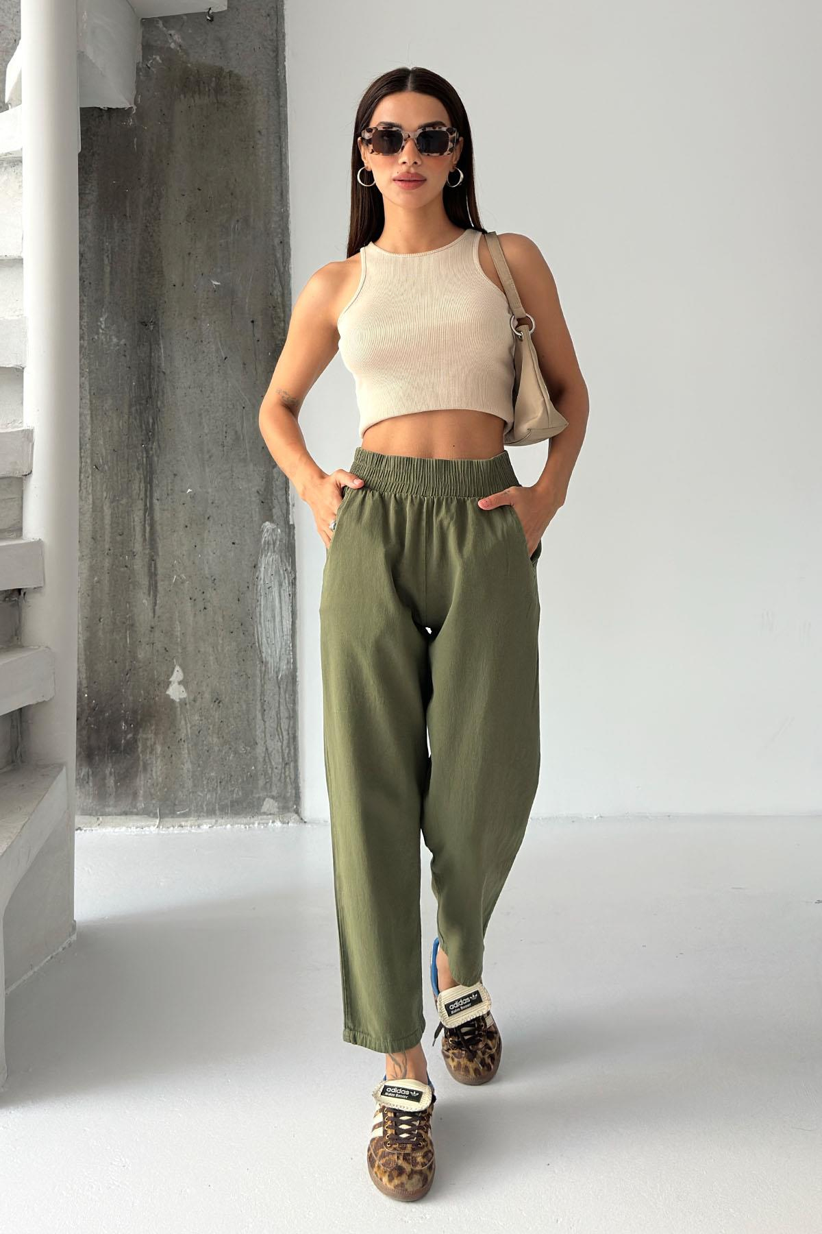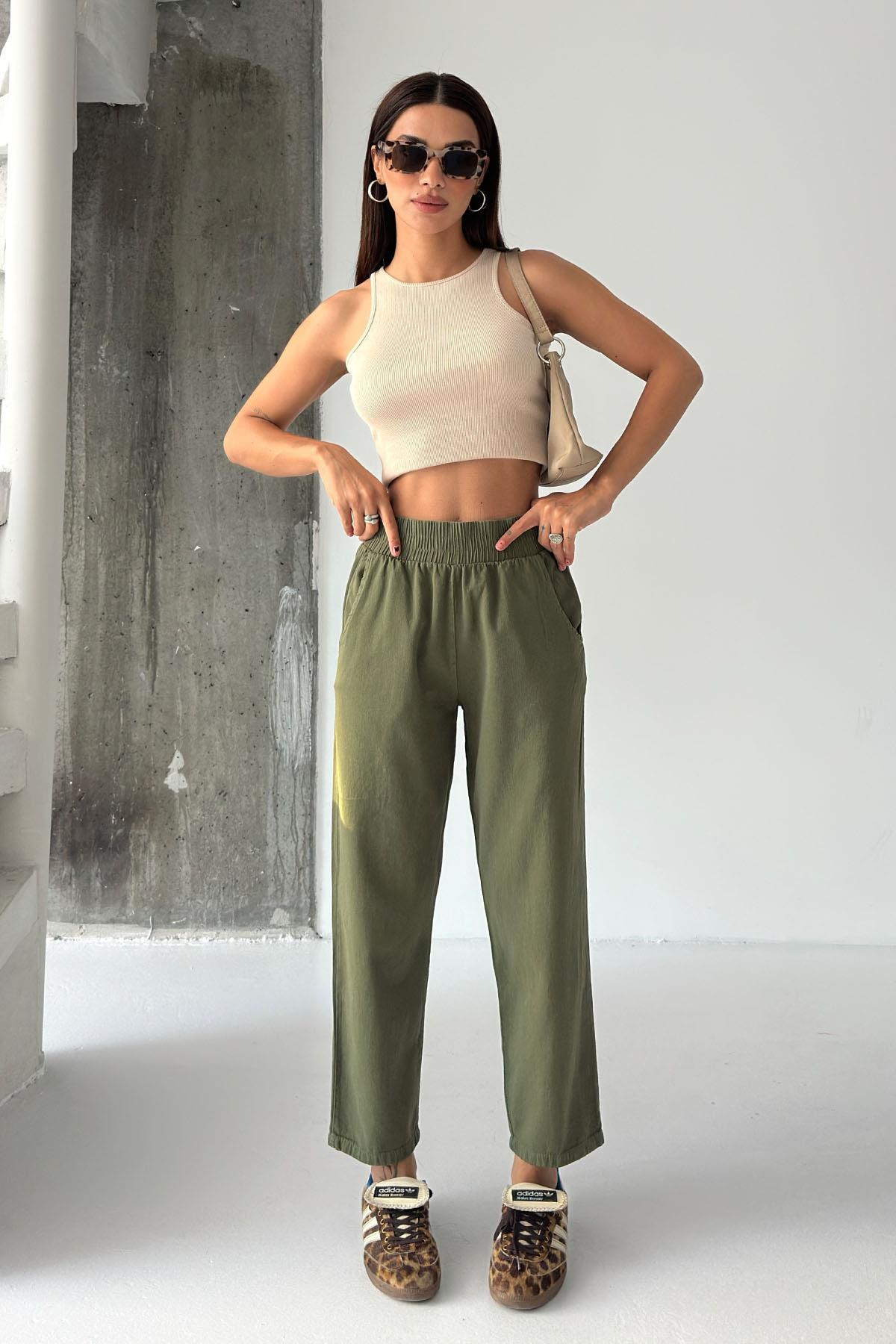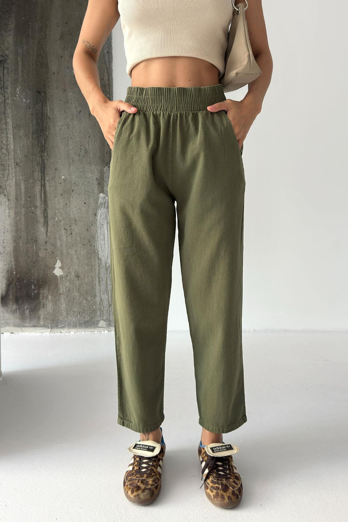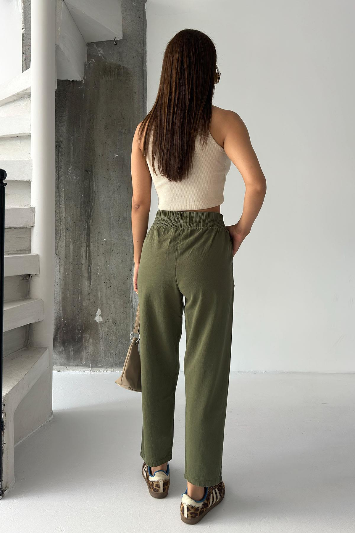 Gabardine High-Waist 100% Cotton Straight-Leg Pants – Khaki (Y-25-6702)