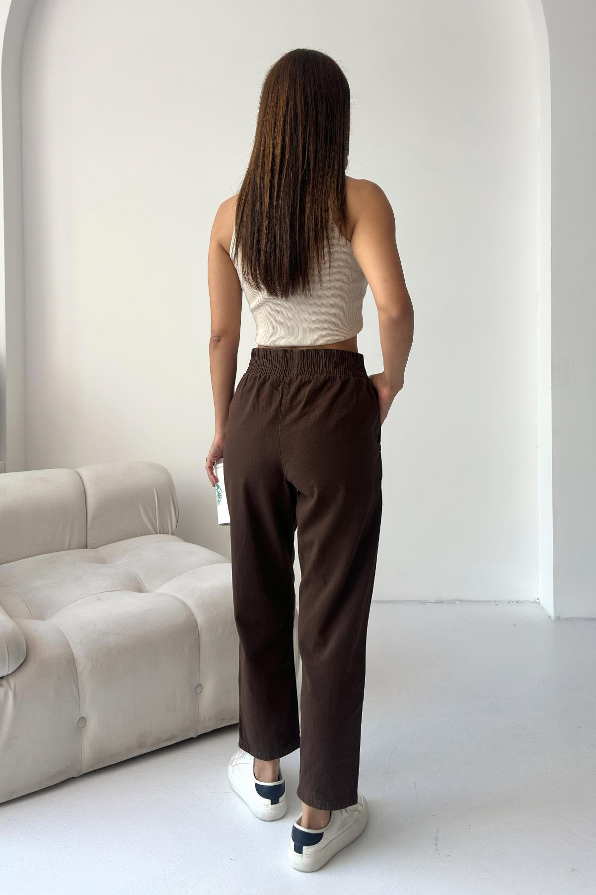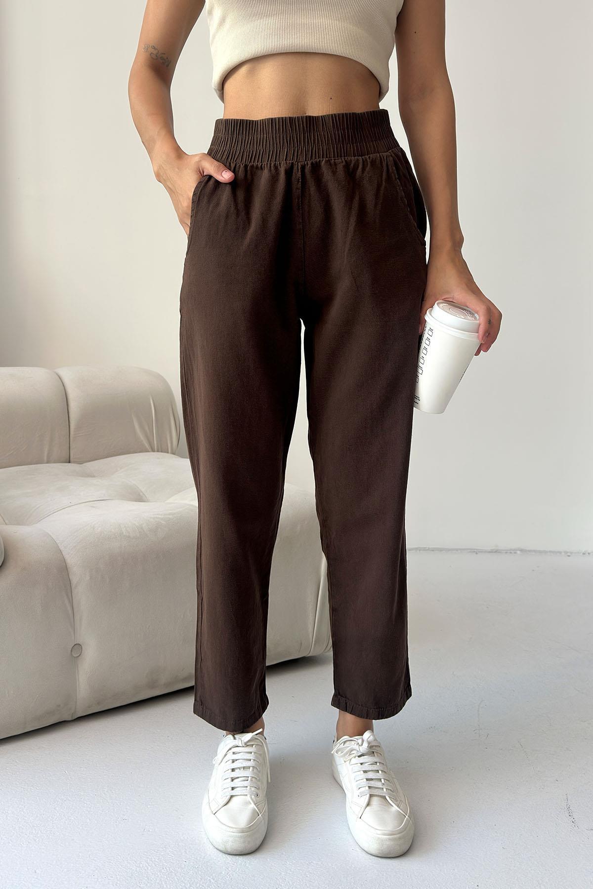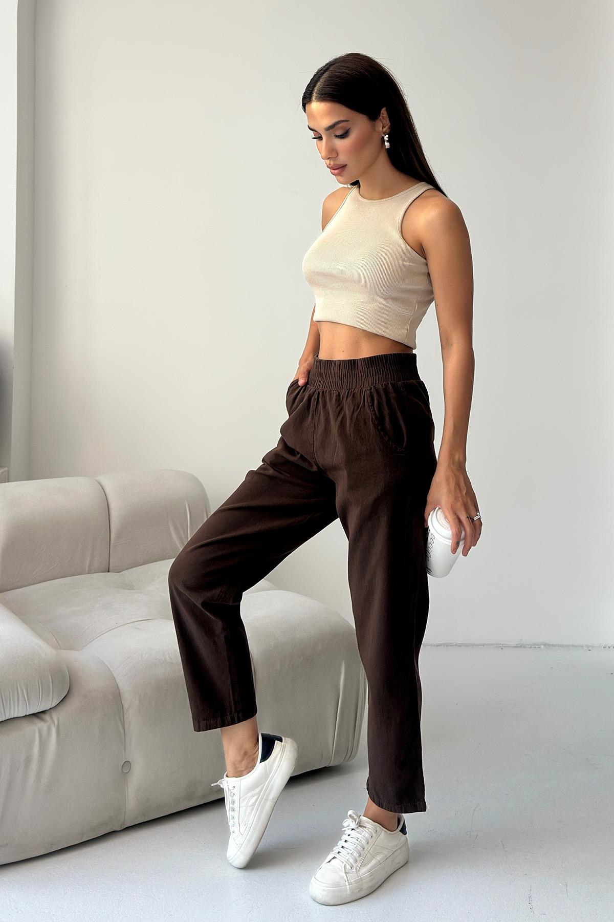 Gabardine High-Waist 100% Cotton Straight-Leg Pants – Brown (Y-25-6702)