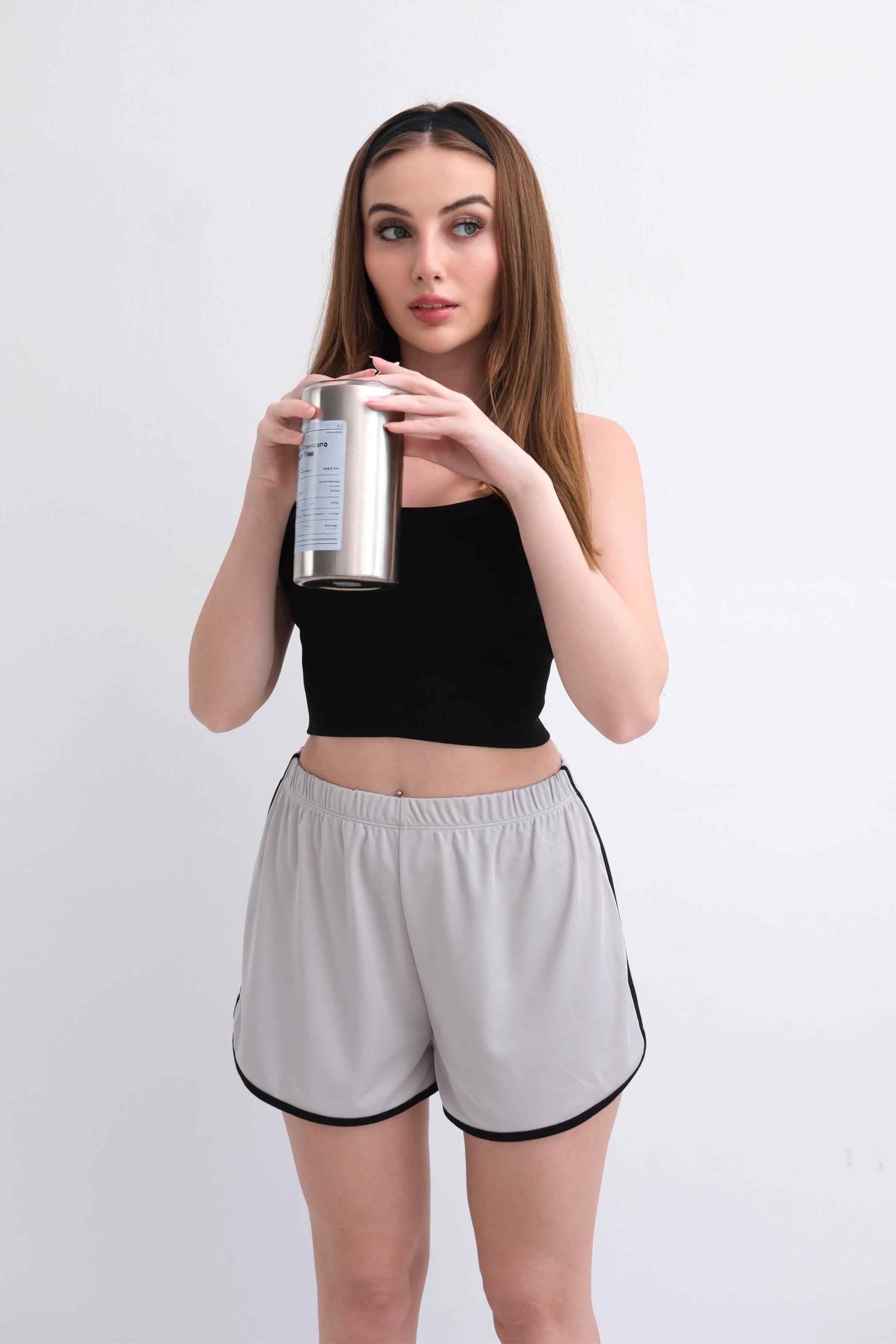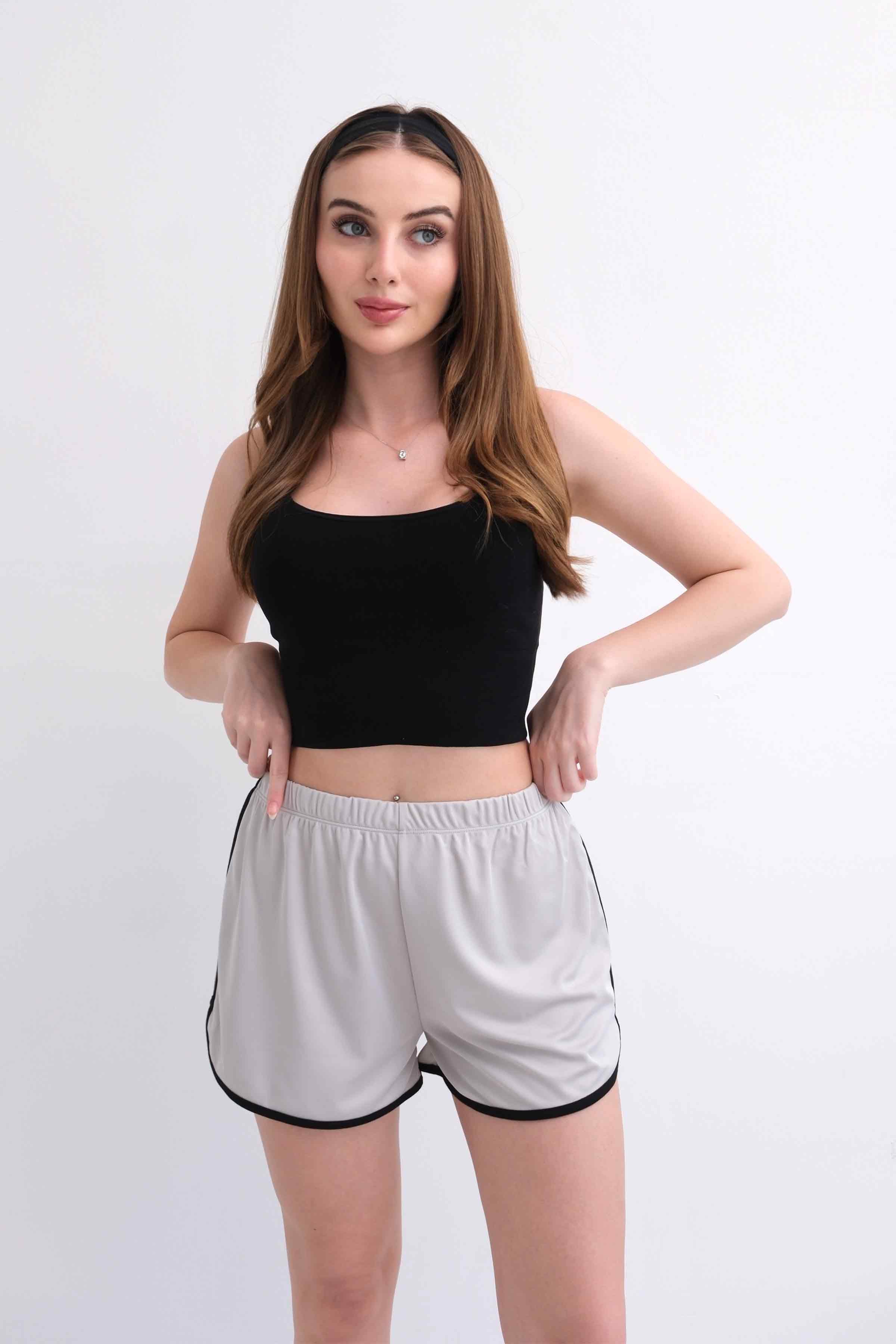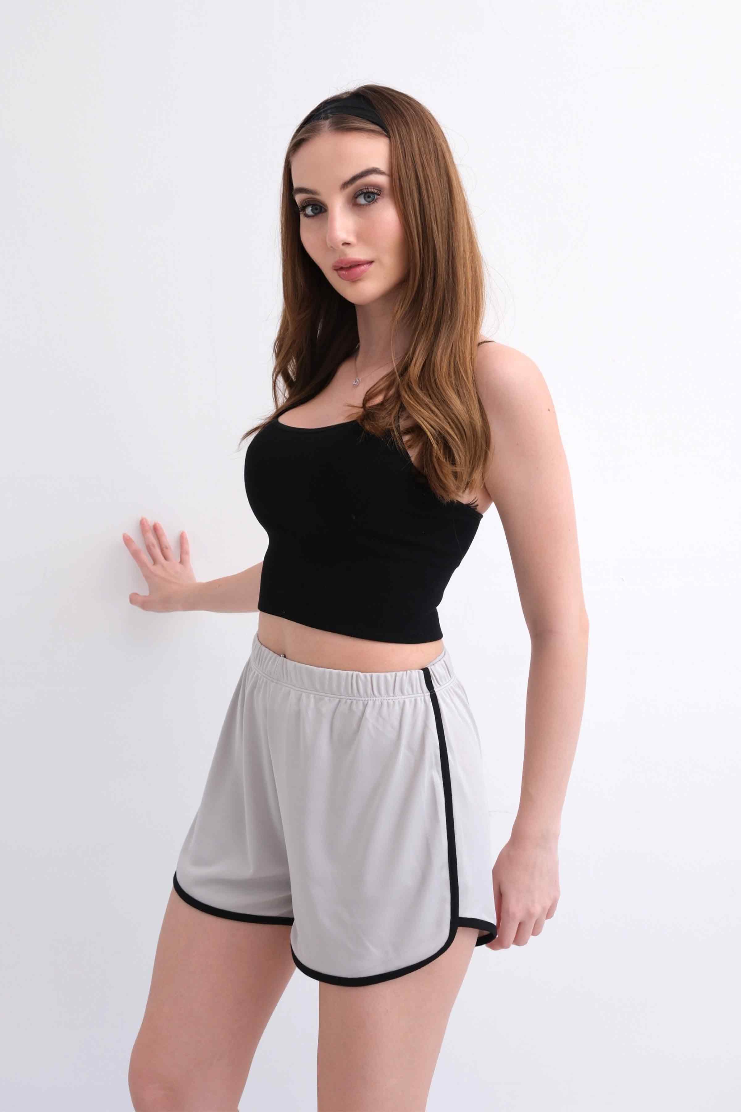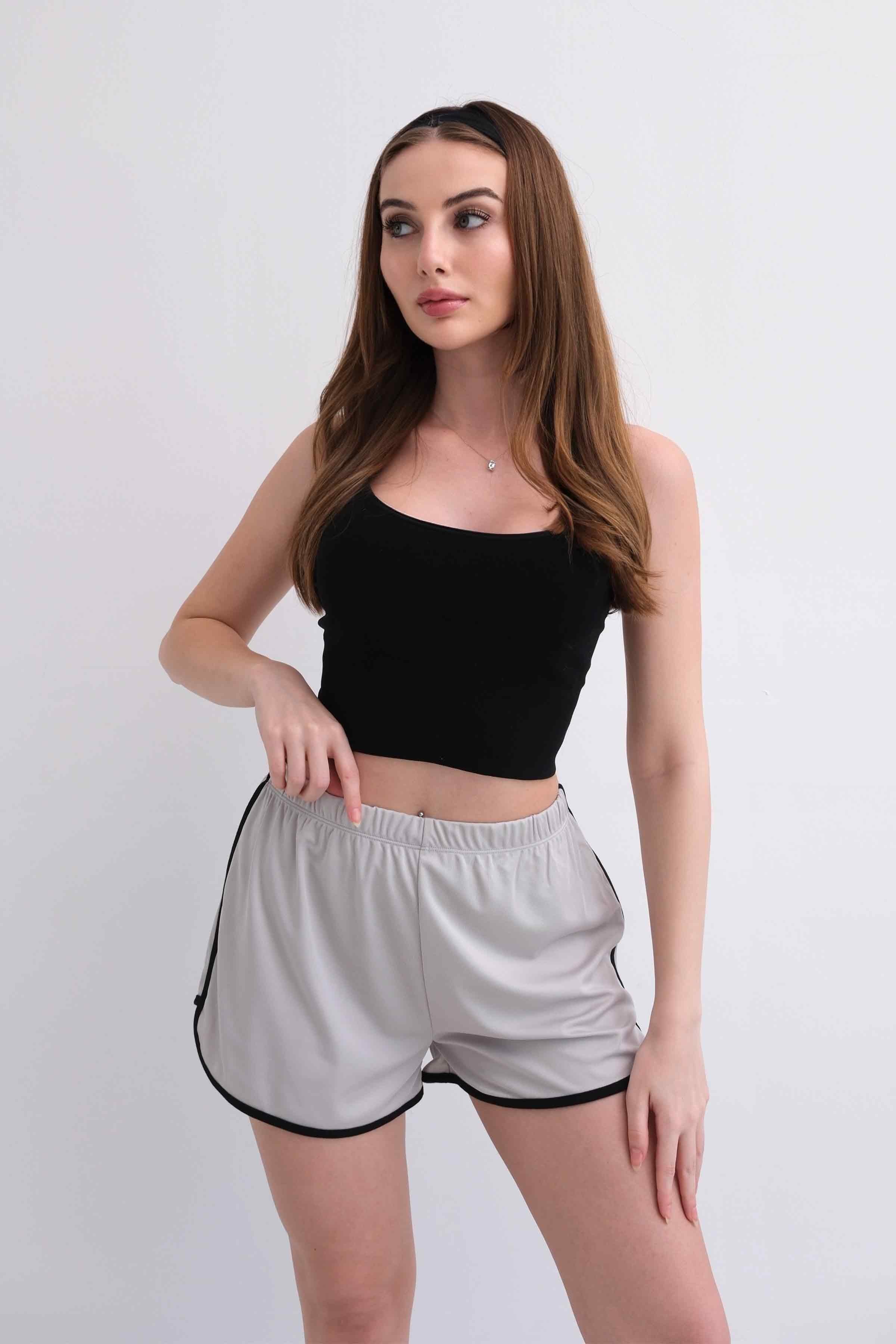 Women’s Elastic-Waist Scuba Athletic Shorts with Piping – Light Grey (Y-25-7767)